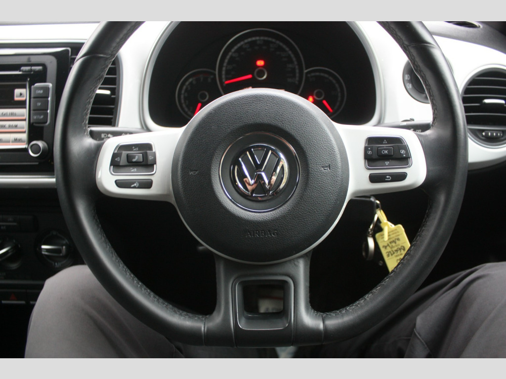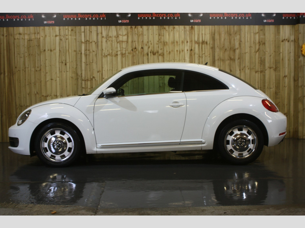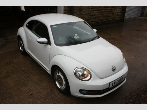 With a full service history and a recent service completed in June 2025 at 71,673 miles, this 2014 Volkswagen Beetle TSI Design, finished in Pure White, offers excellent provenance. This 1.2 litre petrol model comes with a 6 month warranty for your peace of mind. Its MOT is valid until January 2027, ensuring it is roadworthy for the foreseeable future. , This Beetle TSI Design is equipped with practical features such as front and rear parking sensors, including front sensor parking assistance, making manoeuvring easier. It also features stylish black bonnet and tailgate decal stripes, and heat insulating tinted glass from the B pillar backwards for added privacy and comfort. Inside, you will find manual air conditioning and Bluetooth connectivity for hands free telephone use. Furthermore, this vehicle falls into a low insurance group, which can help to reduce your running costs. , FULL WALK AROUND VIDEO AVAILABLE @ https://youtu.be/_6RFQxdnmVs, , We can provide flexible finance options to make it super easy for you to upgrade, along with part exchange options. We even offer nationwide delivery for your convenience. Check out our full range of vehicles at www.lkcars.co.uk, Viewing is by appointment only, please contact us on 07958390161, , 6 months warranty, Next MOT due 25/01/2027, Last serviced on 17/06/2025 at 71,673 miles, Full service history, 4 seats, White, 3 owners, Upgrades - Parking Sensors - Front and Rear, Bonnet and Tailgate Decal Stripes - Black, Tinted Glass - Heat Insulating Rear 90% Light Absorbing from B Pillar Backwards, Standard Features - 12V Socket - Centre Console x2, 17in Alloy Wheels - Orbit, 6CD Autochanger - Dash Mounted, ABS - Anti-Lock Braking System, ASR - Anti Slip Regulation, Air Conditioning - Manual, Airbags - Curtain Head, Airbags - Driver, Airbags - Front Passenger, Airbags - Front Passenger with Deactivation Switch, Airbags - Front Side, Alarm with Interior Protection, Armrest - Front Centre with Storage Compartment, Bluetooth Telephone Preparation for Hands Free Profile Enabled Telephones, Body Coloured Bumpers, Body Coloured Door Handles, Body Coloured Door Sill Protection, Body-Coloured Door Mirrors with Integrated Indicators, Brake Pad Wear Indicator, Carpet Mats - Front and Rear, Central Locking - Remote with 2 Remote Keys, Chrome Trimmed Air Vent Surrounds-Decor Rings-Instrument Cluster and Radio Surround, Cup Holders - Front x2 Rear x1, DAB+ - Digital Radio Reception, Dashboard - Body Coloured, Differential Lock - Electronic, Door Mirrors - Electrically Adjustable and Heated, ESP - Electronic Stability Programme, Electric Windows - Front, Exterior Temperature Gauge, Front Air Intake with Chrome Trimmed Louvre, Front Fog Lights with Cornering Lights, Front Seat Back Storage Pockets, Glovebox, Grab Handles - Front x2 Rear x2, HBA - Hydraulic Brake Assist, Head Restraints - Front Whiplash Optimised, Headlights - Halogen Clear - Range Adjustable, Heated Rear Windscreen, Height and Reach Adjustable Steering Column, High Level 3rd Brake Light, Hill Hold Assist, ISOFIX Child Seat Preparation for 2 Rear Seats, Instrument Lighting - White Adjustable Panel Illumination, Leather Trimmed Gear Knob, Leather Trimmed Handbrake Grip, Luggage Compartment Cover - Removable, Luggage Compartment Light, MDI - Multi Device Interface with USB - iPod Connection Cables, Multifunction Computer, Particle Filter, Power Assisted Steering - Speed Sensitive, RCD 510 Touch Screen Radio System, Reading Lights - Front x2, Rear Head Restraints x 2 - Height-Adjustable, Rigid Safety Cell with Front and Rear Crumple Zones, SD Card Reader, Seatbelt Reminder, Seats - Easy Entry Sliding Front, Seats - Height Adjustment - Front, Seats - Split Folding Rear Backrests 50-50, Side Window Surrounds - Chrome Strips, Spare Wheel - Space Saver Steel, Speakers x8, Steering Wheel - 3-Spoke - Leather Trimmed with Body Coloured Inserts, Steering Wheel - Multifunction, Styling Pack for R-Line, Sun Visors with Vanity Mirrors, Tyre Pressure Indicator, Unique Beetle Storage Compartment in Dashboard, Warning Light for Low Washer Fluid, Windscreen Wipers with Intermittent Wipe and 4 Position Delay