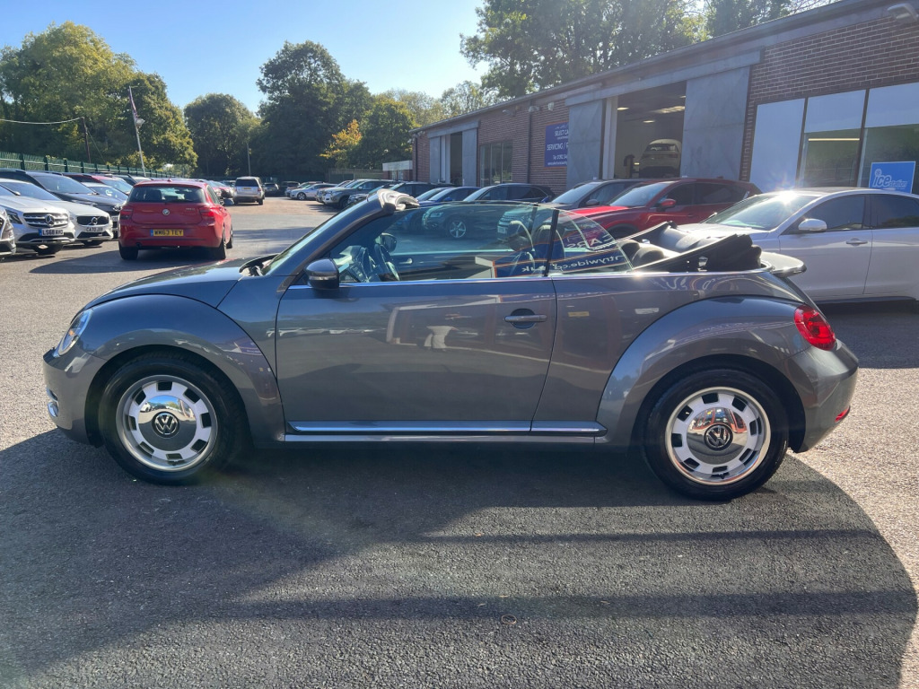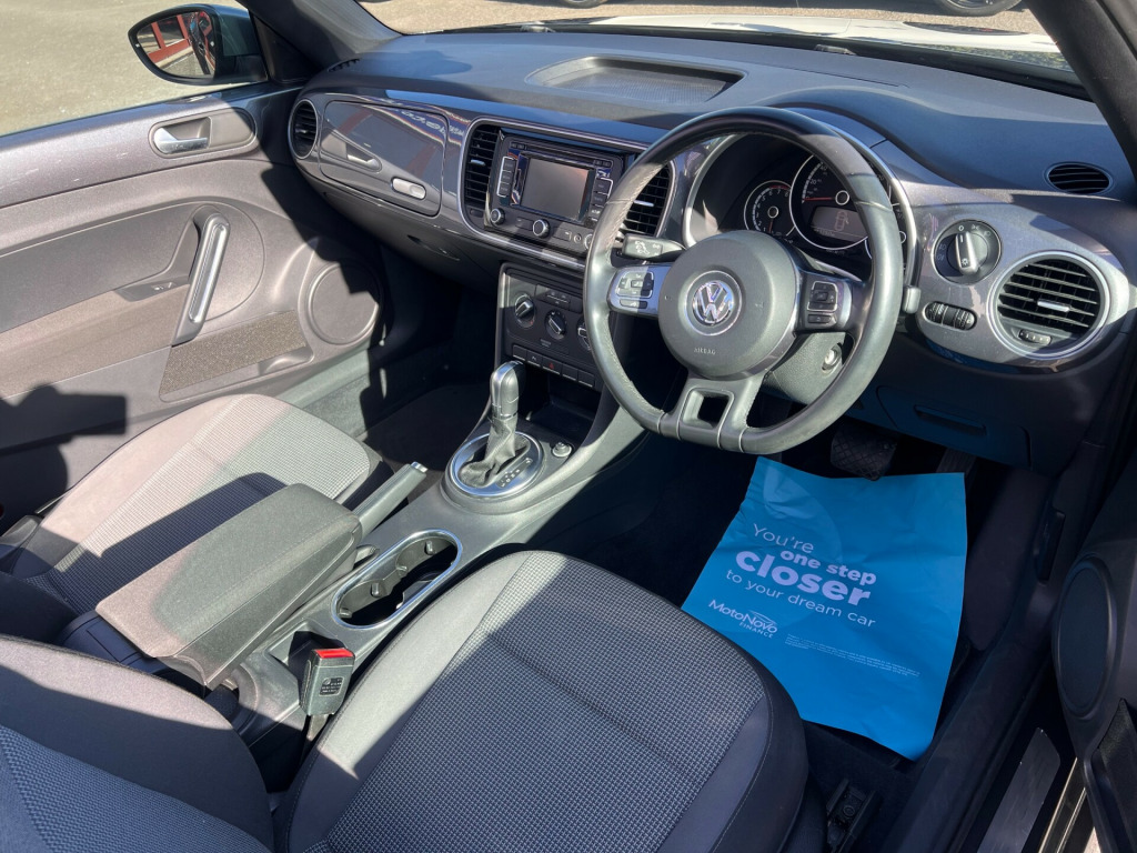 This 2014 Volkswagen Beetle 1.2 TSI Design Cabriolet 2dr Petrol DSG Euro 5 (105 ps) is the perfect convertible car with only 49783 miles on it. It runs on petrol, and its MOT is valid until 19/09/2026, making it ready for the road. With 4 seats and 2 doors, it's the ideal car for a sunny day drive. ULEZ compliant, this Beetle is both stylish and environmentally friendly. Additionally, it includes features like 12V Socket - Centre Console x2, 6CD Autochanger - Dash Mounted, Aux-In Socket, Bluetooth Telephone Preparation for Hands-Free Profile Enabled Telephones, and DAB+ - Digital Radio Reception, making for a comfortable and enjoyable driving experience. Don't miss the opportunity to own this sleek and efficient vehicle.- Full service history - 2 keys- Extended Warranties Available- Part Exchange Welcome- Finance Available, v socket - centre console x2, 6cd autochanger - dash mounted, aux-in socket, bluetooth telephone preparation for hands free profile enabled telephones, dab+ - digital radio reception, mdi - multi device interface with usb - ipod connection cables, rcd 510 touch screen radio system, sd card reader, speakers x8, 17in alloy wheels - orbit, body coloured bumpers, body coloured door handles, body coloured rear spoiler, body-coloured door mirrors with integrated indicators, door mirrors - electrically adjustable and heated, electric windows - front, spare wheel - space saver steel, abs - anti-lock braking system, asr - anti slip regulation, active rollover protection system, airbags - curtain head, airbags - driver, airbags - front passenger with deactivation switch, airbags - front side, alarm with interior protection, central locking - remote with 2 remote keys, differential lock - electronic, esp - electronic stability programme, electronic engine immobiliser, hba - hydraulic brake assist, hill hold assist, isofix child seat preparation for 2 rear seats, seatbelt reminder, air conditioning - manual, armrest - front centre with storage compartment, body coloured door sill protection, carpet mats - front and rear, cup holders - front x2 rear x1, dashboard - body coloured, drivers seat height adjustment, front passengers seat height adjustment, front seat back storage pockets, fully automatic electric power hood, glovebox - illuminated - lockable, head restraints - front whiplash optimised, head restraints - rear x2, height and reach adjustable steering column, leather trimmed gear knob, leather trimmed handbrake grip, reading lights - front x2, seats - easy entry sliding front, seats - split folding rear backrests 50-50, steering wheel - 3-spoke - leather trimmed - multifunction, steering wheel - multifunction, sun visors with vanity mirrors, tonneau cover, unique beetle storage compartment in dashboard, brake pad wear indicator, exterior temperature gauge, multifunction computer - highline, power assisted steering - speed sensitive, tyre pressure indicator, front fog lights with cornering lights, headlights - halogen clear - range adjustable