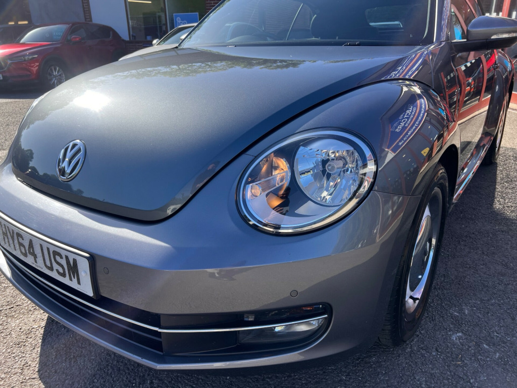 This 2014 Volkswagen Beetle 1.2 TSI Design Cabriolet 2dr Petrol DSG Euro 5 (105 ps) Convertible is currently available for £12,495 in Devon with Petrol engine and Automatic gearbox. For more information or to arrange a viewing, click here to send us an email using form below.