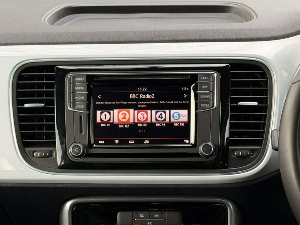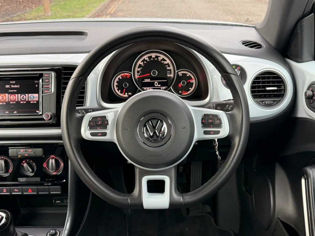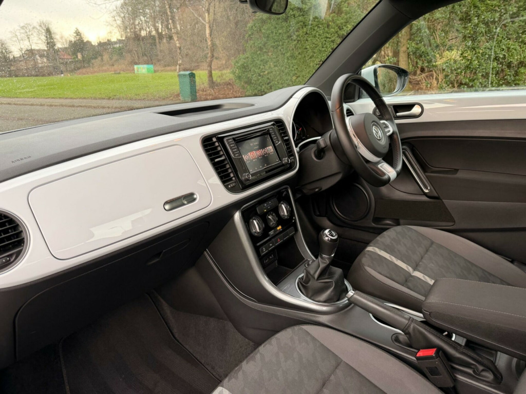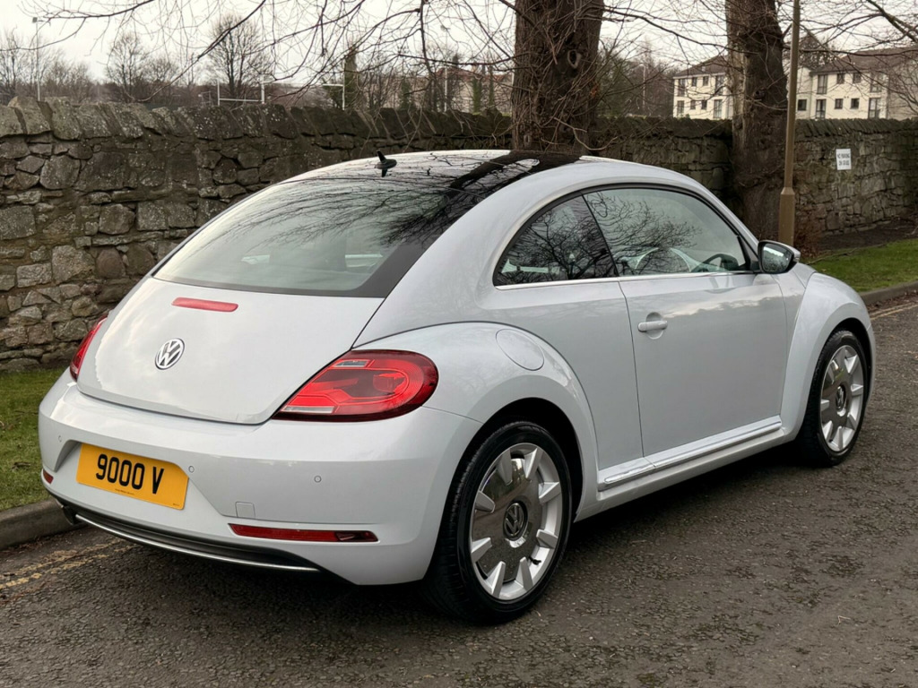 We Are Delighted To Offer This Rare Very Low Mileage VW Beatle Design With Just 1 Owner & Only 10,000 miles From New. Finished In Special Order White Silver Metallic with Design Interior. Please Call Andrew or Ross With Any Further Questions You May Have or To Book An Appointment To See With Your Own Eyes As We Are Sure You Will Be Delighted In What You Find. 12V Socket - Centre Console x2, 17in Alloy Wheels - Orbit, ABS - Anti-Lock Braking System with HBA - Hydraulic Brake Assist, Air Conditioning - Climatic Semi-Automatic Control, Alarm with Interior Protection, Automatic Post-Collision Braking System, Body-Coloured Door Handles, Body-Coloured Door Mirrors with Integrated Indicators, Body-coloured Dashpad and Interior Door Panels, Body-coloured Sport-styled Bumpers, Brake Pad Wear Indicator, Carpet Mats - Front and Rear, Chrome Strip on Side Window Base, Chrome Trimmed Air Vent Surrounds - Decor Rings - Instrument Cluster and Radio Surround, Composition Media System, Cup Holders - Front x2 Rear x1, Door Mirrors - Electrically Adjustable and Heated, Door Protectors - Body Colour with Chrome Insert, Driver and Front Passenger Seat Height Adjustment, Drivers and Front Passengers Airbags with Front Passenger Airbag Deactivation Switch, Drivers and Front Passengers Combined Head and Side Airbag System, Drivers and Front Passengers Safety Optimised Head Restraints, ESC - Electronic Stability Control including EDL - Electronic Differential Lock and ASR - Traction Control, Electric Windows - Front, Electronic Engine Immobiliser, Exterior Temperature Gauge, Frameless Rear View Mirror, Front Air Intake with Chrome Trimmed Louvre, Front Centre Armrest with Storage Compartment, Front Fog Lights with Static Cornering Function, Front Seat Back Storage Pockets, Front Three-Point Seat Belts with Tensioners, Glovebox, Grab Handles - Front x2 Rear x2, Headlights - Halogen Clear - Range Adjustable, Heated Rear Windscreen, Height and Reach Adjustable Steering Wheel, High Level 3rd Brake Light, Hill Hold Function, ISOFIX Child Seat Preparation for 2 Rear Seats, Instrument Lighting - White Adjustable Panel Illumination, Leather Trimmed Gear Knob and Handbrake Grip, Lights on Warning Buzzer, Luggage Compartment Cover and Hook - Removable, Luggage Compartment Light, Multifunction Computer, Platinum Grey Centre Console, Power Assisted Steering - Speed Sensitive, Reading Lights - Front x2, Rear Head Restraints x 2 - Height-Adjustable, Reflectors in Doors, Remote Central Locking with 2 Remote Folding Keys, Seats - Easy Entry Sliding Front, Seats - Split Folding Rear Backrests 50-50, Spare Wheel - Space Saver Steel, Speedo and Rev Counter - Electronic Odometer - Trip - Service Interval Display and Fuel Gauge, Steering Wheel - Multifunction - Leather Trimmed, Tinted Rear Light Clusters, Two Rear Three-point Seatbelts, Two-Tone Horn, Tyre Pressure Loss Indicator, Unique Beetle Storage Compartment in Dashboard, Vanity Mirrors, Volkswagen Connect, Warning Buzzer and Light for Front Seat Belts if Unfastened, Windscreen Wiper with Intermittent Wipe.