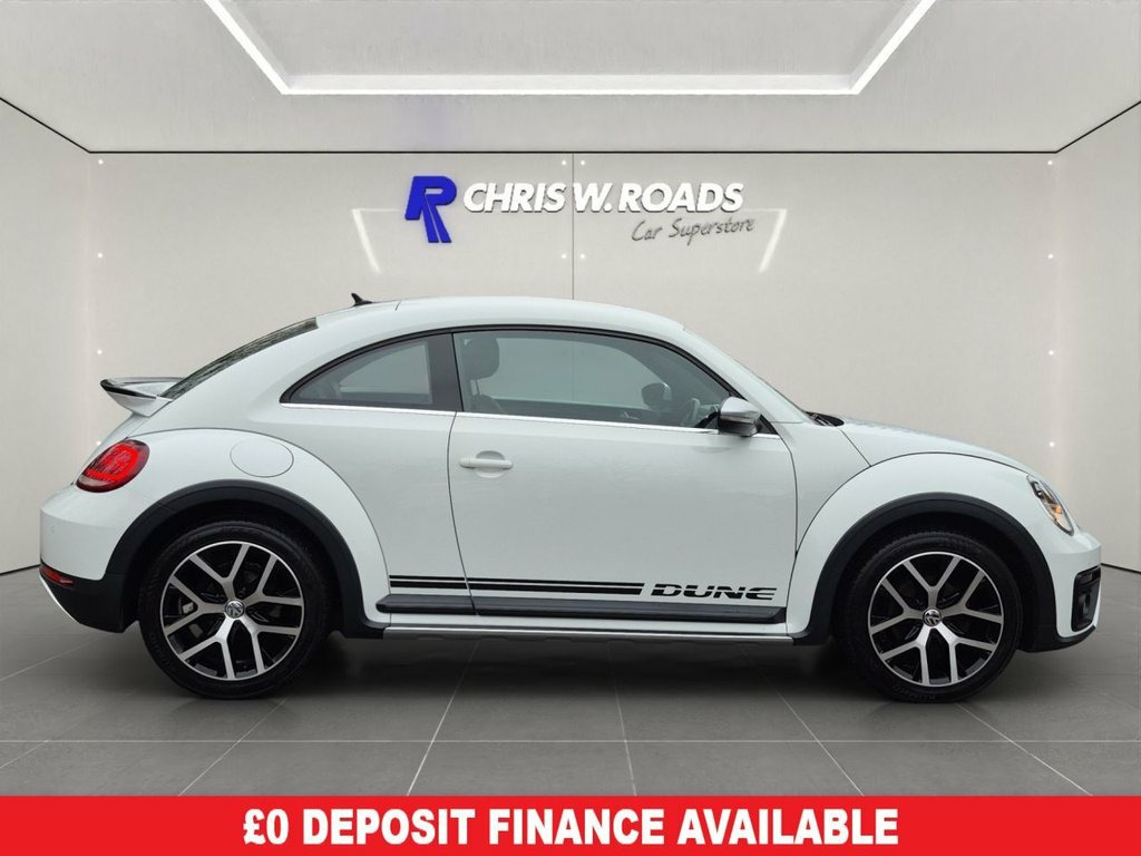 This 2018 Volkswagen Beetle TSI Dune presents a remarkable opportunity with its exceptionally low mileage of just 35,298 miles for its age. This particular model is powered by an efficient 1.2 litre petrol engine, meeting the Euro 6 emission standards. It comes equipped with the desirable Light and Sight Pack, which includes automatic headlights for added convenience, and the Composition Media System featuring Bluetooth connectivity, allowing for seamless integration of your devices. The Dune trim level of this Beetle offers a distinctive style, and its low mileage suggests it has been well cared for. The inclusion of the Light and Sight Pack and the Composition Media System with Bluetooth further enhances its appeal, providing practical benefits for everyday driving. These features, combined with the vehicle's overall condition and low mileage, set this 2018 Volkswagen Beetle TSI Dune apart from other similar models on the market. Comes with 6 Volkswagen Services recorded as well as just being serviced by ourselves, MOT until December 2026 and it has 2 Keys. See below for its full list of features. Book today to view and test drive. Open 7 days a week. All part exchanges welcome. Please ask for details of our finance and extended warranty options, subject to status, T's and C's apply, Bluetooth Telephone, DAB Digital Radio, Climatic Semi-Automatic Control Air Cond, Front and Rear Parking Sensors , 18in Mythos Alloy Wheels , Composition Media System, Multifunction Computer, Electric Front Windows , Front Sport Seats with Height and Lumbar, Front Centre Armrest with Storage Compar, Platinum Grey Centre Console, Front x2 Rear x1 Cup Holders , Unique Dune Gear Lever Knob, Dark Ceramic Stitching on Leather Trimme, Height and Reach Adjustable Steering Whe, Split Folding Rear Backrests 50-50, Luggage Compartment Light, Dune Styling Pack, Range Adjustable Halogen Clear Headlight, Light and Sight Pack, Dusk Sensor with Automatic Driving Light, Rain Sensor and Automatic Dimming Int