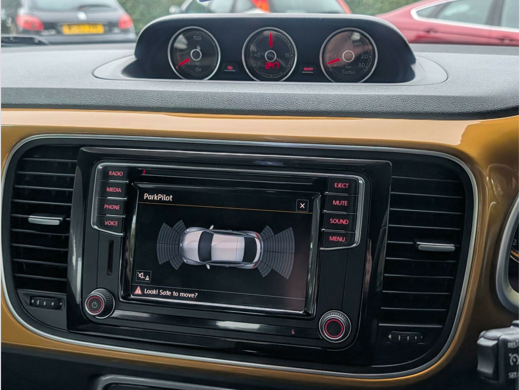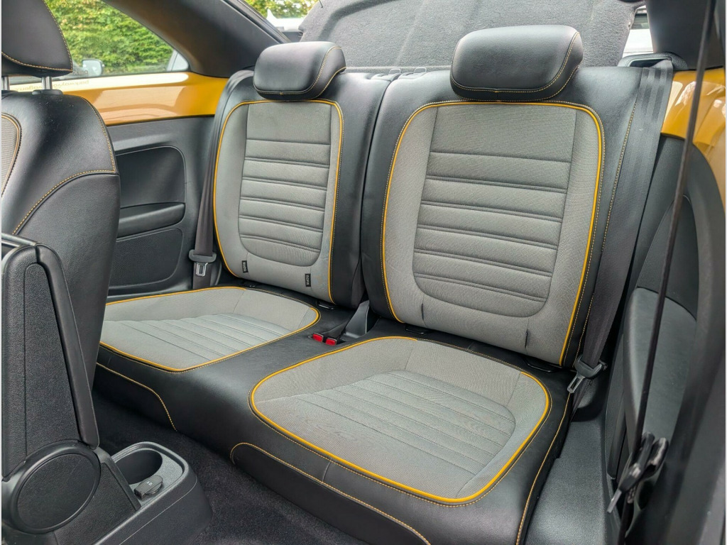 Volkswagen Beetle 1.2 TSI Dune DSG Euro 6 (s/s) 3dr.We are pleased to be offering great Beetle TSI Dune which has been cherished by just one owner from new with a clear vehicle history check. This distinctive model boasts a lively 1.2 litre petrol engine, meeting Euro 6 emissions standards, so no problems in the low emission zones which are continuing to appear in our major cities. The Dune trim makes this particular model eye catching both inside and out. Inside you'll find comfort and convenience with Climatic semi-automatic air conditioning, and the Light and Sight Pack which includes automatic headlights. Parking is made effortless thanks to front and rear parking sensors, complemented by a dusk sensor for automatic driving lights. The Composition Media system, complete with Bluetooth connectivity, ensures you stay connected on every journey.The Beetle TSI Dune is designed for enjoyment and practicality, offering an impressive fuel economy of 54 miles per gallon. This combination of low ownership, excellent condition, and desirable features makes this Volkswagen Beetle a compelling choice for those seeking a stylish and well equipped compact car.The car will come with a full 12 months MOT, be serviced up to date, and for your complete peace of mind, be covered by our own use anywhere in the UK 6 month/6000 mile warranty. If you are interested in this car and would like more information, or like to arrange a viewing/test drive, please do not hesitate to get in touch. Part exchange welcome. (More photos to follow soon).Please visit our website (https://www.jonglanvillautocentre.co.uk) for more vehicles available which are not advertised on Autotrader.If you are having difficulty finding a particular type/make of vehicle, please get in touch as we may be able to find one for you. v socket - centre console x2, 18in alloy wheels - mythos, abs - anti-lock braking system with hba - hydraulic brake assist, air conditioning - climatic semi-automatic control, alarm with interior protection, automatic coming-leaving home lighting function, automatic post-collision braking system, black grained lower door protectors, body-coloured door handles, body-coloured-black rear extended tailgate spoiler, brake pad wear indicator, carpet mats - front and rear with dark ceramic stitching, chrome strip on side window base, chrome trimmed air vent surrounds - decor rings - instrument cluster and radio surround, composition media system, cup holders - front x2 rear x1, dark ceramic stitching on leather trimmed handbrake grip, door mirrors - electrically adjustable and heated, door mirrors - reflex silver with integrated indicators, drivers and front passengers airbags with front passenger airbag deactivation switch, drivers and front passengers combined head and side airbag system, drivers and front passengers safety optimised head restraints, dune styling pack, dune white decals on door panels, dusk sensor - automatic driving lights, esc - electronic stability control including edl - electronic differential lock and asr - traction control, electric windows - front, electronic engine immobiliser, exterior temperature gauge, frameless rear view mirror, front centre armrest with storage compartment and dark ceramic stitching, front fog lights with static cornering function, front seat back storage pockets, front seats with manual lumbar adjustment, front sport seats with height and lumbar adjustment, front three-point seat belts with tensioners, gloss black dashpad and interior door panels, glovebox, grab handles - front x2 rear x2, headlights - halogen clear - range adjustable, heated rear windscreen, height and reach adjustable steering wheel, high level 3rd brake light, hill hold function, isofix child seat preparation for 2 rear seats, increased ground clearance raised approx 10mm, instrument lighting - white adjustable panel illumination, light and sight pack, lights on warning buzzer, luggage compartment cover and hook - removable, luggage compartment light, multifunction computer, parking sensors - front and rear, platinum grey centre console, power assisted steering - speed sensitive, rain sensor and automatic dimming interior rear-view mirror, reading lights - front x2, rear diffuser in reflex silver, rear head restraints x 2 - height-adjustable, rear lights incorporating led technology, reflectors in doors, reflex silver side sill protection with matt black grained inserts, reflex silver underbody styling trims, remote central locking with 2 remote folding keys, seats - easy entry sliding front, seats - split folding rear backrests 50-50, spare wheel - space saver steel, speedo and rev counter - electronic odometer - trip - service interval display and fuel gauge, sports instrument dials, steering wheel - leather trimmed - multifunction with paddle shift, tinted rear light clusters, two rear three-point seatbelts, two-tone horn, tyre pressure loss indicator, unique beetle storage compartment in dashboard, unique dune gear lever knob, vanity mirrors, volkswagen connect, warning buzzer and light for front seat belts if unfastened, wheel arch protection - matt black grained, windscreen wiper with intermittent wipe