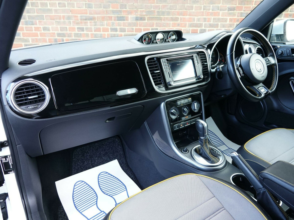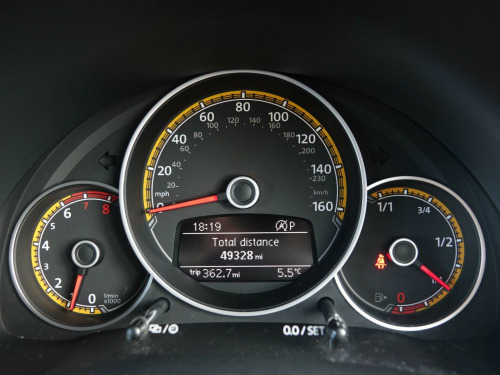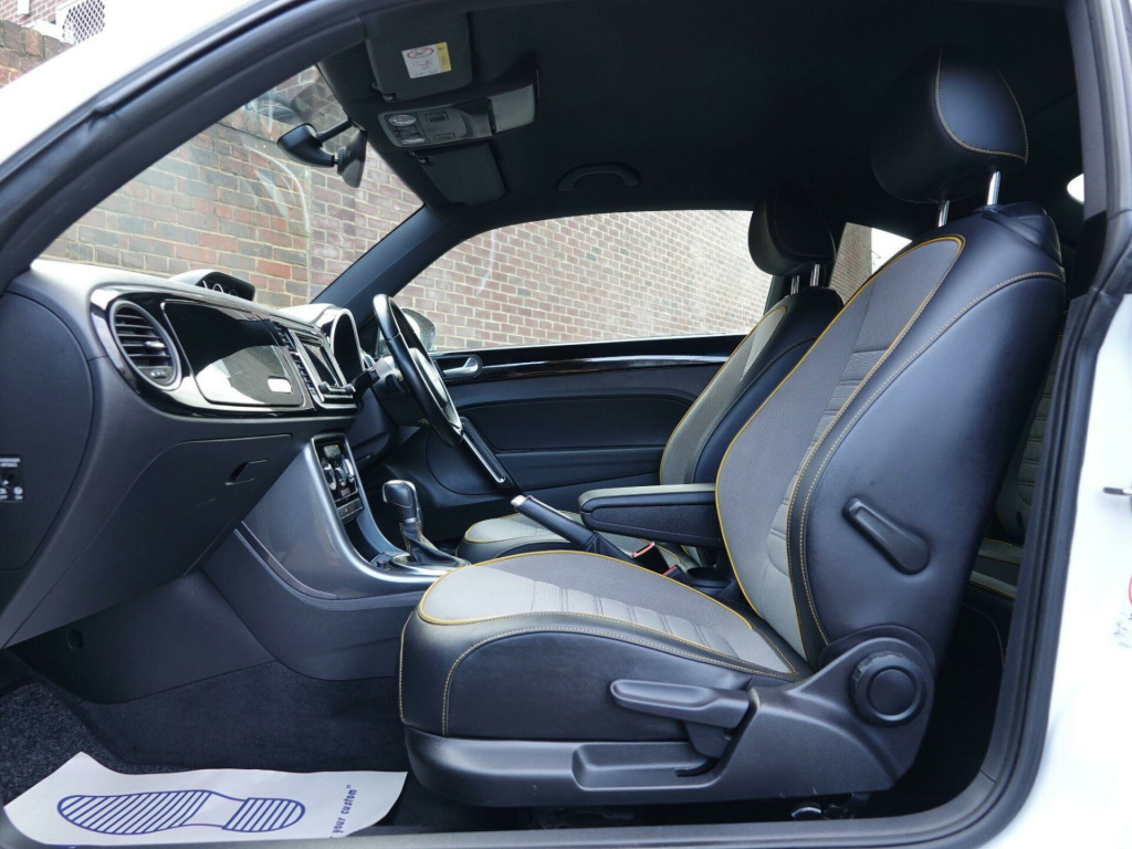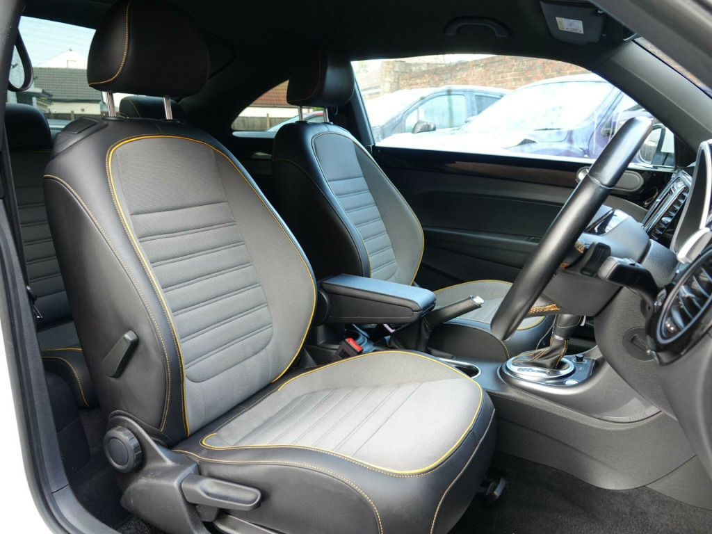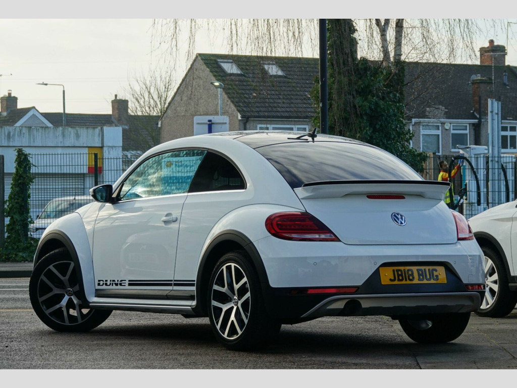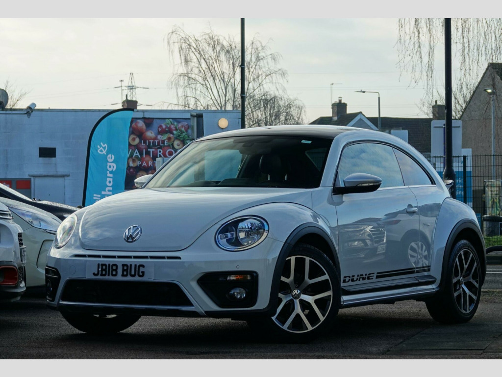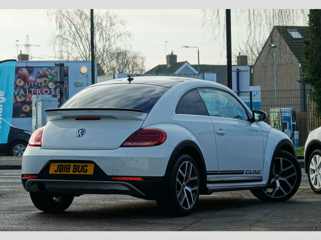 This 2018 Volkswagen Beetle TSI Dune boasts a full service history, ensuring excellent provenance for this stylish vehicle. Powered by a 1.2 litre Euro 6 compliant petrol engine, this Beetle offers an impressive fuel economy of 54 miles per gallon. It comes equipped with desirable features including Climatic semi-automatic air conditioning, a dusk sensor for automatic headlights, and front and rear parking sensors for added convenience. The Composition Media system with Bluetooth connectivity keeps you entertained and connected on the go, while the Light and Sight Pack further enhances visibility.This particular TSI Dune variant stands out with its comprehensive provenance, including a clear vehicle history check and a recent service completed on 2025-09-19 at 48,587 miles. To provide peace of mind, a 12 month MOT will be provided on purchase, and the vehicle is supplied with a 3 month warranty. These details collectively indicate that this Volkswagen Beetle has been well cared for and is in a strong position compared to other similar vehicles on the market. v socket - centre console x2, 18in alloy wheels - mythos, abs - anti-lock braking system with hba - hydraulic brake assist, air conditioning - climatic semi-automatic control, alarm with interior protection, automatic coming-leaving home lighting function, automatic post-collision braking system, black grained lower door protectors, body-coloured door handles, body-coloured-black rear extended tailgate spoiler, brake pad wear indicator, carpet mats - front and rear with dark ceramic stitching, chrome strip on side window base, chrome trimmed air vent surrounds - decor rings - instrument cluster and radio surround, composition media system, cup holders - front x2 rear x1, dark ceramic stitching on leather trimmed handbrake grip, door mirrors - electrically adjustable and heated, door mirrors - reflex silver with integrated indicators, drivers and front passengers airbags with front passenger airbag deactivation switch, drivers and front passengers combined head and side airbag system, drivers and front passengers safety optimised head restraints, dune styling pack, dune white decals on door panels, dusk sensor - automatic driving lights, esc - electronic stability control including edl - electronic differential lock and asr - traction control, electric windows - front, electronic engine immobiliser, exterior temperature gauge, frameless rear view mirror, front centre armrest with storage compartment and dark ceramic stitching, front fog lights with static cornering function, front seat back storage pockets, front seats with manual lumbar adjustment, front sport seats with height and lumbar adjustment, front three-point seat belts with tensioners, gloss black dashpad and interior door panels, glovebox, grab handles - front x2 rear x2, headlights - halogen clear - range adjustable, heated rear windscreen, height and reach adjustable steering wheel, high level 3rd brake light, hill hold function, isofix child seat preparation for 2 rear seats, increased ground clearance raised approx 10mm, instrument lighting - white adjustable panel illumination, light and sight pack, lights on warning buzzer, luggage compartment cover and hook - removable, luggage compartment light, multifunction computer, parking sensors - front and rear, platinum grey centre console, power assisted steering - speed sensitive, rain sensor and automatic dimming interior rear-view mirror, reading lights - front x2, rear diffuser in reflex silver, rear head restraints x 2 - height-adjustable, rear lights incorporating led technology, reflectors in doors, reflex silver side sill protection with matt black grained inserts, reflex silver underbody styling trims, remote central locking with 2 remote folding keys, seats - easy entry sliding front, seats - split folding rear backrests 50-50, spare wheel - space saver steel, speedo and rev counter - electronic odometer - trip - service interval display and fuel gauge, sports instrument dials, steering wheel - leather trimmed - multifunction with paddle shift, tinted rear light clusters, two rear three-point seatbelts, two-tone horn, tyre pressure loss indicator, unique beetle storage compartment in dashboard, unique dune gear lever knob, vanity mirrors, volkswagen connect, warning buzzer and light for front seat belts if unfastened, wheel arch protection - matt black grained, windscreen wiper with intermittent wipe