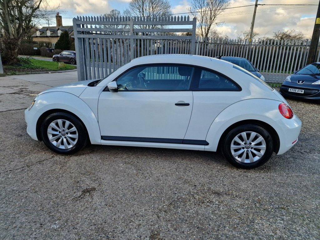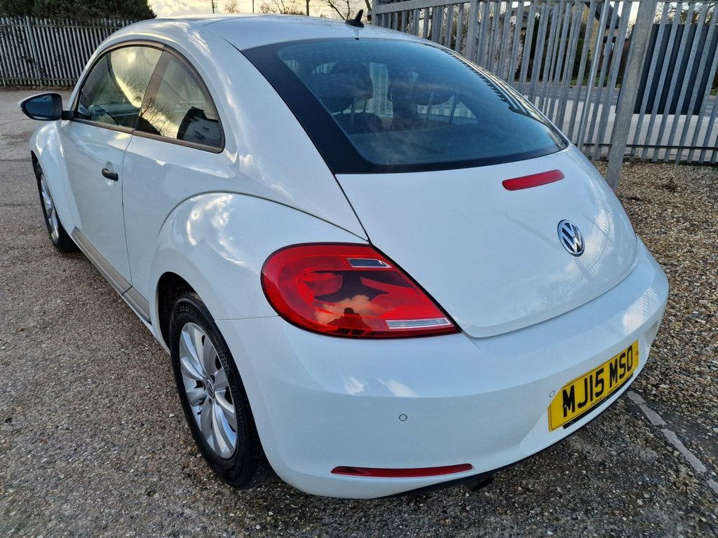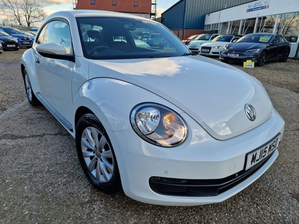 GREAT LOOKING 2015 VW BEETLE 1.2 PETROL TURBO FINISHED IN PURE WHITE WITH FACTORY ALLOYS! JUST 3 KEEPERS COMPLETE WITH A SERVICE RECORD INCLUDING ORIGINAL TWO KEYS. FEATURES INCLUDE COLD BLOWING AIR CONDITIONING, FRONT AND REAR PARKING SENSORS, RADIO-CD-AUX-12V, CENTRE ARM REST, ELECTRIC WINDOWS, ELECTRIC HEATED DOOR MIRRORS, REMOTE CENTRAL LOCKING!:A SUPER LOOKING BRIGHT GENUINE CAR THAT DRIVES LIKE NEW. ULEZ COMPLIANT. SUPPLIED FULLY SERVICED WITH A FULL YEARS MOT. FINANCE AVAILABLE AT COMPETITIVE RATES. CREDIT CARDS ACCEPTED. PART EXCHANGE WELCOME. NO PRESSURE NO HASSLE SALES STAFF. OVER 60 YEARS COMBINED MOTOR TRADE EXPERIENCE. ALL CARS HPI SAFETY CHECKED. SUCCESSFULLY TRADING FOR OVER 25 YEARS. FIND US ON FACEBOOK AND LIKE OUR PAGE. FOCUS CAR SALES 01284 850756. 12V Socket - Centre Console x2, 16in Steel Wheels, ABS - Anti-Lock Braking System, ASR - Anti Slip Regulation, Air Conditioning - Manual, Airbags - Curtain Head, Airbags - Driver, Airbags - Front Passenger, Airbags - Front Passenger with Deactivat, Airbags - Front Side, Armrest - Front Centre with Storage Comp, Aux-In Socket, Black Grained Door Sill Protection, Body Coloured Bumpers, Body-Coloured Door Mirrors with Integrat, Brake Pad Wear Indicator, Central Locking - Remote with 2 Remote K, Cup Holders - Front x2 Rear x1, DAB+ - Digital Radio Reception, Dashboard - Gloss Black Panel, Differential Lock - Electronic, Door Handles - Black, Door Mirrors - Electrically Adjustable a, ESP - Electr