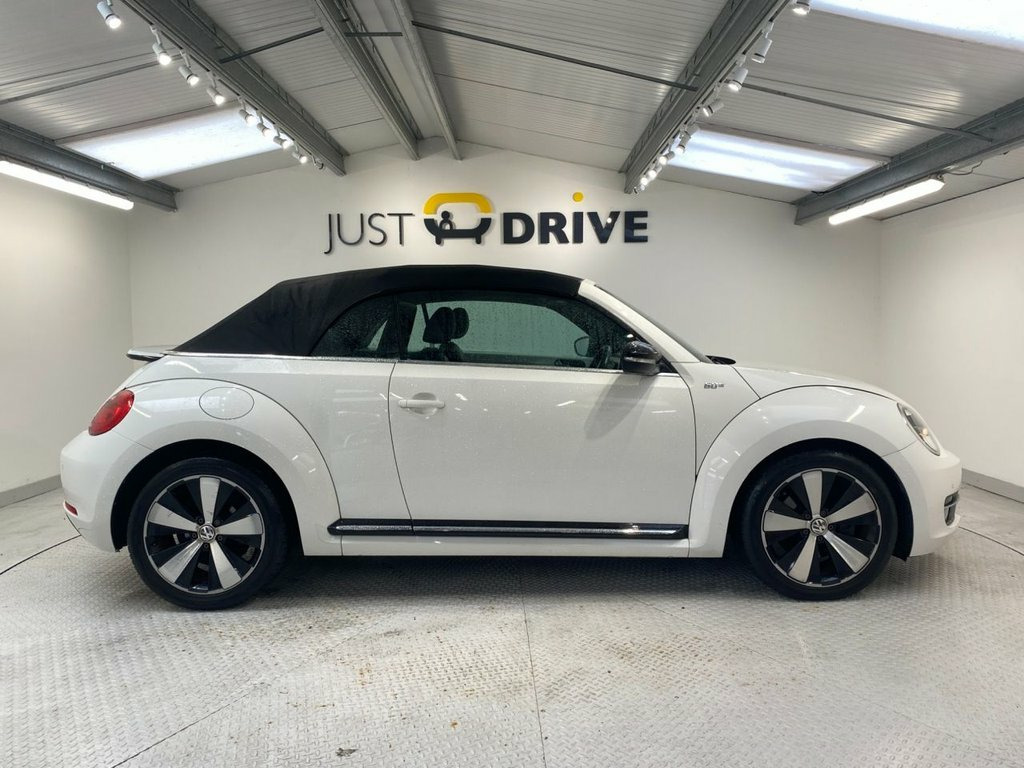 The Beetle Cabriolet is a fun, charismatic and well-built choice for those who prioritize style and comfort in a convertible and this rare 60's Edition has some unique spec and low mileage with comprehensive service history. It's fully colour coded in Candy White and stands on chunky 18" diamond cut alloy wheels - a two-tone boot spoiler completes the sporty exterior. Also included is the optional tonneau cover and wind deflector which does a great job in reducing wind buffeting. Moving inside there's 2-tone red and black sports seats in full leather upholstery that feature 3-stage electric heating - perfect for the colder weather. Music lovers will enjoy the premium Fender Sound System which also has a boot mounted boom box. Ice cold air conditioning will keep everyone cool and there's also Bluetooth connectivity, cruise control, front and rear park sensors and DAB radio. The electric roof is a quality piece of kit that opens and closes quickly and offers good refinement when in place. 12V Socket - Centre Console x2, 18in Alloy Wheels - Twister, 2 Zone Electronic Climate Control with A, 6CD Autochanger - Dash Mounted, ABS - Anti-Lock Braking System, ASR - Anti Slip Regulation, Active Rollover Protection System, Airbags - Curtain Head, Airbags - Driver, Airbags - Front Passenger with Deactivat, Airbags - Front Side, Alarm with Interior Protection, Aluminium Look Pedals, Ambient Lighting, Anti-Theft Wheel Bolts, Armrest - Front Centre with Storage Comp, Aux-In Socket, Black Convertible Roof, Bluetooth Telephone Preparation for Hand, Body Coloured Bumpers, Body Coloured Door Handles, Body Coloured Rear Spoiler, Brake Pad Wear Indicator, Carpet Mats - Front and Rear, Central L