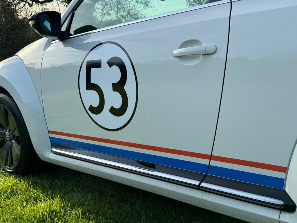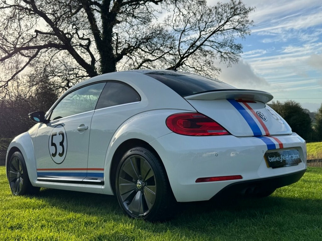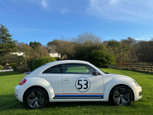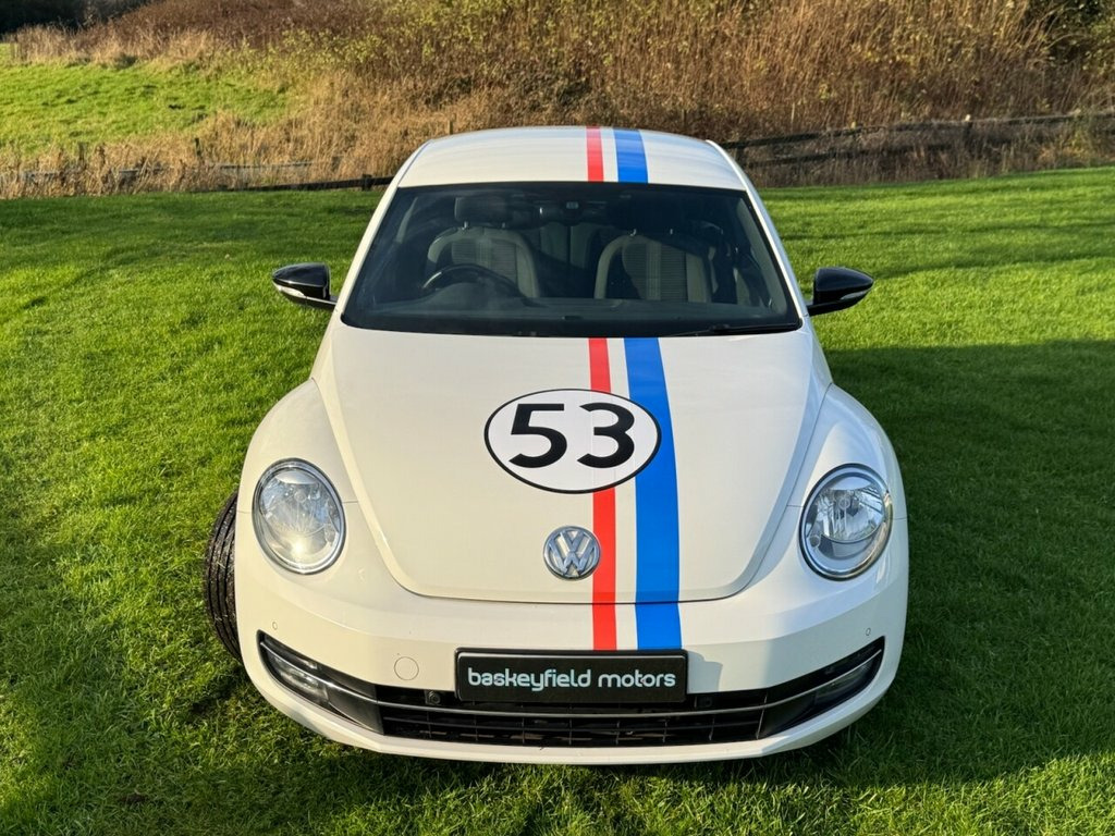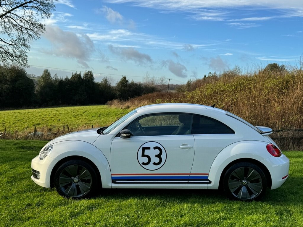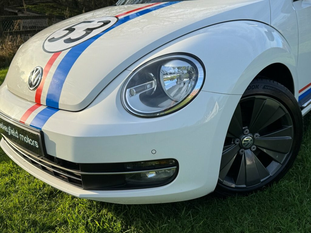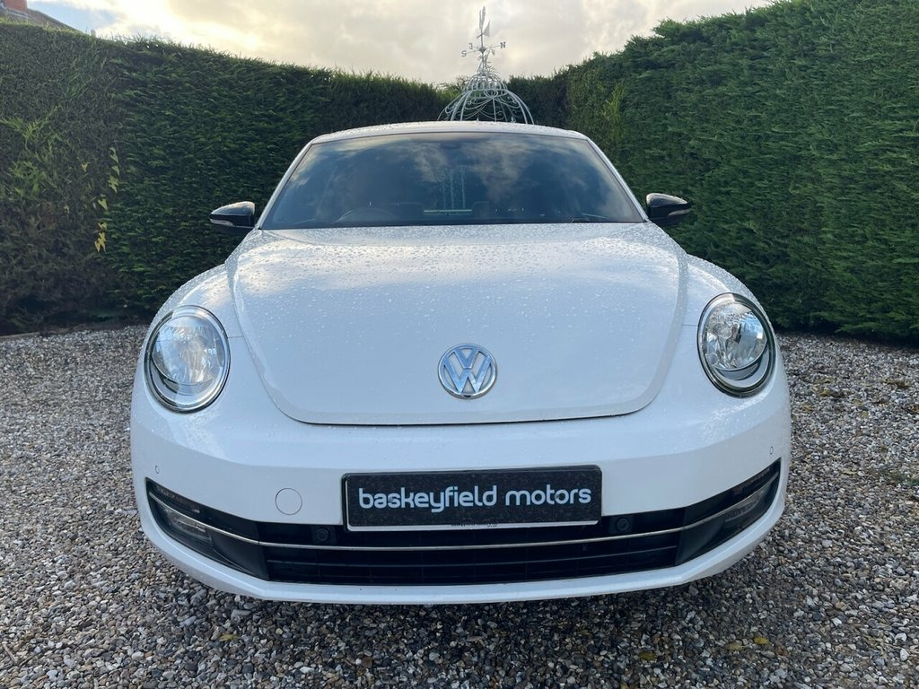VOLKSWAGEN BEETLE FINISHED IN CANDY WHITE, Complete with Ferris cloth sports seats in titan black, 18" twister alloy wheels in anthracite , Fender sound system, CD player, DAB digital radio, Bluetooth phone connectivity, Front and rear parking sensors, Rear boot spoiler, Multi function steering wheel, Front centre armrest, Air conditioning, Iso-fix seating system, On board computer, 18in Alloy Wheels - Twister, Ferris Cloth - Titan Black