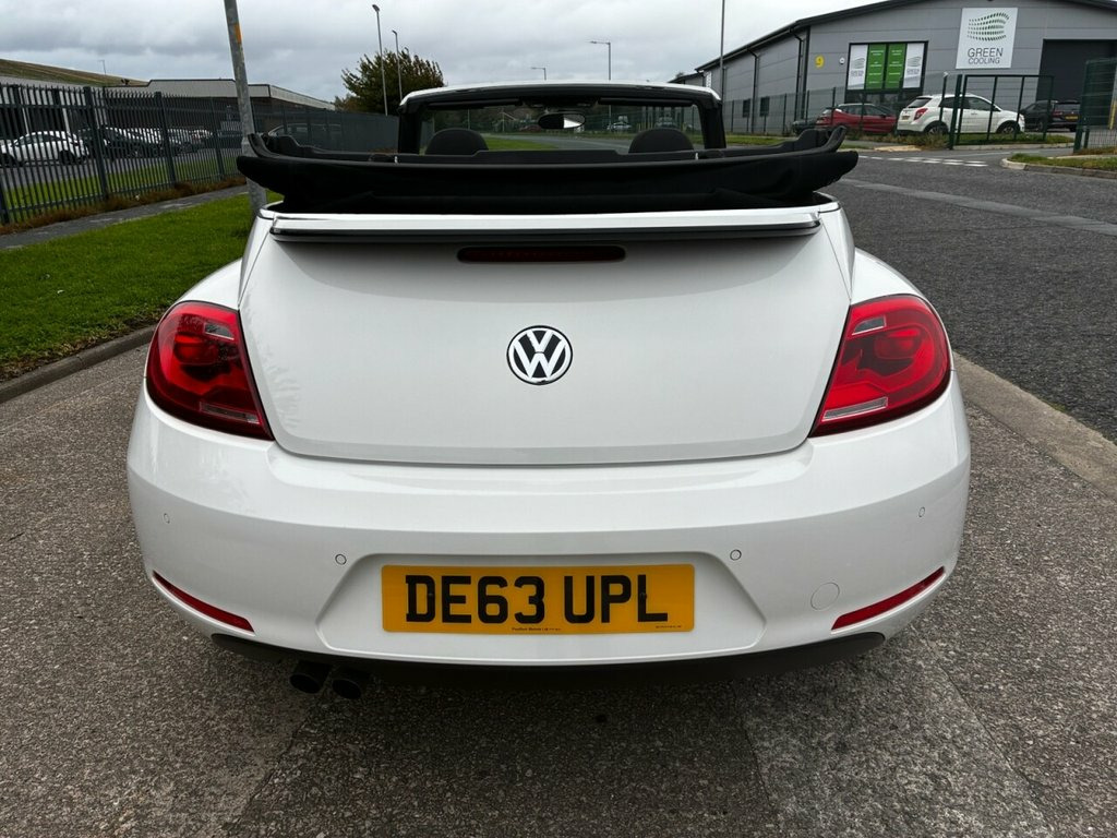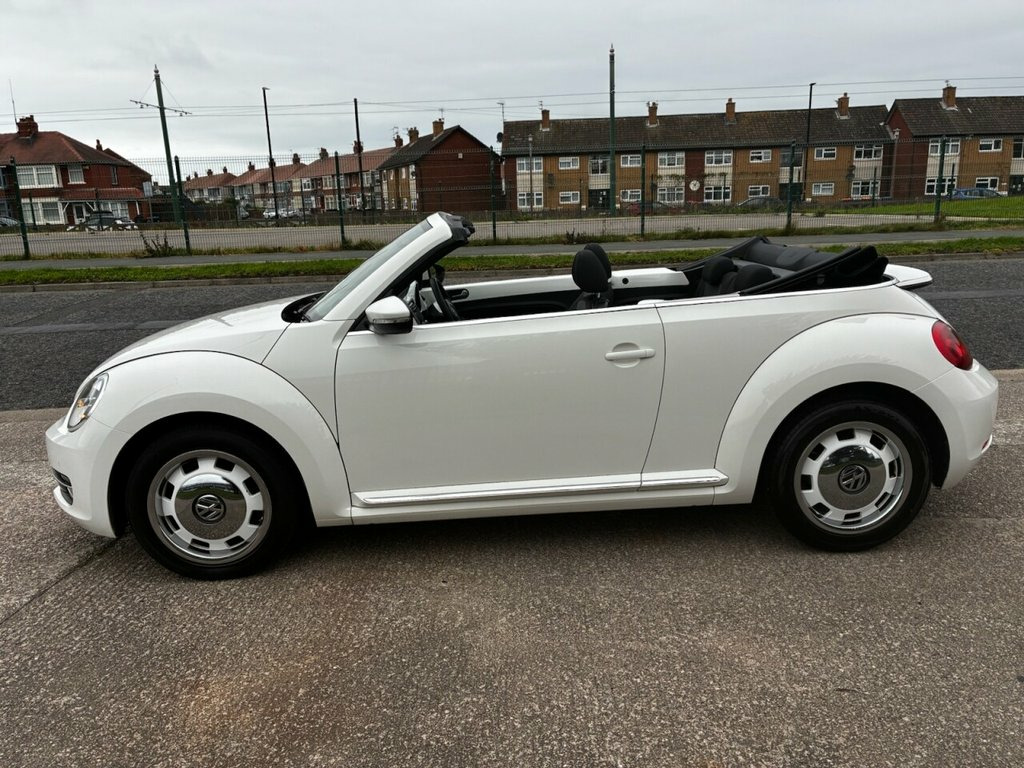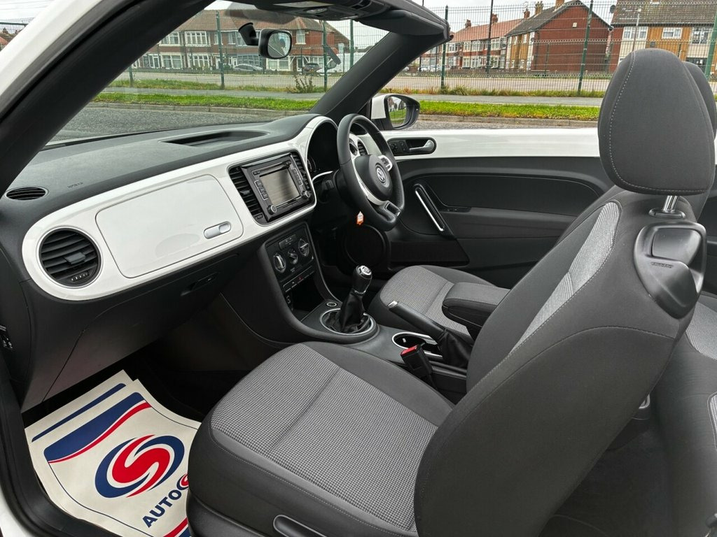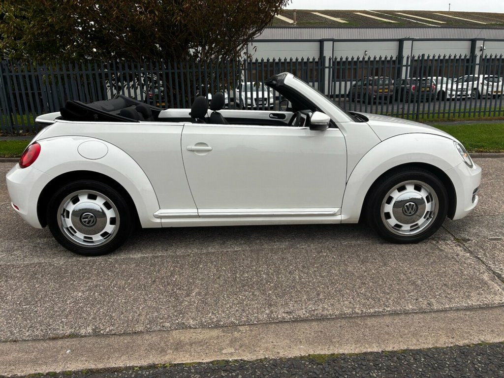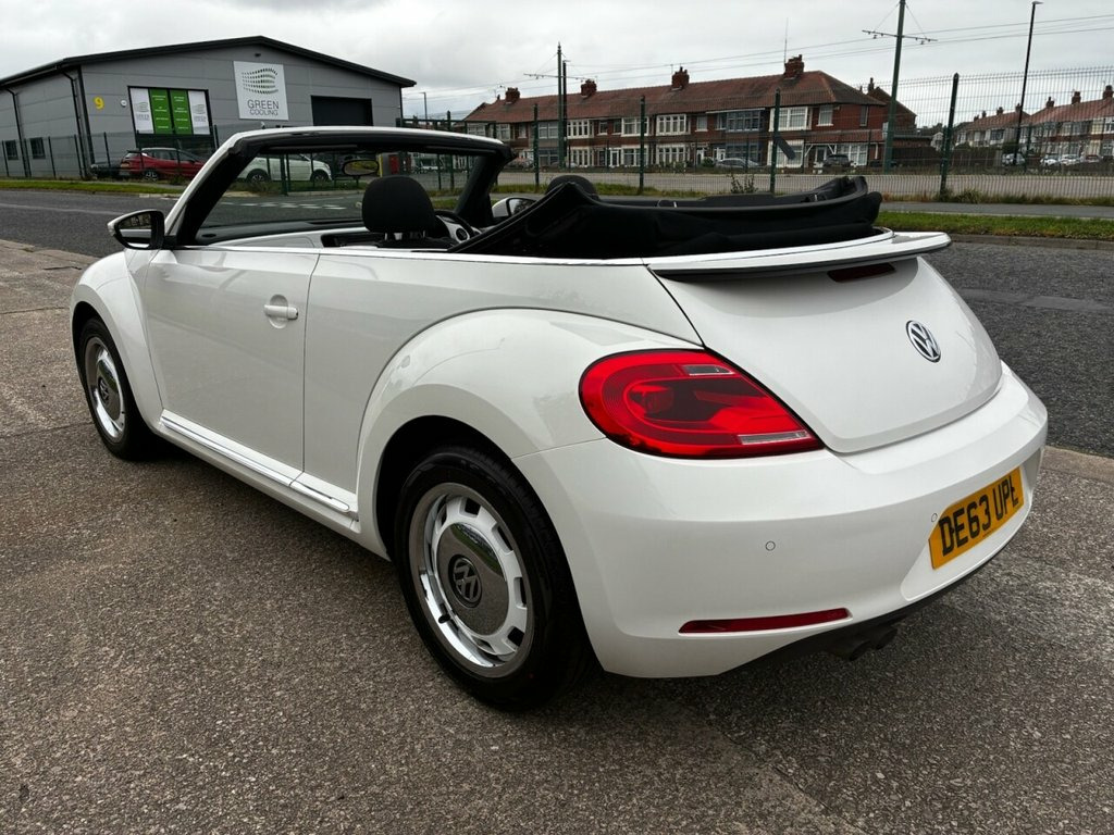 This 2013 Volkswagen Beetle 1.6 TDI BlueMotion Tech Design Cabriolet 2dr Diese Convertible is currently available for £6,995 in Fleetwood Lancashire with Diesel engine and Manual gearbox. For more information or to arrange a viewing, click here to send us an email using form below.