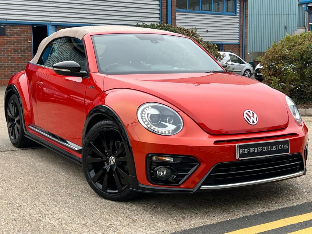 We are proud to offer this ultra rare top of the range Beetle Automatic Convertible R-Line with a stunning colour combination Pearlescent Orange Special Order Paintwork which changes colour in the sunlight with a Cream electric roof and black leather R-Line seats. 1 previous lady owner along with full VW dealer service history . Great spec including satellite navigation system, heated seats, 19 inch gloss black alloy wheels .Discover this exceptional 2016 Volkswagen Beetle TDI R Line, boasting remarkably low mileage of just 45,000 miles, a significant advantage for its age. This Euro 6 compliant model features a powerful yet efficient 2.0 litre diesel engine and comes with a clear vehicle history check, offering peace of mind. Inside, you'll find the R Line trim enhances the driving experience with a steering wheel featuring paddle shifts for manual gear selection. Comfort is assured with 2 Zone Electronic Climate Control, ensuring a pleasant temperature for all occupants, while the Composition Media System includes Bluetooth connectivity for seamless audio streaming and hands free calls. Navigating tight spaces is made easier thanks to the front and rear parking sensors, complemented by a parking assistance system., , This Volkswagen Beetle stands out with its impressive fuel economy, achieving an excellent 58 miles per gallon, which is a considerable benefit for your running costs compared to many other vehicles. Furthermore, its low insurance group rating means that insuring this stylish Beetle is also more affordable. These highlights demonstrate how this particular vehicle offers superior value and practicality for its owner., 4 seats, Orange, Upgrades - Discover Navigation Touch-Screen Navigation-Radio System with Car-Net Guide and Inform, Vienna Leather - Black-Art Grey, Winter Pack, Sports Suspension, R-Line Vienna Leather - Black - Art Grey, 19in Alloy Wheels - Tornado with Sports Suspension, Standard Features - 12V Socket - Centre Console x2, 18in Alloy Wheels - Twister, 2 Zone Electronic Climate Control with Automatic Air Recirculation, ABS - Anti-Lock Braking System with HBA - Hydraulic Brake Assist, Aluminium Look Pedals, Ambient Lighting, Armrest - Front Centre with Storage Compartment, Automatic Post-Collision Braking System, Black Grained Door Sill Protection, Black Hood, Body Coloured Dash and Door Panels, Body-Coloured Door Handles, Body-coloured Bumpers in More Aggressive Design, Brake Pad Wear Indicator, Carpet Mats - Front and Rear, Chrome Strip on Side Window Base, Chrome Trimmed Air Vent Surrounds - Decor Rings - Instrument Cluster and Radio Surround, Composition Media System, Cruise Control, Cup Holders - Front x2 Rear x1, DAB+ - Digital Radio Reception, Dark Tinted Tail Lights, Door Mirrors - Electrically Adjustable and Heated, Driver and Front Passenger Seat Height Adjustment, Drivers and Front Passengers Airbags . Viewing by appointment please. 6 mo the warranty included. Part exchange welcome. Finance available v socket - centre console x2, composition media system, dab+ - digital radio reception, usb connection, 18in alloy wheels - twister, black grained door sill protection, body-coloured door handles, body-coloured-black rear tailgate spoiler, chrome strip on side window base, dark tinted tail lights, door mirrors - electrically adjustable and heated, door mirrors - gloss black with integrated indicators, electric power hood, electric windows - front and rear, exhaust tailpipes - chrome left and right, front air intake with chrome trimmed louvre, gloss black door protectors with chrome inserts, r-line styling pack, spare wheel - space saver steel, tinted rear light clusters, twin exhaust tailpipe - left, unique r-line badging, 2 zone electronic climate control with automatic air recirculation, aluminium look pedals, ambient lighting, carpet mats - front and rear, chrome trimmed air vent surrounds - decor rings - instrument cluster and radio surround, cup holders - front x2 rear x1, door sill protectors - aluminium with r-line logo, drivers and front passengers safety optimised head restraints, frameless rear view mirror, front centre armrest with storage compartment, front seat back storage pockets, front seats with manual lumbar adjustment, front sports seats with manual height and lumbar adjustment and embroidered r-line logo on head restraints, gloss black dashpad and interior door panels, glovebox, height and reach adjustable steering wheel, instrument lighting - white adjustable panel illumination, leather trimmed gear knob and handbrake grip, luggage compartment light, platinum grey centre console, reading lights - front x2, rear head restraints x 2 - height-adjustable, reflectors in doors, seats - easy entry sliding front, seats - split folding rear backrests 50-50, sports instrument dials, steering wheel - multifunction - leather trimmed, steering wheel - paddle shift, tonneau cover, unique beetle storage compartment in dashboard, vanity mirrors, windscreen wiper with intermittent wipe, abs - anti-lock braking system with hba - hydraulic brake assist, alarm with interior protection, automatic post-collision braking system, drivers and front passengers airbags with front passenger airbag deactivation switch, drivers and front passengers combined head and side airbag system, esc - electronic stability control including edl - electronic differential lock and asr - traction control, electronic engine immobiliser, front three-point seat belts with tensioners, hill hold function, isofix child seat preparation for 2 rear seats, remote central locking with 2 remote folding keys, rollover protection system, two rear three-point seatbelts, two-tone horn, warning buzzer and light for front seat belts if unfastened, brake pad wear indicator, cruise control, exterior temperature gauge, multifunction computer, parking sensors - front and rear, power assisted steering - speed sensitive, speedo and rev counter - electronic odometer - trip - service interval display