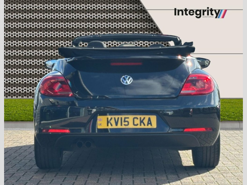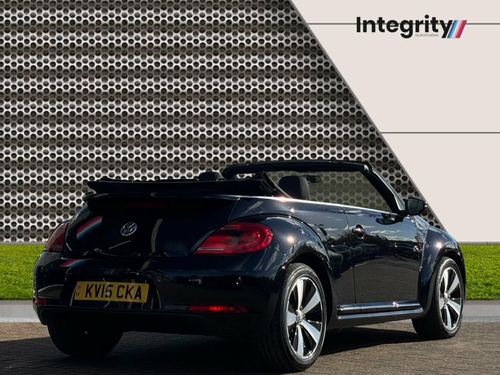 This stunning 2015 Volkswagen Beetle Convertible in timeless black (black interior and roof) blends everyday functionality, iconic beauty, and incredibly low ownership expenses. The frugal 2.0-liter diesel engine and automatic transmission installed under the hood are frequently praised by reviews for providing excellent long-distance efficiency without compromising the calm, smooth ride that Volkswagen incorporates into its little vehicles. For drivers who seek convertible fun with affordable operating expenses, the Beetle with diesel offers "exceptional fuel efficiency," according to Car & Driver. This example is an outstanding candidate for buyers who value low mileage and a careful service history: only 18,677 miles on the clock, just two previous owners, and three recorded services (the most recent in November 2022 at 15,674 miles). Those facts — low miles and documented servicing — translate into lower short-term maintenance risk and higher confidence for a purchaser looking for a ready-to-drive convertible. Consumer reviews and owner threads for this generation often note that well-maintained Beetles can remain trouble-free for many miles when properly serviced, reinforcing the value of a clean service record. Inside, the Beetle's cabin is designed to be both attractive and useable. This car's black interior and dual-zone climate control make it comfortable whether the roof is up or down, while the touchscreen infotainment and el 12V Socket - Centre Console x2, 18in Alloy Wheels - Twister, 2 Zone Electronic Climate Control with A, ABS - Anti-Lock Braking System, Active Rollover Protection System, Airbags - Driver, Airbags - Front Passenger, Airbags - Front Passenger with Deactivat, Airbags - Front Side, Airbags - Head, Alarm with Interior Protection, Aluminium Look Pedals, Ambient Lighting, Anti-Theft Wheel Bolts, Armrest - Front Centre with Storage Comp, ASR - Anti Slip Regulation, Aux-In Socket, Black with Black Roof, Bluetooth Audio Connection, Bluetooth Phone Connectivity, Body Coloured Bumpers, Body Coloured Door Handles, Body Coloured Rear Spoiler, Brake Pad Wear Indicator, Carpet Mats - Front and Rear, Central