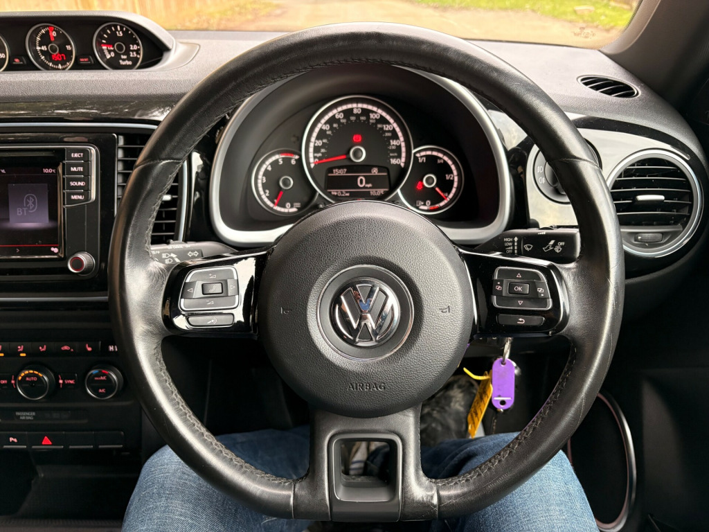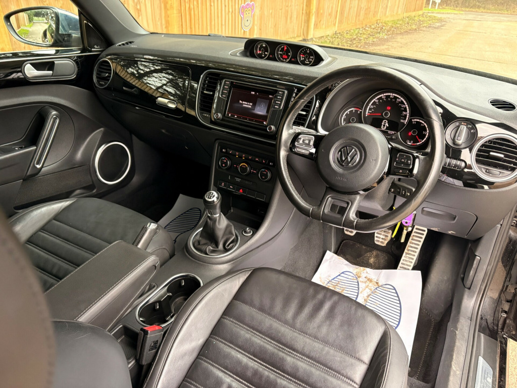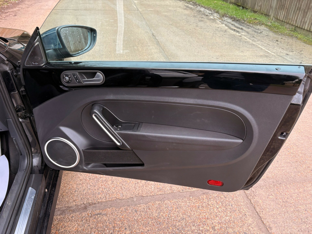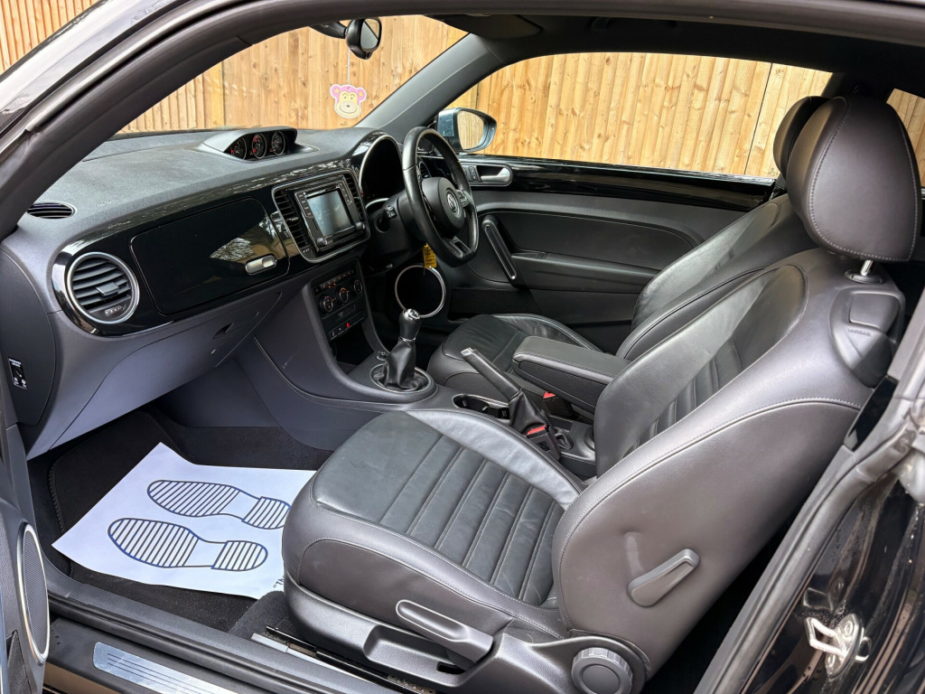 Just arrived.. Rare ''black'' edition Beetle finished in Santorini black with full Nero leather interior which has been kept in lovely condition and drives without fault.The specification includes optical park distance control, integrated telephone system, multi function steering wheel, dual zone electronic climate control, 18'' twister alloy wheels etc etc. it has been carefully maintained by its one previous owners and we have the original two keys, V5C, book pack and service record. It has also just been serviced and has a new advisory free mot. Not to be missed..call us now on 01732 835520 to book a test drive or read on to find out more about us..The Brookside Group is a long established family business with a great reputation and we operate in a relaxed and friendly manner with no pressure whatsoever. For complete peace of mind all our vehicles have a new MOT, a full HPI report and a comprehensive warranty. We have no hidden fees. Please read our five star reviews. This vehicle will be supplied with a six months parts and labour warranty which can be extended to one or two years at extra cost. Competitive finance is available subject to status. We are authorised and regulated by the FCA. FCA number 665382. Part exchange is welcome. To arrange a viewing on this vehicle please call us on 01732 835520 or use the email booking facility. v socket - centre console x2, aux-in socket, bluetooth audio connection, bluetooth phone connectivity, colour touch screen - 6.5in, composition media system, dab+ - digital radio reception, dash-mounted mp3 compatible cd player, mdi - multi device interface, sd card reader, speakers x8, usb socket, 18in alloy wheels - twister, anti-theft wheel bolts, body coloured bumpers, body coloured door handles, door mirrors - electrically adjustable and heated, door mirrors - gloss black with integrated indicators, electric windows - front, front air intake with chrome trimmed louvre, heated rear windscreen, side window surrounds - chrome strips, spare wheel - space saver steel, tinted glass - heat insulating rear 65 percent light absorbing from b pillar backwards, 2 zone electronic climate control with automatic air recirculation, aluminium look pedals, ambient lighting, armrest - front centre with storage compartment, carpet mats - front and rear, chrome trimmed air vent surrounds-decor rings-instrument cluster and radio surround, cup holder - rear, cup holders - front x2, dashboard - gloss black, drivers seat height adjustment, dust and pollen filter, front seat back storage pockets, front sports seats, gloss black door sill protection with chrome inserts, glovebox, grab handles - front x2 rear x2, head restraints - front whiplash optimised, height and reach adjustable steering wheel, instrument lighting - white adjustable panel illumination, leather trimmed gear knob, leather trimmed handbrake grip, luggage compartment cover - removable, luggage compartment light, reading lights - front x2, rear head restraints x 2 - height-adjustable, reflectors in doors, seats - easy entry sliding front, seats - front lumbar support, seats - height adjustment - front passenger, seats - split folding rear backrests 50-50, sports instrument dials, steering wheel - 3-spoke - leather trimmed with gloss black inserts, steering wheel - multifunction, sun visors with vanity mirrors, unique beetle storage compartment in dashboard, abs - anti-lock braking system, asr - anti slip regulation, airbags - driver, airbags - front passenger, airbags - front passenger with deactivation switch, airbags - front side, airbags - head, alarm with interior protection, central locking - remote with 2 remote keys, differential lock - electronic, esc - electronic stability control, electronic engine immobiliser, hba - hydraulic brake assist, hill hold assist, isofix child seat preparation for 2 rear seats, keys - two remote control folding keys, seatbelt reminder, brake pad wear indicator, cruise control, exterior temperature gauge, multifunction computer, parking sensors - front, parking sensors - rear, power assisted steering - speed sensitive, think blue - trainer - driver tips - journey analysis, tyre pressure indicator, up and downshift gear indicator, front fog lights with cornering lights, headlights - halogen clear - range adjustable, high level 3rd brake light