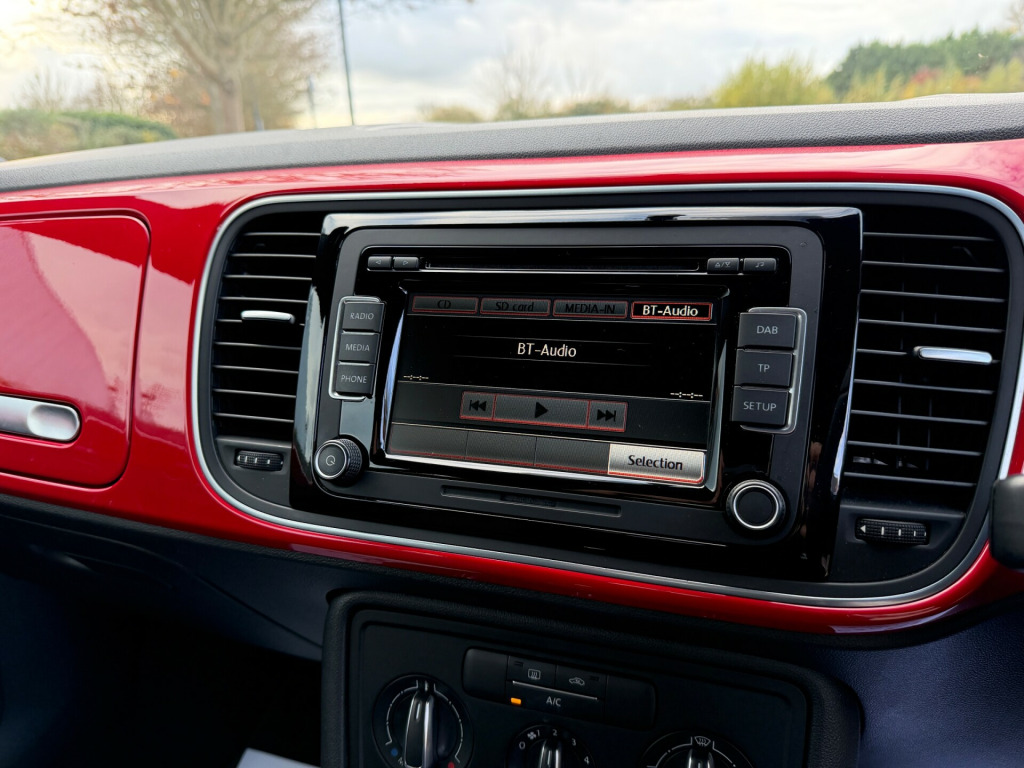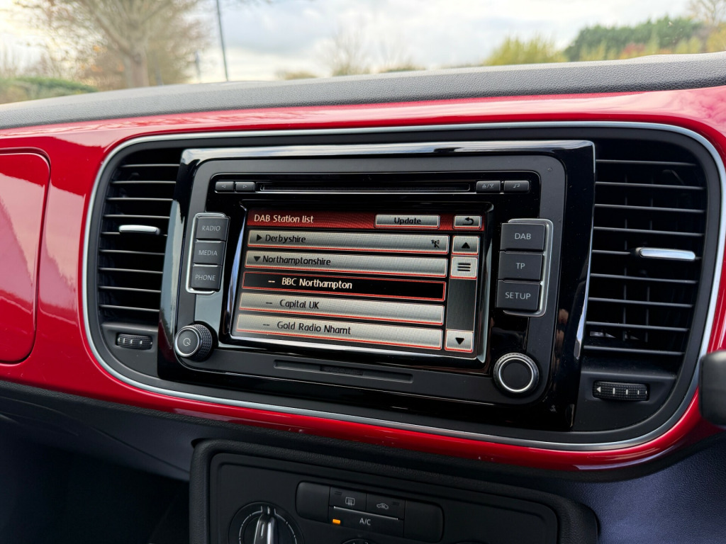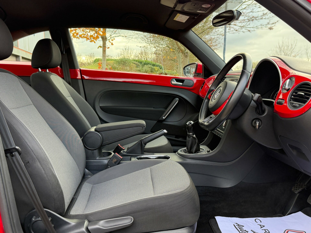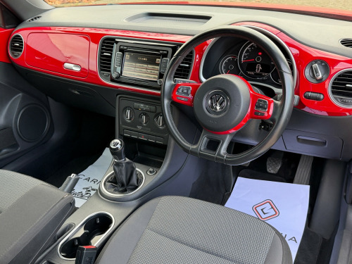 Bright looking VW Beetle with Full Service History, 2 Keys. Just been serviced by us and will come with 12 Months MOT. v socket - centre console x2, 6cd autochanger - dash mounted, bluetooth telephone preparation for hands free profile enabled telephones, dab+ - digital radio reception, mdi - multi device interface with usb - ipod connection cables, rcd 510 touch screen radio system, sd card reader, speakers x8, 17in alloy wheels - orbit, body coloured bumpers, body coloured door handles, body-coloured door mirrors with integrated indicators, door mirrors - electrically adjustable and heated, electric windows - front, front air intake with chrome trimmed louvre, heated rear windscreen, side window surrounds - chrome strips, spare wheel - space saver steel, styling pack for r-line, abs - anti-lock braking system, asr - anti slip regulation, airbags - curtain head, airbags - driver, airbags - front passenger, airbags - front passenger with deactivation switch, airbags - front side, alarm with interior protection, central locking - remote with 2 remote keys, differential lock - electronic, esp - electronic stability programme, hba - hydraulic brake assist, hill hold assist, isofix child seat preparation for 2 rear seats, rigid safety cell with front and rear crumple zones, seatbelt reminder, air conditioning - manual, armrest - front centre with storage compartment, body coloured door sill protection, carpet mats - front and rear, chrome trimmed air vent surrounds-decor rings-instrument cluster and radio surround, cup holders - front x2 rear x1, dashboard - body coloured, front seat back storage pockets, glovebox, grab handles - front x2 rear x2, head restraints - front whiplash optimised, height and reach adjustable steering column, instrument lighting - white adjustable panel illumination, leather trimmed gear knob, leather trimmed handbrake grip, luggage compartment cover - removable, luggage compartment light, particle filter, reading lights - front x2, rear head restraints x 2 - height-adjustable, seats - easy entry sliding front, seats - height adjustment - front, seats - split folding rear backrests 50-50, steering wheel - 3-spoke - leather trimmed with body coloured inserts, steering wheel - multifunction, sun visors with vanity mirrors, unique beetle storage compartment in dashboard, windscreen wipers with intermittent wipe and 4 position delay, brake pad wear indicator, exterior temperature gauge, multifunction computer, power assisted steering - speed sensitive, tyre pressure indicator, warning light for low washer fluid, front fog lights with cornering lights, headlights - halogen clear - range adjustable, high level 3rd brake light