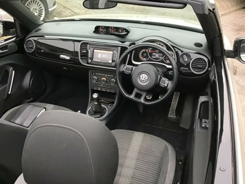 Lovely Beetle cab with full service history , two keys , full service pack, only two owners from new. v socket - centre console x2, 18in alloy wheels - twister, 2 zone electronic climate control with automatic air recirculation, 6cd autochanger - dash mounted, abs - anti-lock braking system, asr - anti slip regulation, active rollover protection system, airbags - curtain head, airbags - driver, airbags - front passenger with deactivation switch, airbags - front side, alarm with interior protection, aluminium look pedals, ambient lighting, anti-theft wheel bolts, armrest - front centre with storage compartment, aux-in socket, bluetooth telephone preparation for hands free profile enabled telephones, body coloured bumpers, body coloured door handles, body coloured rear spoiler, brake pad wear indicator, carpet mats - front and rear, central locking - remote with 2 remote keys, chrome trimmed air vent surrounds-decor rings-instrument cluster and radio surround, cruise control, cup holders - front x2 rear x1, dab+ - digital radio reception, dashboard - gloss black, differential lock - electronic, door mirrors - electrically adjustable and heated, door mirrors - gloss black with integrated indicators, esp - electronic stability programme, electric folding roof, electric windows - front, electronic engine immobiliser, exterior temperature gauge, flat tyre indicator, front air intake with chrome trimmed louvre, front fog lights with cornering lights, front seat back storage pockets, fully automatic electric power hood, gloss black door sill protection with chrome inserts, glovebox, grab handles - front x2 rear x2, hba - hydraulic brake assist, head restraints - front whiplash optimised, headlights - halogen clear - range adjustable, heated rear windscreen, height and reach adjustable steering column, high level 3rd brake light, hill hold assist, isofix child seat preparation for 2 rear seats, instrument lighting - white adjustable panel illumination, leather trimmed gear knob, leather trimmed handbrake grip, luggage compartment - hook - removable, luggage compartment light, mdi - multi device interface with usb - ipod connection cables, multifunction computer - highline - includes visual gear change recommendation, parking sensors - front, parking sensors - rear, particle filter, power assisted steering - speed sensitive, rcd 510 touch screen radio system, reading lights - front x2, rear head restraints x 2 - height-adjustable, reflectors in doors, rigid safety cell with front and rear crumple zones, sd card reader, seatbelt reminder, seats - easy entry sliding front, seats - front sport with lumbar adjustment, seats - height adjustment - front, seats - split folding rear backrests 50-50, side window surrounds - chrome strips, spare wheel - space saver steel, speakers x8, sports instrument dials, steering wheel - 3-spoke - leather trimmed - multifunction with gloss black inserts, steering wheel - multifunction, sun visors with vanity mirrors, suspension - four link rear, tonneau cover, two-tone horn, unique beetle storage compartment in dashboard, warning light for low washer fluid, warning lights for open tailgate and doors