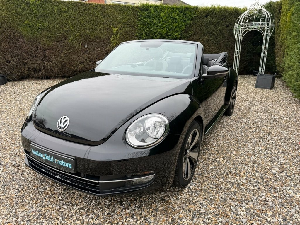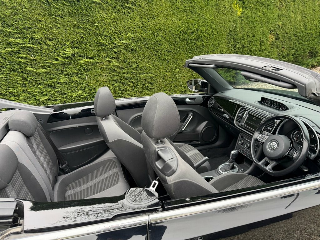 VOLKSWAGEN BEETLE CONVERTIBLE FINISHED IN DEEP BLACK with black roof (£545), Complete with Ferris cloth in titan black, 18" Alloy wheels black and polished, Climate control, Cruise control, Front and rear parking sensors, Rear boot spoiler, Front centre arm rest, Multi function flat bottom steering wheel, Radio and CD player, On board computer, Bluetooth phone connectivity. Deep Black with Black Roof, Ferris Cloth - Titan Black