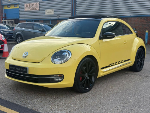 1 LADY OWNER, FULL DEALER SERVICE HISTORY, 12 SERVICES CARRIED OUT, VERY RARE YELLOW 2.0 PETROL BEETLE BLACK EDITION TURBO AUTOMATIC, HUGE SPECIAL, Upgrades - RNS 315 Touch Screen Satellite Navigation and Radio System, Panoramic Sunroof, Vienna Leather - Black, Winter Pack, Fender Premium Soundpack, Headlights - Bi-Xenon - Gas Discharged, 19 inch Alloys, Tinted Glass - Heat Insulating Rear 90% Light Absorbing from B Pillar Backwards , Discover this exceptional 2013 Volkswagen Beetle TSI Turbo Black, boasting remarkably low mileage for its age, having covered just 30k miles. This stylish hatchback, powered by a 2.0 litre petrol engine, has been cherished by only two owners. It comes equipped with a desirable Panoramic Sunroof, perfect for enjoying the open sky, and a Winter Pack that includes heated seats for added comfort during colder months.PLEASE NOTE THESE CARS ARE INCREASING IN VALUE AND THE ONLINE VALUATIONS ARE COMPLETELY INCORRECT DUE TO THE RARITY OF THE CAR., , 6 months extendable warranty included, part exchange welcome, finance arranged, viewing by appointment please , , Experience effortless parking with front and rear parking sensors, and stay connected on the go with Bluetooth telephone preparation for hands free calls. The performance of this Beetle is also a key highlight, with an impressive 0-62mph acceleration time of just 7.3 seconds, demonstrating its dynamic capability. These features combined indicate a superior driving experience compared to other vehicles in its class., 4 seats, Yellow, Upgrades - RNS 315 Touch Screen Satellite Navigation and Radio System, Panoramic Sunroof, Vienna Leather - Black, Winter Pack, Fender Premium Soundpack, Headlights - Bi-Xenon - Gas Discharged, 19 inch Alloys, Tinted Glass - Heat Insulating Rear 90% Light Absorbing from B Pillar Backwards, Standard Features - 12V Socket - Centre Console x2, 19in Alloy Wheels - Tornado, 2 Zone Electronic Climate Control with Automatic Air Recirculation, 6CD Autochanger - Dash Mounted, ABS - Anti-Lock Braking System, ASR - Anti Slip Regulation, Airbags - Curtain Head, Airbags - Driver, Airbags - Front Passenger, Airbags - Front Passenger with Deactivation Switch, Airbags - Front Side, Alarm with Interior Protection, Aluminium Look Pedals, Ambient Lighting, Armrest - Front Centre with Storage Compartment, Bluetooth Telephone Preparation for Hands Free Profile Enabled Telephones, Body Coloured Bumpers, Body Coloured Door Handles, Body Coloured Door Sill Protection, Brake Calipers - Red, Brake Pad Wear Indicator, Carpet Mats - Front and Rear, Central Locking - Remote with 2 Remote Keys, Chrome Trimmed Air Vent Surrounds-Decor Rings-Instrument Cluster and Radio Surround, Cruise Control, Cup Holders - Front x2 Rear x1, DAB+ - Digital Radio Reception, Differential Lock - Electronic, Door Mirrors - Electrically Adjustable and Heated, Door Mirrors - Gloss Black , 6 MONTHS NATIONAL WARRANTY INCLUDED, PART EXCHANGE & FINANCE AVAILABLE, HPI CLEAR v socket - centre console x2, 6cd autochanger - dash mounted, bluetooth telephone preparation for hands free profile enabled telephones, dab+ - digital radio reception, mdi - multi device interface with usb - ipod connection cables, rcd 510 touch screen radio system, sd card reader, speakers x8, 19in alloy wheels - tornado, body coloured bumpers, body coloured door handles, brake calipers - red, door mirrors - electrically adjustable and heated, door mirrors - gloss black with integrated indicators, electric windows - front, front air intake with chrome trimmed louvre, heated rear windscreen, rear diffuser - body coloured with chrome exhaust tailpipes left and right, side window surrounds - chrome strips, spare wheel - space saver steel, spoiler - tailgate, styling pack for r-line, tinted glass - heat insulating rear 65 percent light absorbing from b pillar backwards, 2 zone electronic climate control with automatic air recirculation, aluminium look pedals, ambient lighting, armrest - front centre with storage compartment, body coloured door sill protection, carpet mats - front and rear, chrome trimmed air vent surrounds-decor rings-instrument cluster and radio surround, cup holders - front x2 rear x1, dashboard - gloss black, front seat back storage pockets, front sports seats, glovebox, grab handles - front x2 rear x2, head restraints - front whiplash optimised, height and reach adjustable steering column, instrument lighting - white adjustable panel illumination, leather trimmed gear knob, leather trimmed handbrake grip, luggage compartment cover - removable, luggage compartment light, particle filter, reading lights - front x2, rear head restraints x 2 - height-adjustable, seats - easy entry sliding front, seats - front lumbar support, seats - split folding rear backrests 50-50, sports instrument dials, steering wheel - 3-spoke - leather trimmed with gloss black inserts, steering wheel - multifunction, sun visors with vanity mirrors, unique beetle storage compartment in dashboard, windscreen wipers with intermittent wipe and 4 position delay, abs - anti-lock braking system, asr - anti slip regulation, airbags - curtain head, airbags - driver, airbags - front passenger, airbags - front passenger with deactivation switch, airbags - front side, alarm with interior protection, central locking - remote with 2 remote keys, differential lock - electronic, esp - electronic stability programme, hba - hydraulic brake assist, hill hold assist, isofix child seat preparation for 2 rear seats, rigid safety cell with front and rear crumple zones, seatbelt reminder, xds electronic differential lock, brake pad wear indicator, cruise control, exterior temperature gauge, multifunction computer, parking sensors - front, parking sensors - front and rear, power assisted steering - speed sensitive, suspension - sports, tyre pressure indicator, warning light for low washer fluid, front fog lights with cornering lights, headlights - halogen clear - range adjustable, high level 3rd brake li