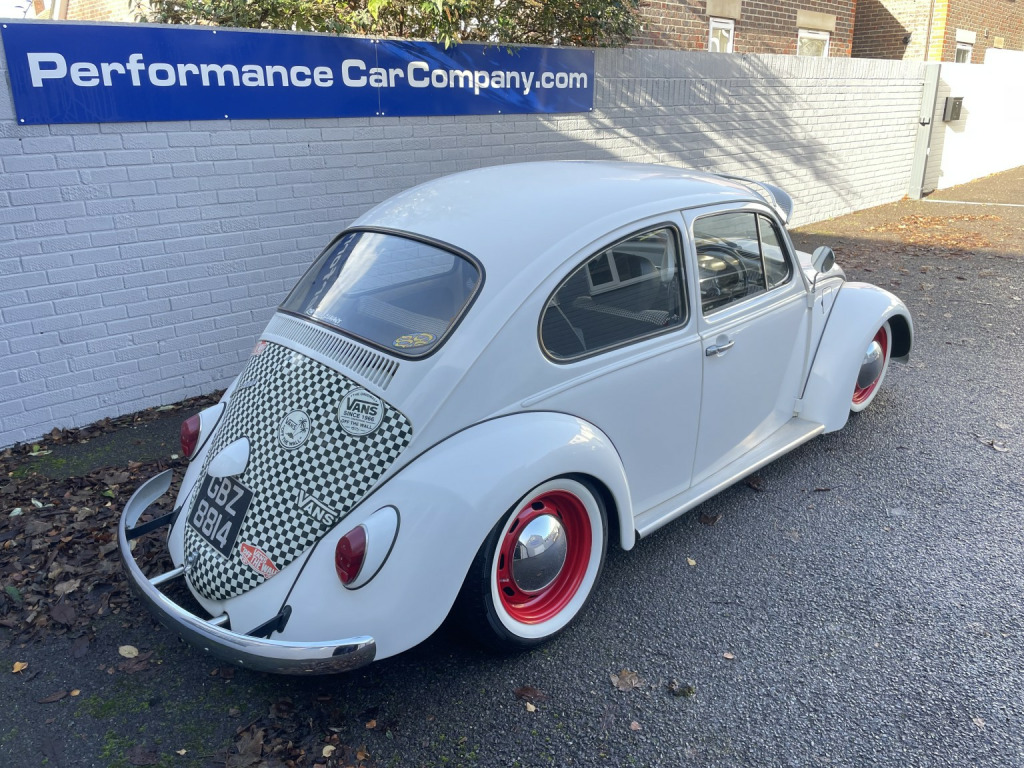 Totally Individual 1981 VW Beetle Finished in white having covered 78000 miles. This car received a full Pre 1967 Make over which included 4x Wings, Bonnet, Boot, Front and Rear Valances, Front and Rear Lights, All Sprayed to Match, rewire, Front and Rear brake over haul, New Stock Steel wheels. + Tyres all round, Early bumpers and mounts, All welding repairs with fabricated panels, New Carpets, Seats re trimmed, Panels and dash, 4 inch Front beam, drop Spindles, Long Travel Ball joints, 4 x New track rod ends, Gas lowered Shox + Adjusters, Notched Rear Spring plates, turned 2 Splines with lowered Gas Shox, Stainless Running Boards, Short Shift, Hinge Mounted Door Mirrors and Roof Visor. Vans style Wrap to engine cover and vans detail to seats. Private plate included. This is a very Individual Specification eye catching Beetle that gets looks and comments where ever it goes. Starts and drives very well and is MOT exempt. We have taken this Beetle in Part exchange and driven it back 130 miles and its now for sale ready for its next enthusiast owner to enjoy. , PLEASE CALL FOR APPOINTMENT TO VIEW BEFORE TRAVELLING - MANY THANKS , , For our current Stocklist and Testimonials Please visit our website www.performancecarcompany.com, , We have the current available stock so please check out our website www.performancecarcompany.com or give us a call for more information :, , 2016 16 BMW 730d Sport Xdrive 69000 miles, 2012 61 Subaru Impreza WRX STi CS400 14000 miles, 2020 69 BMW Z4 sDrive 30i M Sport 43000 miles, 2006 55 Smart Roadster Coupe RCR 27000 miles, 2000 X Porsche Boxster S 61000 miles, 2014 14 Mercedes SLK55 AMG 42000 miles, 2017 17 Mercedes SLC 200 AMG LINE 31000 miles, 2011 61 Mercedes E350 CGI Convertible 56000 miles, 1981 VW Beetle 78000 miles.