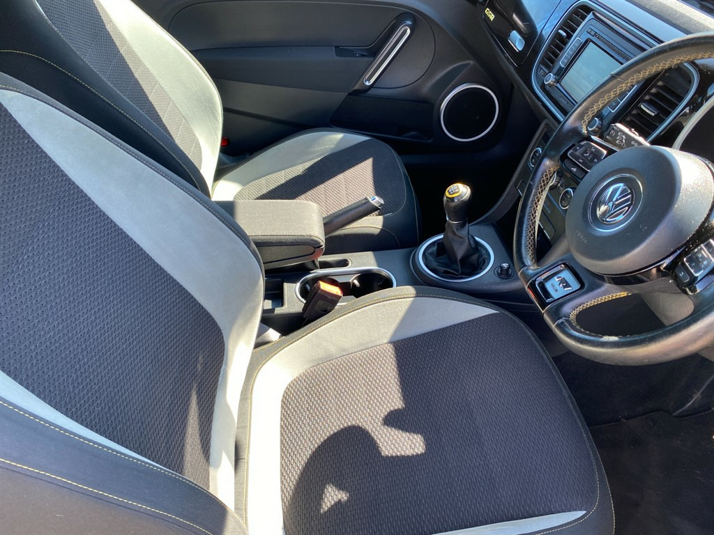 2014 VW Beetle 2.0 TSi GSR in bright yellow. An absolutely stunning example of this Limited Edition Beetle. This is an incredibly rare opportunity to own a piece of motoring history. The car is in stunning condition and drives as good as it looks too. Under the hood, the Beetle is powered by a robust 2.0L engine, delivering an impressive 207 BHP. This powerful performance is complemented by a manual transmission, giving you full control and an engaging driving experience. Huge spec including Bluetooth Hands Free, Bluetooth Audio Streaming, DAB Radio, Cruise Control, Dual Zone Climate Control, Front & Rear Parking Sensors, A/C, Alloy Wheels, Fender Sound System etc. Don't miss your chance to own this fabulous Volkswagen Beetle. Contact Coopers Car Sales at 02920885149 today to arrange a viewing and experience all these fantastic features for yourself! 12v Socket,Adjustable Steering Wheel,Air Conditioning,Alarm,Alloy Wheels,Anti Lock Brakes,Auto On Headlights,Aux Input,Bluetooth Telephone Hands Free,Bluetooth Audio Streaming,CD Radio,Central Locking,Climate Control,Cloth Upholstery,Cruise Control,Cupholders,DAB Radio,Driver Airbag,Dual Zone Climate Control,Electric & Heated Door Mirrors,Electric Windows,Front Fog Lights,Front Parking Sensor,Fuel Computer,Height Adjustable Drivers Seat,Immobiliser,ISOFIX,Heated Seats,Multiple Airbags,Passenger Airbag,Power Assisted Steering,Remote Central Locking,Rear Parking Sensor,Split Folding Rear Seats,Traction Control,Trip Computer,Tyre Pressure Monitor,USB
