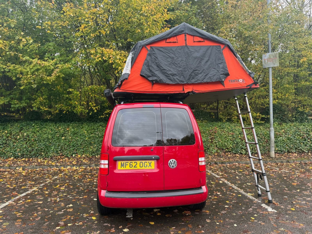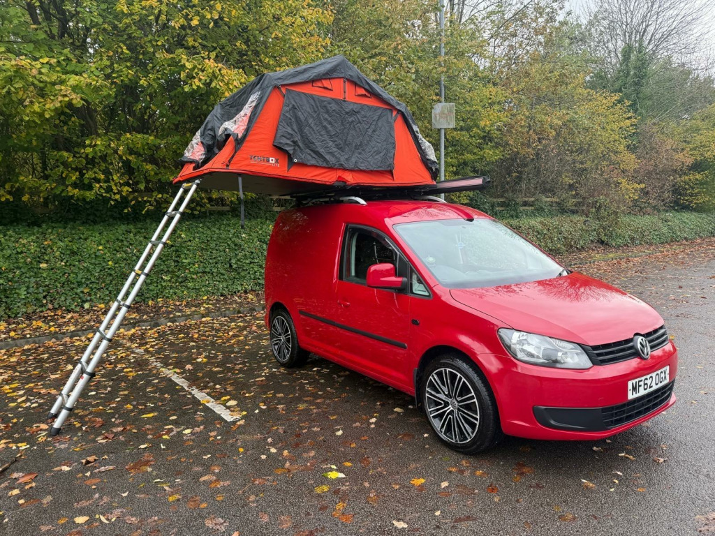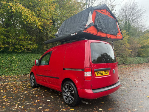 ⸻2012 Volkswagen Caddy 1.6 TDI C20 Trendline L1 H1 4dr – Camper ConversionMileage: 105,000 milesEngine: 1.6 TDI Diesel (101 BHP)MOT: 10 months remainingService History: Full historyCambelt & Water Pump: Recently replaced⸻Key Features: • ✅ Professionally converted camper • ✅ Sleeps up to 4 people (2 in van bed, 2 in XL TentBox) • ✅ 18” alloy wheels • ✅ GTD seats • ✅ GTD steering wheel • ✅ Sat Nav system • ✅ CD/Radio stereo • ✅ Electric windows • ✅ Electric mirrors • ✅ USB charging & connection • ✅ Leisure battery • ✅ Fully colour coded exterior • ✅ Rear seats/couch slide out into a bed⸻Performance & Efficiency: • 1.6L diesel engine producing 101 BHP • Excellent fuel economy — approx. 50 MPG • Low CO₂ emissions⸻Condition:This van is in fantastic condition for its age, having been well looked after and loved.It runs perfectly, drives smoothly, and is ready for your next adventure.Based in Wilmslow 5 minutes from Manchester Air port Part exchange welcome. 12V Socket in Dashboard, 15in Steel Wheels, Anti-Lock Brake System (ABS), Body Coloured Bumpers and Wing Mirrors, Carpet Flooring in Cab, Cruise Control, Dashboard with Tray Cover, Daytime Running Lights, Deadlocks, Digital Clock, Drivers Airbag, Electric Pack, Electronic Differential Lock (EDL), Electronic Stabilisation Programme (ESP) with Engine Drag Torque Control (MSR), Four Drinks Holders, Full Height Bulkhead - Solid Lower/Plastic Upper Mesh, Full Size Steel Spare Wheel, Glazed Asymmetric Rear Wing Doors, Head Restraints - Front, Heated Rear Window, Height Adjustment for Front Seats, Parking Sensors - Rear, Passenger - Side Sliding Door, Radio RCD310, Rake and Reach Adjustable Steering Column, Rear Wash/Wipe, Remote Central Locking, Servotronic Speed-Related Power-Assisted Steering, Six Load - Lashing Rings, Storage Compartment in Centre Console, Storage Compartment under Front Seats, Sun Visor with Vanity Mirror, Thatcham Category 2 Immobiliser, Third Brake Light, Traction Control System (TCS), Upholstery - Place Cloth, GTD interior. Full service history