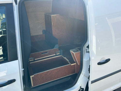 Volkswagen Caddy 2.0 TDI C20 Startline finished in White (Manual), 86900 miles, 1 Lease Company Owner, Service History and recent Timing belt & Waterpump, 2.0 Tdi 102ps, Euro 6, Side loading, Bluetooth connection, PAS, Service indicator, Trip computer, Radio/CD, Electric door mirrors, Heated door mirrors, Front electric windows, Solid Paint, ABS, Drivers airbag, ESP, Remote central locking, Cloth seat trim, Ply Lined, Bulkhead