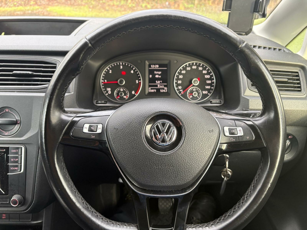 This 2018 Volkswagen Caddy presents an exceptional opportunity with its remarkably low mileage of just 55,000 miles for its age. This practical SWB Euro 6 compliant 2.0 TDI C20 BlueMotion Tech Startline model is a 5 door vehicle, featuring a reliable 2.0 litre diesel engine. It comes with a 6 month warranty for your peace of mind, and a full 12 months MOT will be provided upon purchase, ensuring its roadworthiness.The Volkswagen Caddy Startline is designed for efficiency and economy, boasting an impressive fuel economy of 60 miles per gallon and low CO2 emissions. These figures indicate that this Caddy is more economical to run than many similar vehicles. Furthermore, its low insurance group rating means that running costs are kept to a minimum, making it an attractive choice for a wide range of drivers.IN CANDY WHITE WITH BLACK AND GREY INTERIOR, 18'' ALLOY WHEELS, REMOTE CENTRAL LOCKING WITH 2 KEYS, PLY LINED, SOLID BULKHEAD, REAR TOWBAR, ROOF BARS, MULTIFUNCTION STEERING WHEEL, ONLY 55,000 MILES, PRIVATELY OWNED - EXCELLENT CONDITION THROUGHOUT - LOW RATE FINANCE AVAILABLE AT ONLY 8.9% APR - FULL FINANCE EXAMPLES AVAILABLE ON REQUEST v socket, 15in steel wheels, abs - anti-lock braking system, automatic hazard light activation under heavy braking, automatic post-collision braking system, bas - brake assist system, black door mirrors and door handles, black wheel centre caps, bluemotion technology exterior badge, bumpers - front and rear - black, composition colour dab plus radio, dashboard - dimmable illumination, differential lock - electronic, digital clock, door mirrors - electrically adjustable and heated, driver alert system includes drowsiness detection, drivers and passenger front and curtain airbags, ebd - electronic brakeforce distribution, esp - electronic stability programme, electric seatbelt tensioners, electric windows - front, four drinks holders and storage compartment in centre console, front assist including city emergency braking without adaptive cruise control, full height bulkhead - solid lower and plastic mesh upper, full size steel spare wheel, glovebox - illuminated - lockable, halogen main headlights with range control and daytime running lights, head restraints - height adjustable, heat insulating windscreen, heated rear window and wash-wipe, hill hold assist, led interior light in headliner, load area lining - hardboard roof trim and painted half-height side panels, load lashing rings x6, msr - engine drag torque control, manually controlled heating system with dust and pollen filter and air recirculation, multi-function display plus, power assisted steering - servotronic speed sensitive, rear view mirror with anti-dazzle function, rear wing doors with window apertures asymmetrically split, remote central locking with deadlocks-interior locking - two remote keys, roof rail preparation, rubber floor covering in cab, seat - passenger reach and rake adjustment, seatbelt warning when not engaged, seats - drivers height - reach and rake adjustment, single near-side sliding door, steering column - reach and rake adjustable, steering wheel - multifunction leather trimmed, tcs - traction control system, thatcham category 2 immobiliser, tool kit and jack, two door activated interior lights, tyres - low rolling resistance, windscreen wiper with variable intermittent delay and wash-wipe system
