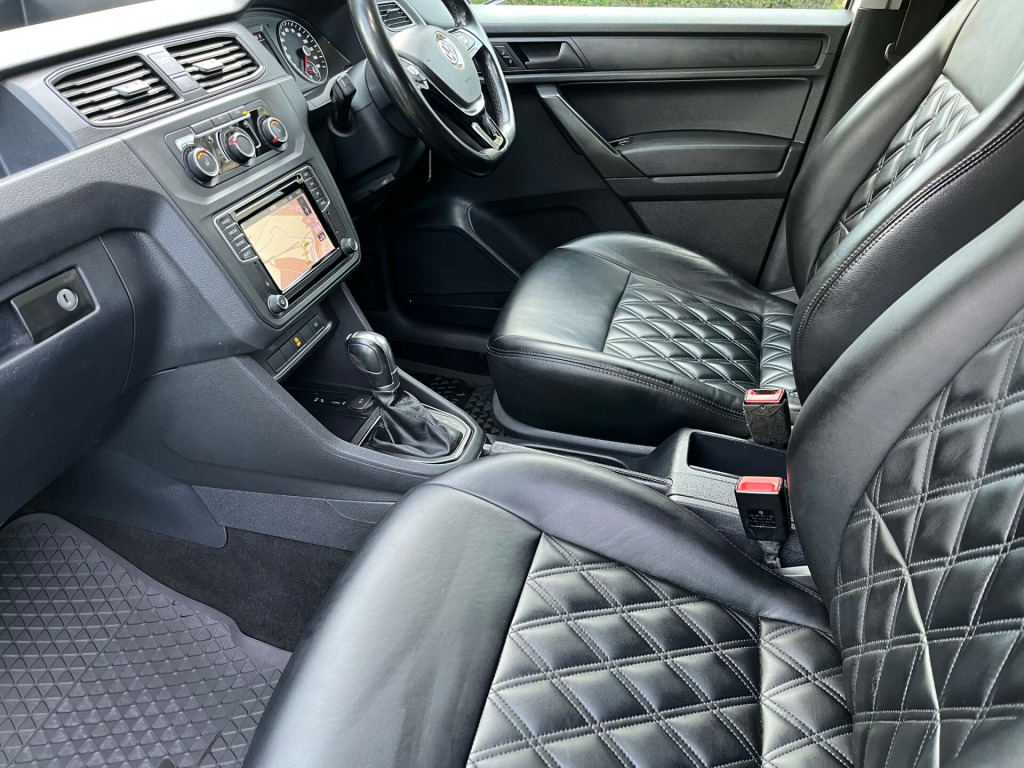This is a really nice local vehicle in very nice condition indeed. It has lots of nice extras including full Quilted black leather heated seats, heated front screen, DAB, Satellite Navigation, Apple car play, alloy wheels, LED interior lighting, Auto Headlights, height adjustable driver and passenger seats, and much more,. It drives very well and is less stressful to drive with the super smooth DSG gearbox. It has never been used for any heavy work and is in good used car condition with no rips or tears or any odor's. It has a full service history with our local VW dealer and has a long MOT with no advisories, it has in fact never had an advisory. This very nice van comes with a full book pack, information DVD and 2 remote keys. If you are interested in seeing this cracking Volkswagen Caddy Highline please email or with preference call Mark on 07850720655 to make an appointment to view it. Please make sure you do call for an appointment as I no longer have my vehicles show. Thanks for looking please remember this vehicle is plus VAT r conditioning, bluetooth connection, full leather, rain-sensing wipers, satellite navigation, usb/ipod interface, ply-lined, side load door, adjustable steering column, cruise control, multi-function steering wheel, power steering, reverse parking aid, steering wheel rake adjustment, steering wheel reach adjustment, traction control, trip computer, abs, multiple airbags, quick-clear screen, service indicator, tyre pressure monitor, anti-theft system, immobiliser, locking wheel nuts, remote alarm, remote central locking, automatic electric windows, windscreen heating, mobile phone app interface, oem sound system, steering wheel audio controls, front head restraints, heated seats, height adjustable drivers seat, alloy wheels, auto lighting, body coloured bumpers, colour coded body, front fog lights, metallic paintwork, rear spoiler, apple car play