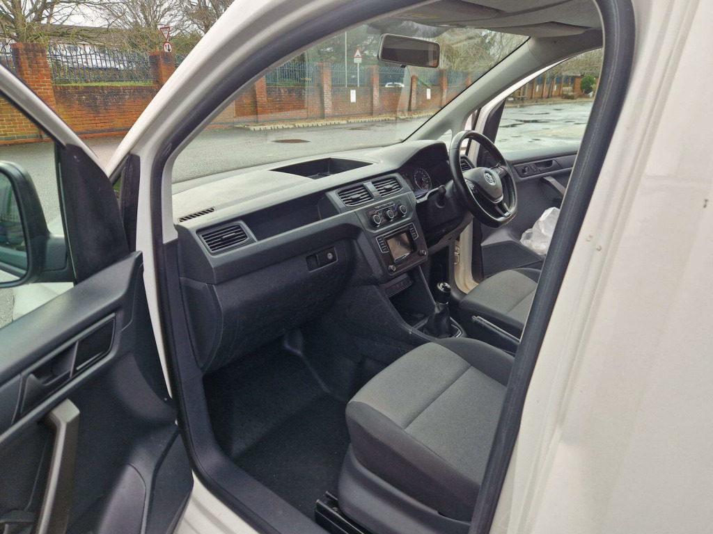 THE CAR HAS GOT: AIR CON,AIR BAG ,BLUETOOTH,DAB, DOOR-DOUBLE REAR,DOOR-NEARSIDE SLIDING DOOR,ELECTRIC MIRRORS,ELECTRIC WINDOWS, PARKING SENSORS- REAR PLY LINNING,This 2019 Volkswagen Caddy 2.0 TDI C20 Startline SWB Euro 6 (s/s) 5dr offers a compelling blend of practicality and efficiency. As a Startline trim model, it features a robust 2.0 litre diesel engine delivering 101 bhp, ensuring capable performance for a variety of tasks. This Euro 6 compliant vehicle is equipped with the Composition Colour DAB Plus Radio, which includes Bluetooth connectivity for seamless audio streaming and handsfree calls.The Volkswagen Caddy stands out with its impressive fuel economy, achieving up to 50 miles per gallon, which is a significant advantage for running costs. Furthermore, its low CO2 emissions contribute to a more environmentally conscious drive. This model also benefits from a low insurance group, making it an economical choice for many drivers. These highlights collectively demonstrate the Caddy's superior value and efficiency compared to other vehicles in its class. v socket, 15in steel wheels, 2 led spot lights in load compartment, abs - anti-lock braking system, automatic hazard light activation under heavy braking, automatic post-collision braking system, bas - brake assist system, black door mirrors and door handles, black wheel centre caps, bluemotion technology exterior badge, bumpers - front and rear - black, composition colour dab plus radio, dashboard - dimmable illumination, differential lock - electronic, digital clock, door mirrors - electrically adjustable and heated, driver alert system includes drowsiness detection, drivers and passenger front and curtain airbags, ebd - electronic brakeforce distribution, esp - electronic stability programme, electric seatbelt tensioners, electric windows - front, four drinks holders and storage compartment in centre console, front assist including city emergency braking without adaptive cruise control, full height bulkhead - solid lower and plastic mesh upper, full size steel spare wheel, glovebox - illuminated - lockable, halogen main headlights with range control and daytime running lights, head restraints - height adjustable, heat insulating windscreen, hill hold assist, led interior light in headliner, load area lining - hardboard roof trim and painted half-height side panels, load lashing rings x6, msr - engine drag torque control, manually controlled heating system with dust and pollen filter and air recirculation, multi-function display plus, power assisted steering - servotronic speed sensitive, rear view mirror with anti-dazzle function, rear wing doors with window apertures asymmetrically split, remote central locking with deadlocks-interior locking - two remote keys, roof rail preparation, rubber floor covering in cab, seat - passenger reach and rake adjustment, seatbelt warning when not engaged, seats - drivers height - reach and rake adjustment, single near-side sliding door, steering column - reach and rake adjustable, steering wheel - multifunction leather trimmed, tcs - traction control system, thatcham category 2 immobiliser, tool kit and jack, two door activated interior lights, tyres - low rolling resistance, windscreen wiper with variable intermittent delay and wash-wipe system