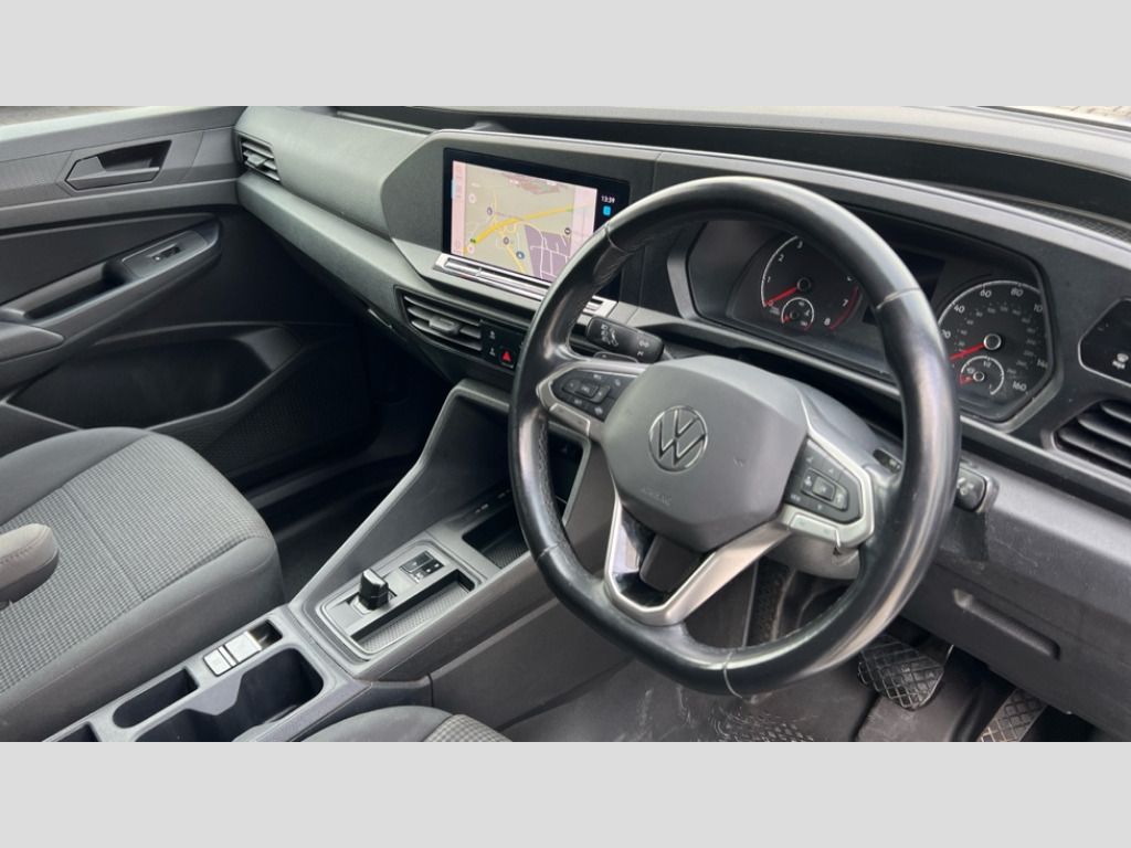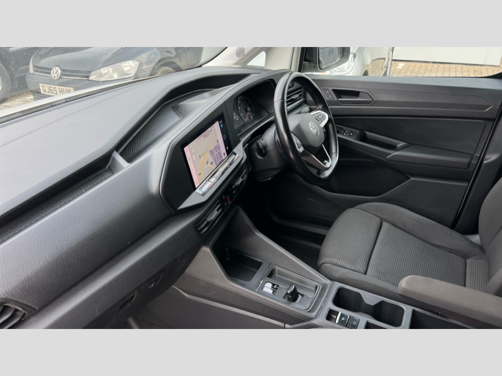 Volkswagen Caddy 1.5 TSI 114PS Commerce Pro Van DSG Driver alert system includes drowsiness detection, Emergency call control unit with eCall, Multi-function Display, Seatbelt warning indicator, Service indicator, Start-stop system with regenerative braking, We Connect Plus Preparation, Automatic hazard light activation under emergency braking, Body coloured bumpers, Electric front windows, Heated windscreen, LED rear combination lights, LED rear tail lights, Roof rail preparation, Windscreen wiper with variable intermittent delay and wash-wipe system, Armrests for both front seats, Electronically controlled heating system, ergoComfort seats for driver, Interior light in headlining, Lockable glove compartment door with light, Manual adjustable lumbar support for passenger seats, Manual height adjustment for front seats and seat cushion inclination and depth adjustment on drivers seat, Multi function leather steering wheel, Power-adjustable lumbar support for drivers seat, Reach and rake adjustable steering column, Six lashing points for securing loads, Steering wheel paddle shift, Storage compartments under driver and front passenger seats, Sun visors with mirror, airbag label on front passenger sun visor, Sun visors, with ticket pocket on driver side, Vanity mirrors, 3-point seat belts in front, with pretensioner and height adjustment, Driver and front passenger airbag with front passenger airbag deactivation, Anti-theft alarm system, interior monitoring, backup horn, and towing protection, Electronic engine immobiliser, Remote central locking with deadlocks, interior locking, Anti locking braking system (ABS), Automatic post collision braking system, Electric parking brake with auto hold function, Electronic brake force distribution (EBD), Electronic differential lock (EDL), Electronic stabilisation programme (ESP), Emergency brake assist, Engine drag torque control (MSR), Hill hold assist, Traction control system (TCS), Decorative beige birch vein inserts, Wheel bolts with anti-theft protection (unlockable)