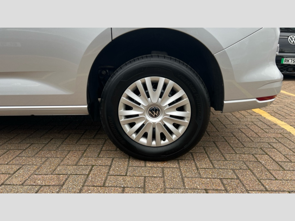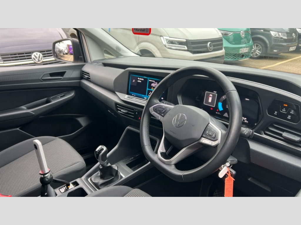Volkswagen Caddy 2.0 TDI 102PS Commerce Plus Van [Tech Pack] Bluetooth - Mobile phone interface, Digital multi-function cockpit display, Driver alert system, eCall emergency system, Lane assist, Seatbelt warning indicator, Service indicator, Start-stop system with regenerative braking, 2 USB interfaces type C in dashboard, DAB Radio, Automatic hazard light activation under emergency braking, Body coloured bumpers, Electric front windows, Heat insulating windscreen, Rear view mirror with anti dazzle function, Roof rail preparation, Windscreen wiper with variable intermittent delay and wash-wipe system, Electronically controlled heating system, ergoComfort seats for driver, Interior light in headliner incorporting LED technology, Lockable glove compartment door with light, Manual heating and ventilation system, Manual height adjustment for front seats and seat cushion inclination and depth adjustment on drivers seat, Multi function leather steering wheel, Power-adjustable lumbar support for drivers seat, Reach and rake adjustable steering column, Six lashing points for securing loads, Storage compartments under driver and front passenger seats, Sun visors with mirror, airbag label on front passenger sun visor, 3-point seat belts in front, with pretensioner and height adjustment, Driver and front passenger airbag with front passenger airbag deactivation, Tyre pressure monitoring system, Anti-theft alarm system, interior monitoring, backup horn, and towing protection, Electronic engine immobiliser, Remote central locking with deadlocks, interior locking, Anti locking braking system (ABS), Automatic post collision braking system, Autonomous Emergency Braking Front Assist with Pedestrian Monitoring, Diesel particulate filter, Electric parking brake with auto hold function, Electronic brake force distribution (EBD), Electronic differential lock (EDL), Electronic stabilisation programme (ESP), Engine drag torque control (MSR), Hill hold assist, Traction control system (TCS), Decorative beige birch vein inserts, Full size wheel trims