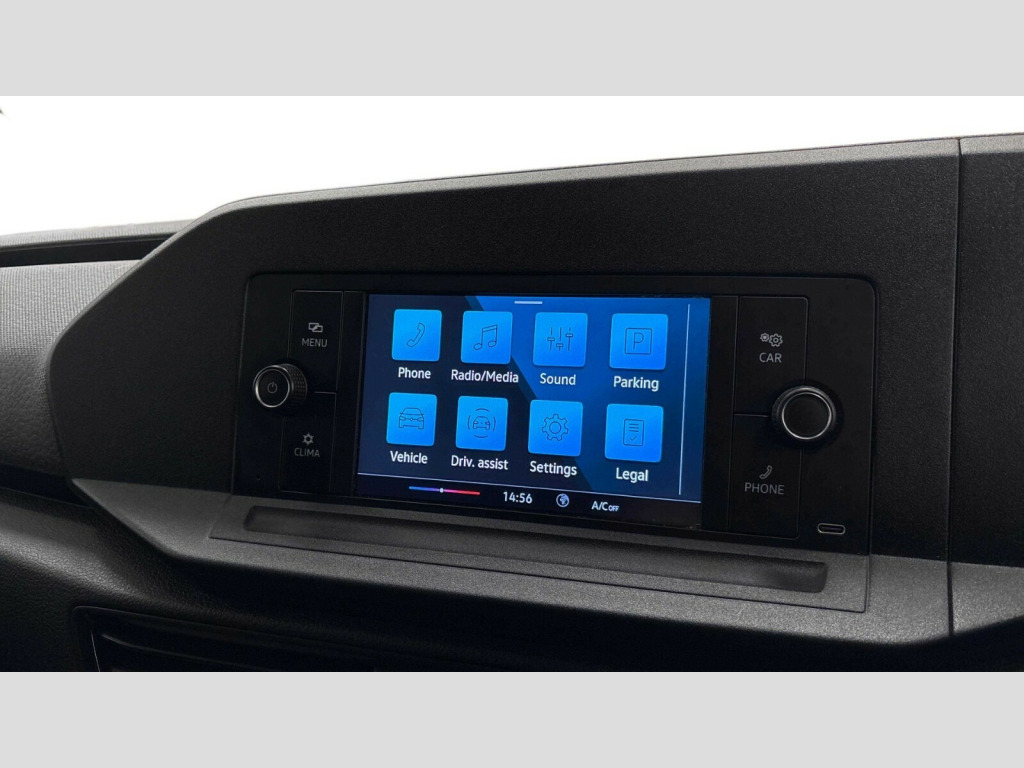 Volkswagen Caddy 2.0 TDI 102PS Commerce Van Driver alert system includes drowsiness detection, Emergency call control unit with eCall, Multi-function Display, Seatbelt warning indicator, Service indicator, Start-stop system with regenerative braking, DAB Radio, We Connect Basic Preparation, Automatic hazard light activation under emergency braking, Black front and rear bumpers, Electric front windows, Roof rail preparation, Windscreen wiper with variable intermittent delay and wash-wipe system, Dimming breakaway interior rear-view mirror, Electronically controlled heating system, Interior light in headlining, Lockable glove compartment door with light, Manual height adjustment for front seats, Reach and rake adjustable steering column, Six lashing points for securing loads, 3-point seat belts in front, with pretensioner and height adjustment, Driver and front passenger airbag with front passenger airbag deactivation, Electronic engine immobiliser, Remote central locking with deadlocks, interior locking, Anti locking braking system (ABS), Automatic post collision braking system, Autonomous Emergency Braking Front Assist with Pedestrian Monitoring, Electric parking brake with auto hold function, Electronic brake force distribution (EBD), Electronic differential lock (EDL), Electronic stabilisation programme (ESP), Emergency brake assist, Engine drag torque control (MSR), Hill hold assist, Traction control system (TCS), Decorative beige birch vein inserts