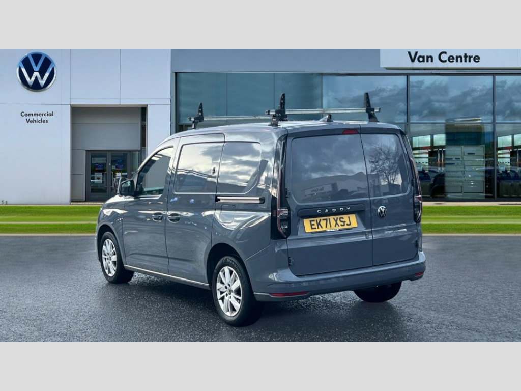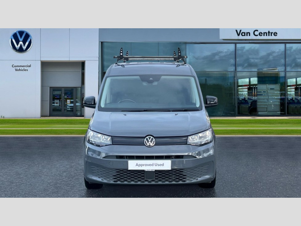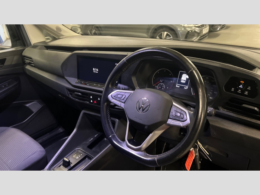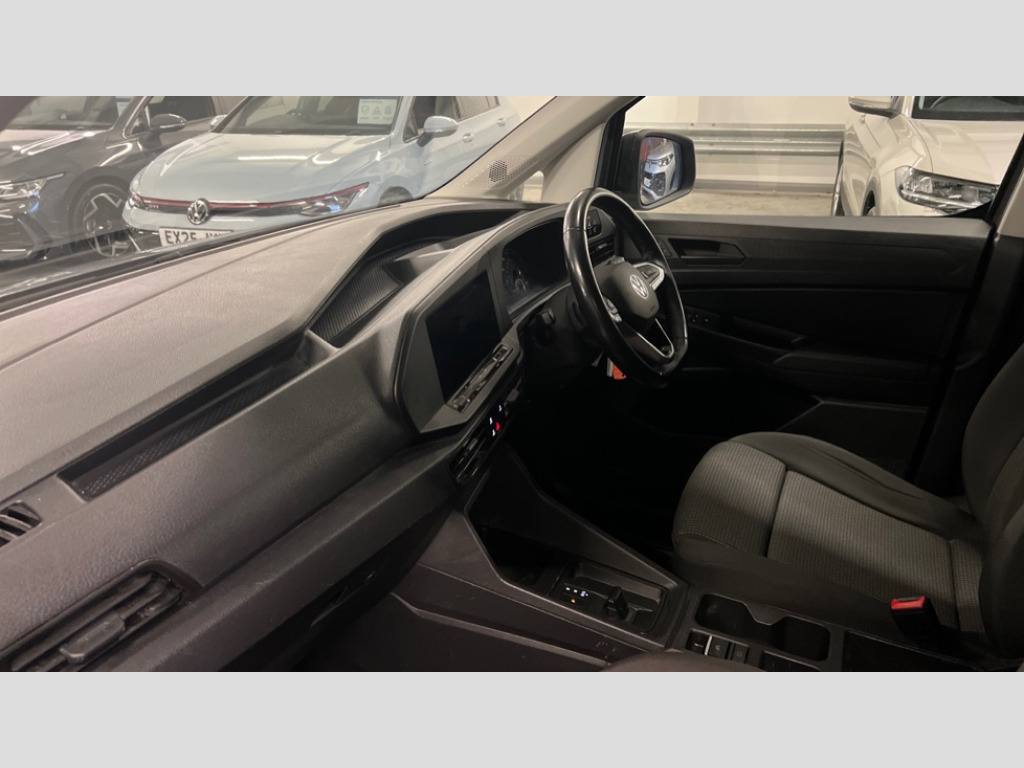 Volkswagen Caddy 2.0 TDI 122PS Commerce Pro Van DSG Driver alert system includes drowsiness detection, Emergency call control unit with eCall, Multi-function Display, Seatbelt warning indicator, Service indicator, Start-stop system with regenerative braking, We Connect Plus Preparation, Automatic hazard light activation under emergency braking, Body coloured bumpers, Electric front windows, Heated windscreen, LED rear combination lights, LED rear tail lights, Roof rail preparation, Windscreen wiper with variable intermittent delay and wash-wipe system, Armrests for both front seats, Electronically controlled heating system, ergoComfort seats for driver, Interior light in headlining, Lockable glove compartment door with light, Manual adjustable lumbar support for passenger seats, Manual height adjustment for front seats and seat cushion inclination and depth adjustment on drivers seat, Multi function leather steering wheel, Power-adjustable lumbar support for drivers seat, Reach and rake adjustable steering column, Six lashing points for securing loads, Steering wheel paddle shift, Storage compartments under driver and front passenger seats, Sun visors with mirror, airbag label on front passenger sun visor, Sun visors, with ticket pocket on driver side, Vanity mirrors, 3-point seat belts in front, with pretensioner and height adjustment, Driver and front passenger airbag with front passenger airbag deactivation, Anti-theft alarm system, interior monitoring, backup horn, and towing protection, Electronic engine immobiliser, Remote central locking with deadlocks, interior locking, Anti locking braking system (ABS), Automatic post collision braking system, Electric parking brake with auto hold function, Electronic brake force distribution (EBD), Electronic differential lock (EDL), Electronic stabilisation programme (ESP), Emergency brake assist, Engine drag torque control (MSR), Hill hold assist, Traction control system (TCS), Decorative beige birch vein inserts, Wheel bolts with anti-theft protection (unlockable)