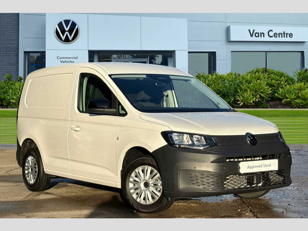Volkswagen Caddy 2.0 TDI 102PS Commerce Van [Business/Tech Pack] Solid paint, App-Connect - Wireless for Apple CarPlay, Assistant pack - Caddy, Solid - Candy white, Electric front windows, Heat insulating windscreen, Windscreen wiper with variable intermittent delay and wash-wipe system, Black front and rear bumpers, Roof rail preparation, Automatic hazard light activation under emergency braking, Anti locking braking system (ABS), Automatic post collision braking system, Autonomous Emergency Braking Front Assist with Pedestrian Monitoring, Brake assist, Electric parking brake with auto hold function, Electronic brake force distribution (EBD), Electronic stabilisation programme (ESP), Engine drag torque control (MSR), Hill hold assist, Traction control system (TCS), Intelligent Speed Assist, Lane assist, 3-point seat belts in front, with pretensioner and height adjustment, Driver and front passenger airbag with front passenger airbag deactivation, Tyre pressure monitoring system, Bluetooth - Mobile phone interface, 2 USB interfaces type C in dashboard, DAB Radio, We Connect Basic Preparation, Car2X technology, Driver alert system, Start-stop system with regenerative braking, eCall emergency system, Seatbelt warning indicator, Service indicator, Diesel particulate filter, Decorative beige birch vein inserts, Manual height adjustment for front seats, Electronically controlled heating system, Manual heating and ventilation system, Dimming breakaway interior rear view mirror, Lockable glove compartment door with light, Reach and rake adjustable steering column, Interior light in headliner incorporting LED technology, Electronic differential lock (EDL), Six lashing points for securing loads, Anti-theft alarm system, interior monitoring, backup horn, and towing protection, Electronic engine immobiliser, Remote central locking with deadlocks, interior locking, Full size wheel trims