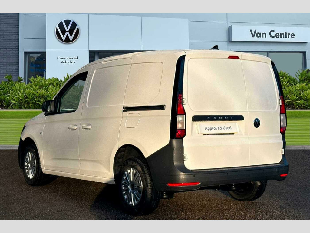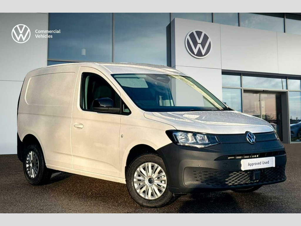 Volkswagen Caddy 2.0 TDI 102PS Commerce Van [Business/Tech Pack] Solid paint, App-Connect - Wireless for Apple CarPlay, Assistant pack - Caddy, Solid - Candy white, Electric front windows, Heat insulating windscreen, Windscreen wiper with variable intermittent delay and wash-wipe system, Black front and rear bumpers, Roof rail preparation, Automatic hazard light activation under emergency braking, Anti locking braking system (ABS), Automatic post collision braking system, Autonomous Emergency Braking Front Assist with Pedestrian Monitoring, Brake assist, Electric parking brake with auto hold function, Electronic brake force distribution (EBD), Electronic stabilisation programme (ESP), Engine drag torque control (MSR), Hill hold assist, Traction control system (TCS), Intelligent Speed Assist, Lane assist, 3-point seat belts in front, with pretensioner and height adjustment, Driver and front passenger airbag with front passenger airbag deactivation, Tyre pressure monitoring system, Bluetooth - Mobile phone interface, 2 USB interfaces type C in dashboard, DAB Radio, We Connect Basic Preparation, Car2X technology, Driver alert system, Start-stop system with regenerative braking, eCall emergency system, Seatbelt warning indicator, Service indicator, Diesel particulate filter, Decorative beige birch vein inserts, Manual height adjustment for front seats, Electronically controlled heating system, Manual heating and ventilation system, Dimming breakaway interior rear view mirror, Lockable glove compartment door with light, Reach and rake adjustable steering column, Interior light in headliner incorporting LED technology, Electronic differential lock (EDL), Six lashing points for securing loads, Anti-theft alarm system, interior monitoring, backup horn, and towing protection, Electronic engine immobiliser, Remote central locking with deadlocks, interior locking, Full size wheel trims