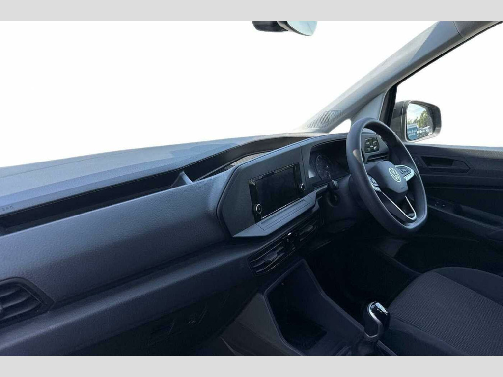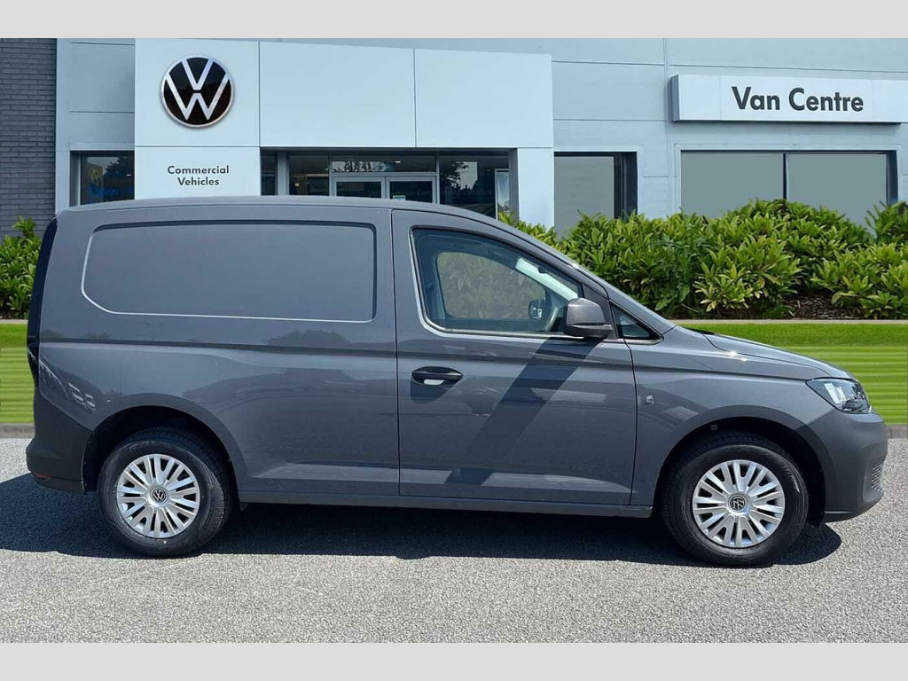 Volkswagen Caddy 2.0 TDI 75PS Commerce Van [Business/Tech Pack] Pure Grey Solid Paint, Air Conditioning, App Connect, Steel Spare Wheel, Digital radio reception, Anti-theft alarm system, interior monitoring, backup horn, and towing protection, Driver and front passenger airbags with front passenger airbag deactivation, Tyre pressure loss indicator, Side and curtain airbags for driver and front passenger, Lane keeping system, Multi-function steering wheel, Electric front windows, Windscreen wiper with variable intermittent delay and wash-wipe system, Roof rail preparation, Automatic hazard light activation under emergency braking, LED rear combination lights, LED rear tail lights, Anti locking braking system (ABS), Automatic post collision braking system, Autonomous Emergency Braking Front Assist with Pedestrian Monitoring, Electric parking brake with Auto Hold function, Electronic brake force distribution (EBD), Electronic stabilisation programme (ESP), Emergency brake assist, Engine drag torque control (MSR), Hill hold assist, Traction control system (TCS), Black painted exterior mirror housings, body-colored door handles and Silver sliding door rail, 3-point seat belts in front, with pretensioner and height adjustment, Driver and front passenger airbag with front passenger airbag deactivation, Emergency call control unit with eCall, DAB Radio, We Connect Plus Preparation, Driver alert system includes drowsiness detection, Start-stop system with regenerative braking, Multi-function Display, Seatbelt warning indicator, Service indicator, Decorative beige birch vein inserts, Manual adjustable lumbar support for passenger seats, Manual height adjustment for front seats and seat cushion inclination and depth adjustment on drivers seat, Dimming breakaway interior rear-view mirror, Lockable glove compartment door with light, Multi function leather steering wheel, Reach and rake adjustable steering column, Storage compartments under driver and front passenger seats, Sun visors with mirror, airbag label on front passenger sun visor, Sun visors, with ticket pocket on driver side, Vanity mirrors, Interior light in headlining, Electronic differential lock (EDL), Six lashing points for securing loads, Anti-theft alarm system, interior monitoring, backup horn, and towing protection, Electronic engine immobiliser, Remote central locking with deadlocks, interior locking, Wheel bolts with anti-theft protection (unlockable)