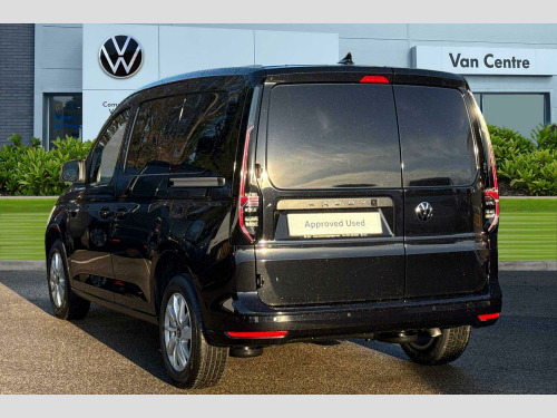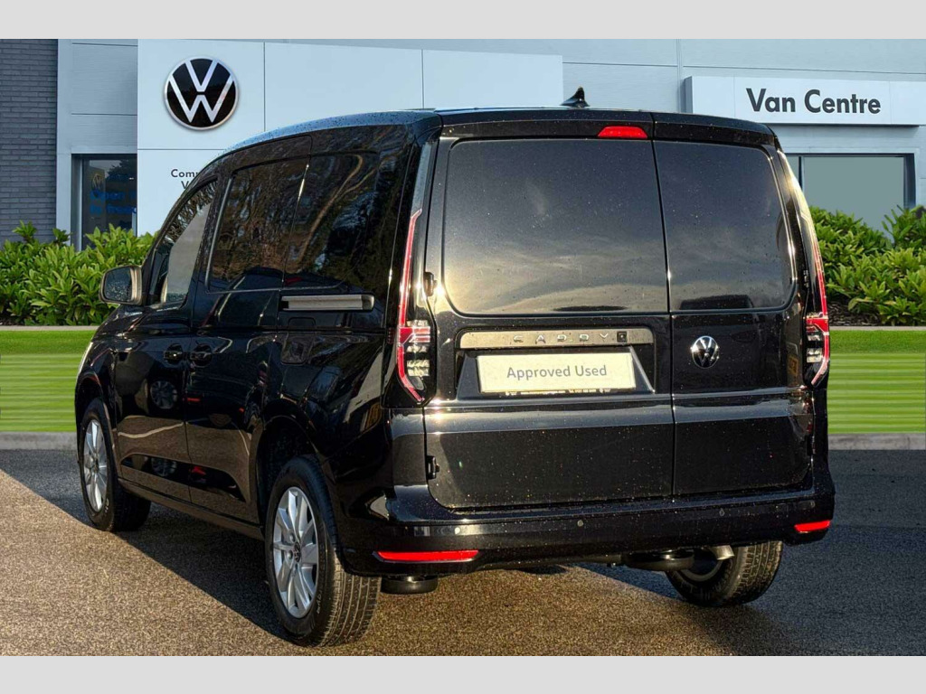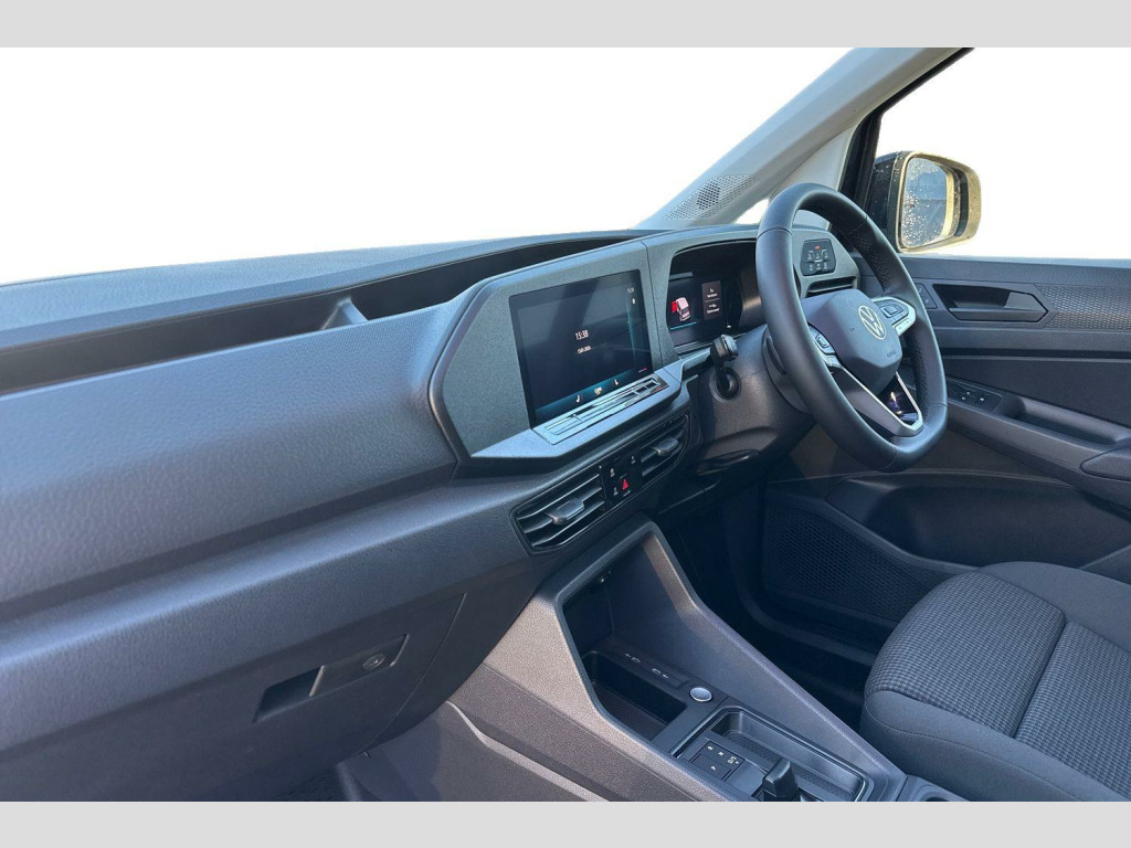 On the exterior, the Caddy is fitted with black roof rails, adding both style and practicality. A heated windscreen, variable intermittent windscreen wipers and automatic headlight control help maintain excellent visibility in changing weather conditions. Power-folding, power-adjustable and heated exterior mirrors add everyday convenience, while front and rear parking sensors and a rear-view camera make manoeuvring and reversing simple and stress-free.