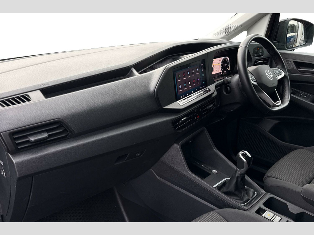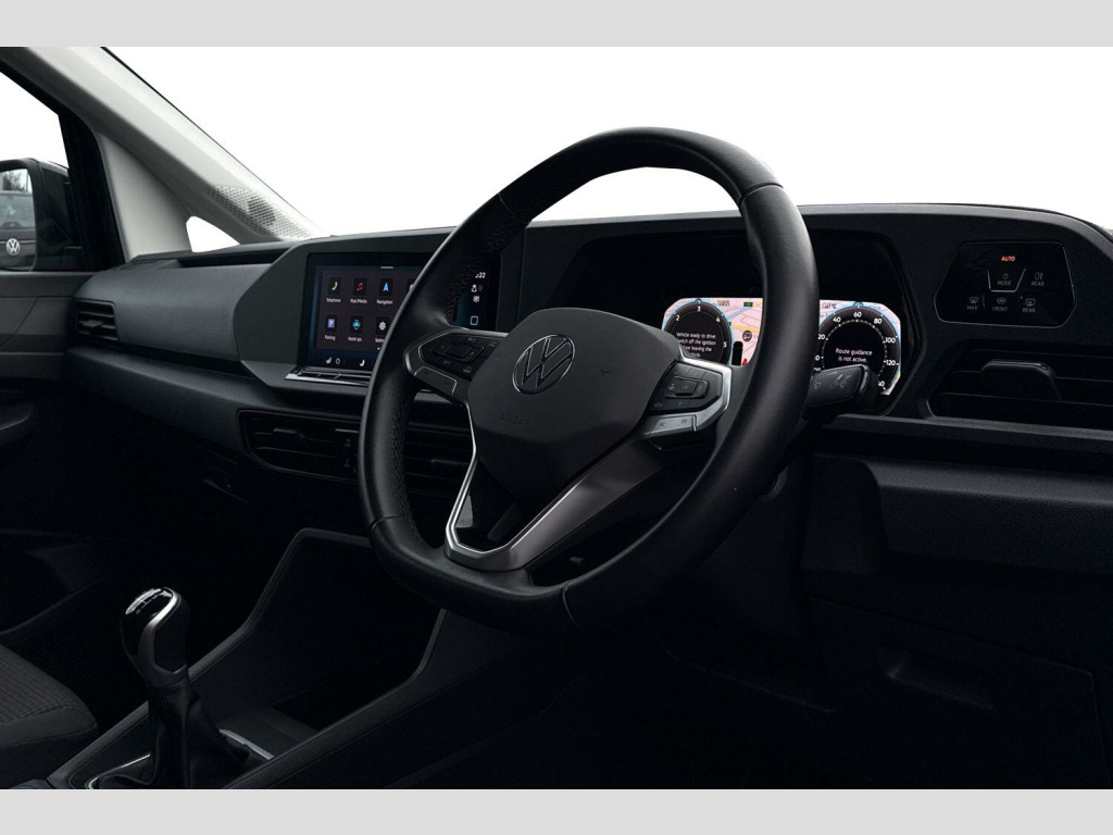Pearlescent paint-Deep Black, Electric, heated +power folding exterior mirrors, Parking sensors front + rear, Rear view camera, LED rear cambination lights, Heated front windscreen, Cruise control with speed limiter, Exterior mirrors, power-folding, power-adjustable and heated, Heated washer nozzles, Washer fluid level indicator with enlarged washer fluid reservoir, Armrests for both front seats, Leather trimmed multi-function steering wheel, Heated front seats, Manual air conditioning, Austin cloth upholstery, Rubber floor covering, Digital cockpit, Navigation system "Discover Media", 10" Colour, touch screen multimedia, Wired + wireless App Connect, Apple Car Play, Android Auto, Twin USB-C interfaces in dashboard, 2 remote control locking keys, Keyless Go, Bulkhead - without window, Rear wing doors without window apertures, Single near side sliding door, Pearl - Deep Black, Fabric - Titanium Black/Soul-Soul/Black, Assistance Package Plus, Winter Pack Plus, 16" Wien Silver alloy wheels, Steel spare wheel with original equipment tyre, incl. tool kit and jack, Electric front windows, Windscreen wiper with variable intermittent delay and wash-wipe system, Body coloured bumpers, Roof rail preparation, Automatic hazard light activation under emergency braking, LED rear combination lights, LED rear tail lights, Anti locking braking system (ABS), Automatic post collision braking system, Autonomous Emergency Braking Front Assist with Pedestrian Monitoring, Electric parking brake with auto hold function, Electronic brake force distribution (EBD), Electronic stabilisation programme (ESP), Engine drag torque control (MSR), Hill hold assist, Traction control system (TCS), Lane assist, Rear view camera, Gloss black painted exterior mirror housings, body-colored door handles and Silver sliding door rail, Rear view mirror with anti dazzle function, 3-point seat belts in front, with pretensioner and height adjustment, Driver and front passenger airbag with front passenger airbag deactivation, Keyless-Go without SAFELOCK, Tyre pressure monitoring system, Bluetooth - Mobile phone interface, 2 USB interfaces type C in dashboard, App-Connect - Wireless for Apple CarPlay, DAB Radio, Navigation system "Discover Media" with 25.4-cm (10-inch) colour touch screen incl. Streaming & Internet, 4 speakers, We Connect Plus Preparation, Driver alert system, Front and rear parking sensors, Start-stop system with regenerative braking, Digital cockpit, Digital multi-function cockpit display, eCall emergency system, Seatbelt warning indicator, Service indicator, Diesel particulate filter, Decorative beige birch vein inserts, ergoComfort seats for driver, Manual height adjustment for front seats and seat cushion inclination and depth adjustment on drivers seat, Power-adjustable lumbar support for drivers seat, Electronically controlled heating system, Manual heating and ventilation system, Lockable glove compartment door with light, Multi function leather steering wheel, Reach and rake adjustable steering column, Storage compartments under driver and front passenger seats, Sun visors with mirror, airbag label on front passenger sun visor, Interior light in headliner incorporting LED technology, Electronic differential lock (EDL), Six lashing points for securing loads, Winter pack plus - Caddy, Anti-theft alarm system, interior monitoring, backup horn, and towing protection, Electronic engine immobiliser, Remote central locking with deadlocks, interior locking, Wheel bolts with anti-theft protection (unlockable)