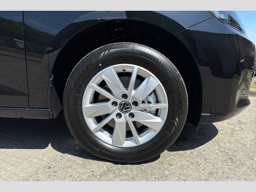 Pearlescent paint, App-Connect - Wireless for Apple CarPlay, Pearl - Deep black, 16" Wien Silver alloy wheels, Electric front windows, Heated windscreen, Windscreen wiper with variable intermittent delay and wash-wipe system, Body coloured bumpers, Roof rail preparation, Automatic hazard light activation under emergency braking, LED rear combination lights, LED rear tail lights, Anti locking braking system (ABS), Automatic post collision braking system, Electric parking brake with auto hold function, Electronic brake force distribution (EBD), Electronic stabilisation programme (ESP), Emergency brake assist, Engine drag torque control (MSR), Hill hold assist, Traction control system (TCS), Black painted exterior mirror housings, body-colored door handles and Silver sliding door rail, 3-point seat belts in front, with pretensioner and height adjustment, Driver and front passenger airbag with front passenger airbag deactivation, Emergency call control unit with eCall, DAB Radio, We Connect Plus Preparation, Driver alert system includes drowsiness detection, Start-stop system with regenerative braking, Multi-function Display, Seatbelt warning indicator, Service indicator, Decorative beige birch vein inserts, ergoComfort seats for driver, Manual height adjustment for front seats and seat cushion inclination and depth adjustment on drivers seat, Power-adjustable lumbar support for drivers seat, Electronically controlled heating system, Lockable glove compartment door with light, Multi function leather steering wheel, Reach and rake adjustable steering column, Steering wheel paddle shift, Storage compartments under driver and front passenger seats, Sun visors with mirror, airbag label on front passenger sun visor, Interior light in headlining, Electronic differential lock (EDL), Six lashing points for securing loads, Anti-theft alarm system, interior monitoring, backup horn, and towing protection, Electronic engine immobiliser, Remote central locking with deadlocks, interior locking, Wheel bolts with anti-theft protection (unlockable)