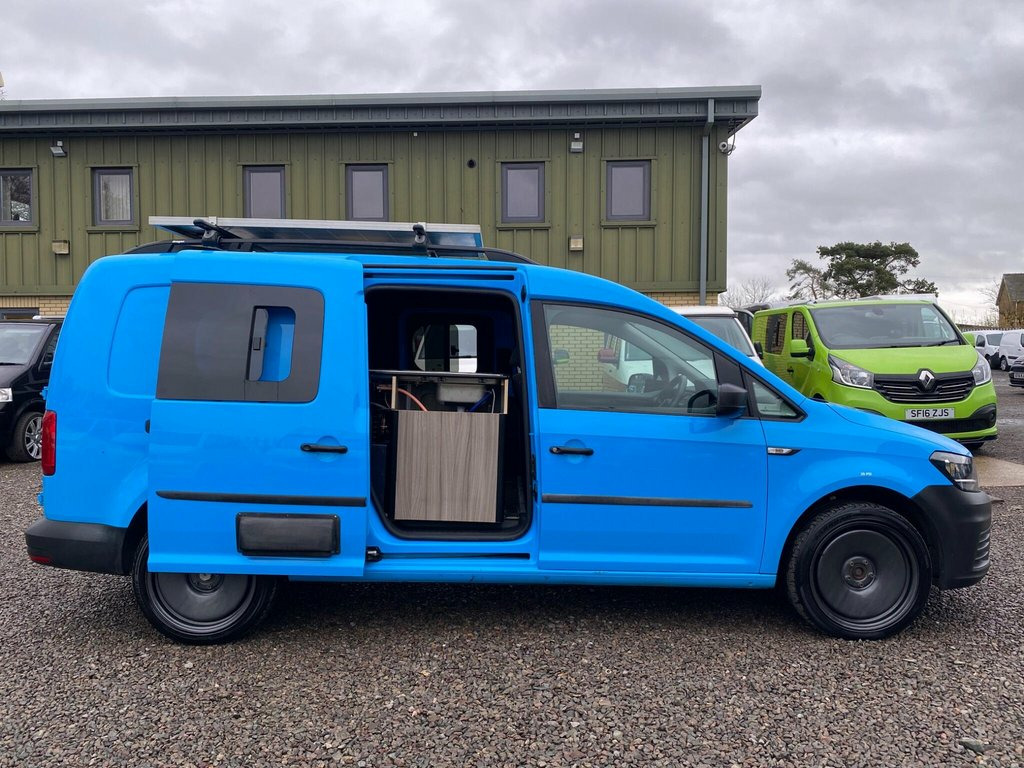 WE ARE DELIGHTED TO PRESENT THIS PROFESSINAL CONVERTED VW CADDY MAXI LONG WHEEL BASE WITH A VERY RELIABLE 2.0L DIESEL ENGINE CONVERTED WITH 2 SEAT BELTS AND A SPACIOUS ROCK & ROLL BED. THE UNIQUE PART IS THE INTERIOR, COZY SLEEPING FOR TWO, IT HAS 2 SEATS IN THE FRONT AND THE REAR INSULATED CABIN BENEFITS FROM 2 SIDE WINDOWS, KITCHEN UNIT INSTALLED WITH SINK AND 2 GAS BURNER STOVE AND FRESH AND GREY WATER BOTTLES, LARGE SOLAR PANEL MOUNTED IN THE ROOF RACK FOR THE BEST OFF GRID EXPERIENCE, LG FRIDHE AND FREEZER, EBERSPACHER DIESEL HEATER, LED LIGHTS INSTALLED WITH ALL ELECTRIC CONNECTIONS DONE MATED TO A CONTROL PANEL, LEISURE BATTERY, SIDE WINDOWS INSTALLED, 18" JBW FLAT BOY GREY STEEL ALLOY WHEELS, 1 PREVOIUS OWNERS, LAST OWNER SINCE 2023, SERVICE HISTORY WITH 7 SERVICES, RECENTLY SERVICED, CAMBELT/WATERPUMP REPLACED AT 84K, Step into the world of Podium PCL, where quality, trust, and expertise come together to create a refined vehicle-buying experience. We proudly showcase a wide selection of over 200 meticulously handpicked vehicles, including Cars, SUVs, Vans, Motorhomes, and Campervans. Each vehicle is carefully sourced by our expert purchasing team, backed by over 12 years of industry experience, and undergoes thorough checks to ensure the highest standards. All our vehicles are HPI clear and supported by the AA Dealer Promise, offering complete peace of mind with every purchase. Enjoy the added benefit of 12 months of complimentary AA breakdown cover, along w