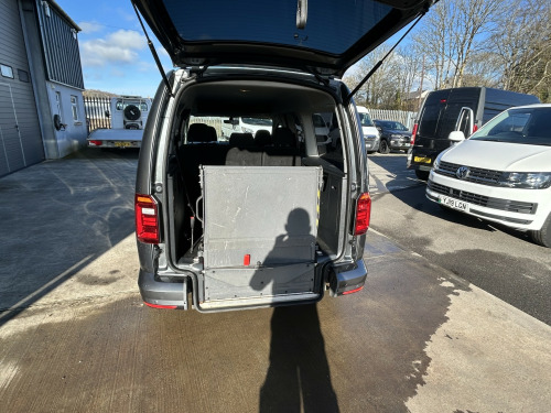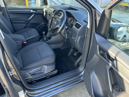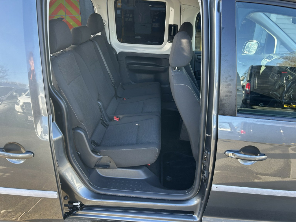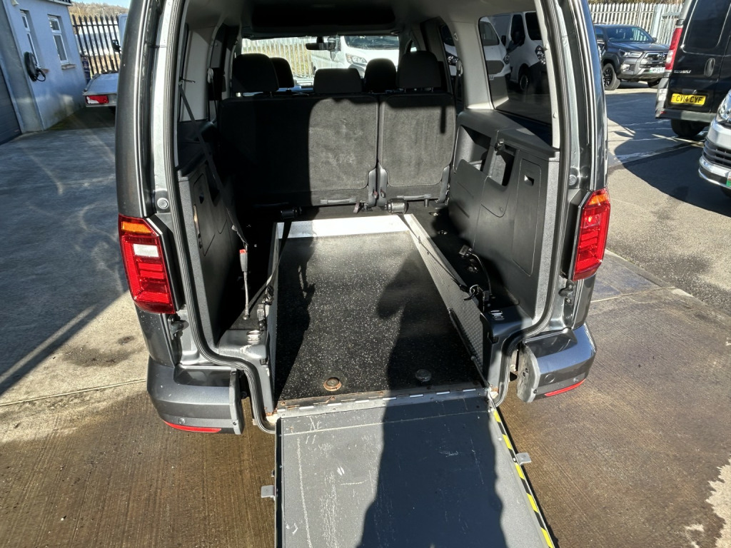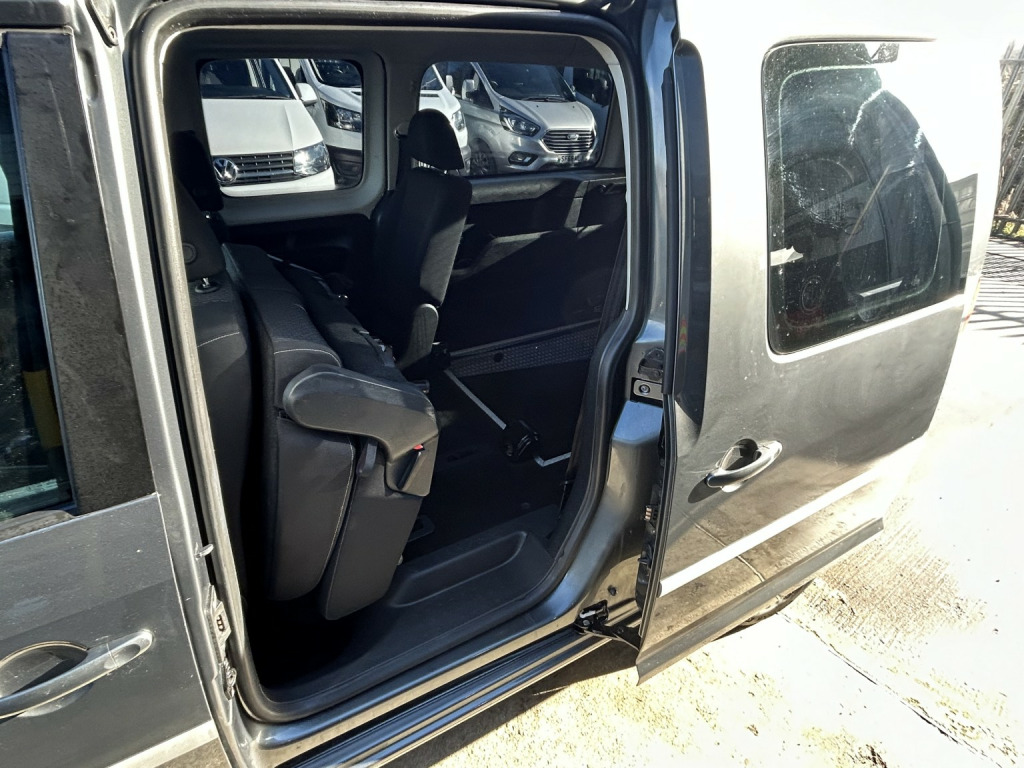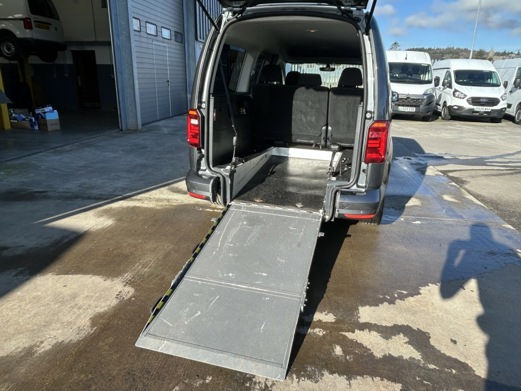 Volkswagen Caddy 2.0 TDI 102BHP WHEELCHAIR ACCESS 5 SEATER NO VAT finished in Grey (Manual), 43800 miles, 1 Previous Owner, Full Service History, 2.0 TDI Euro 6 102PS, 5 Seater with Wheelchair Disabled Accessible Ramp, Rear Seats are detachable for more storage space, Twin Side Loading Doors, Rear Tailgate, PAS, Service indicator, Air Conditioning, Trip computer, Front electric windows, Cruise Control, ABS, Drivers airbag, Remote central locking, Cloth seat trim, Alloy Wheels, Colour Coded Bumpers, Privacy Glass, No Vat