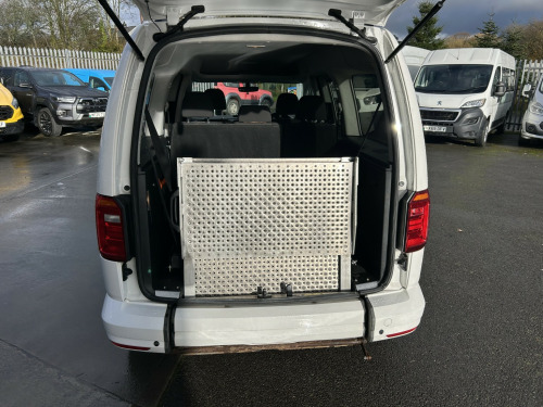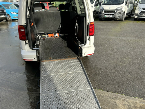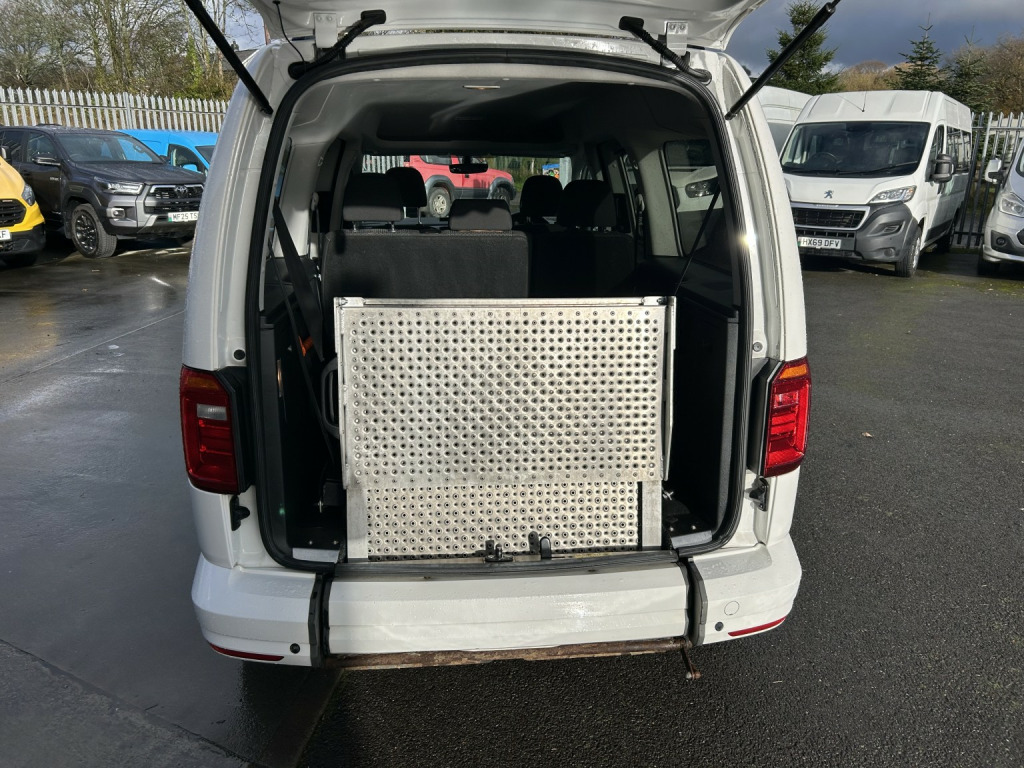 Volkswagen Caddy 2.0 TDI 102BHP WHEELCHAIR ACCESS 5 SEATER finished in White (Manual), 31350 miles, 1 Previous Owner, Full Service History, 2.0 TDI Euro 6 102PS, 5 Seater with Wheelchair Disabled Accessible Ramp, Rear Seats are detachable for more storage space, Twin Side Loading Doors, Rear Tailgate, PAS, Service indicator, DAB Radio, Air Conditioning, Trip computer, Front electric windows, Cruise Control, ABS, Drivers airbag, Remote central locking, Parking Sensors, Cloth seat trim, Alloy Wheels, Colour Coded Bumpers, Privacy Glass