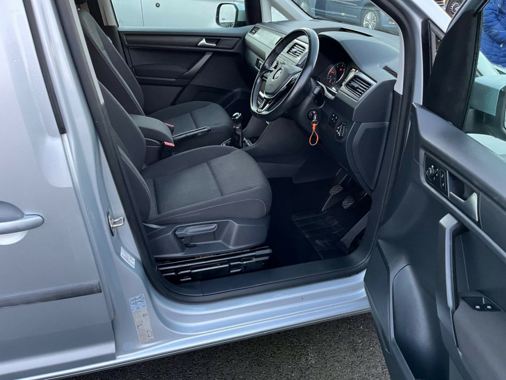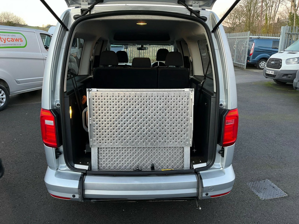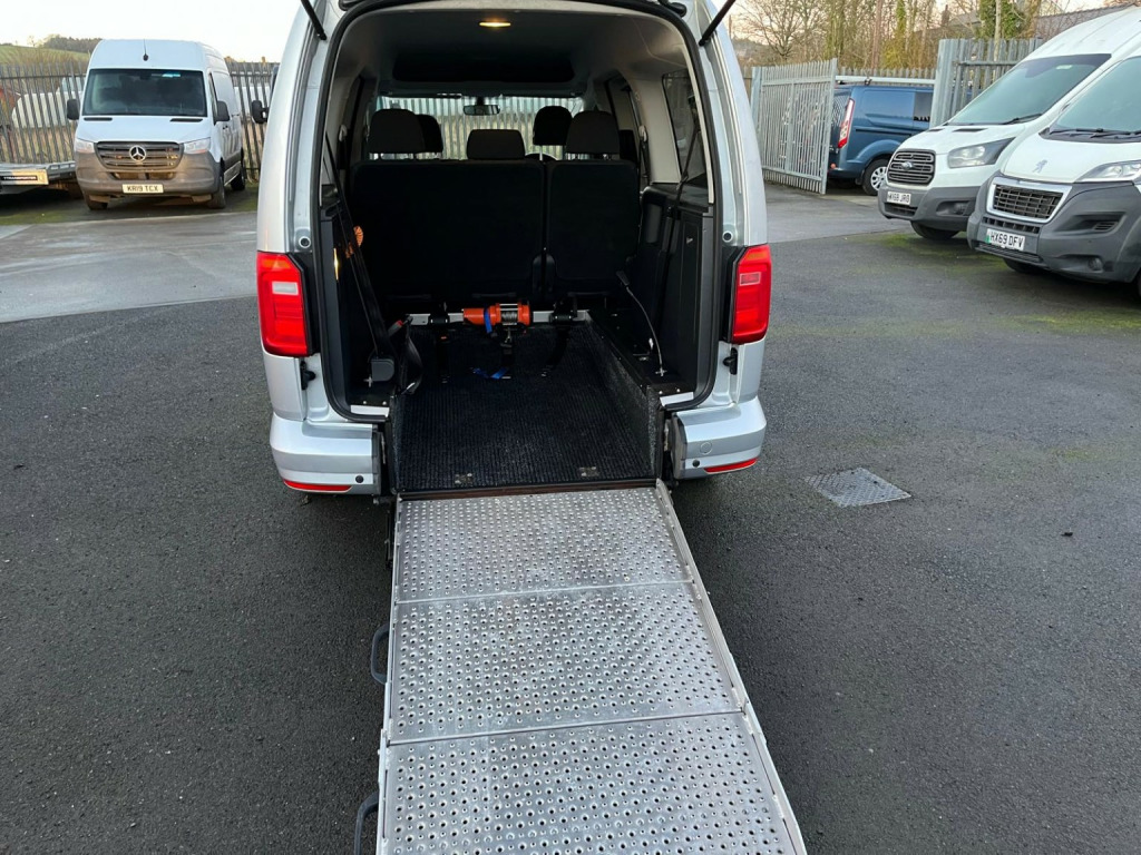 Volkswagen Caddy 2.0 TDI 102BHP WHEELCHAIR ACCESS 5 SEATER NO VAT finished in Silver (Manual), Only 20800 miles, 1 Previous Owner, Service History, 2.0 TDI Euro 6 102PS, 5 Seater with Wheelchair Disabled Accessible Ramp, Rear Seats are detachable for more storage space, Twin Side Loading Doors, Rear Tailgate, PAS, Service indicator, DAB Radio, Air Conditioning, Trip computer, Front electric windows, Cruise Control, ABS, Drivers airbag, Remote central locking, Parking Sensors, Cloth seat trim, Alloy Wheels, Colour Coded Bumpers, No Vat