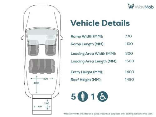 This Allied Mobility converted Volkswagen Caddy Wheelchair Accessible Vehicle (WAV) has 5 Seats (2 Front and 3 Rear). Equipment includes Fold Flat Wheelchair Ramp, Electric Winch, Air Conditioning, Electric Front Windows, Electric Adjustable Wing Mirrors, Power Steering, Remote Central Locking, Tinted Rear Windows.