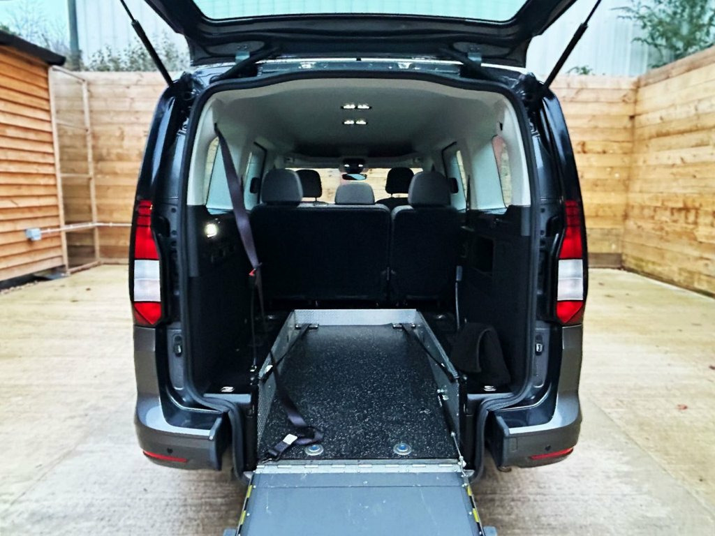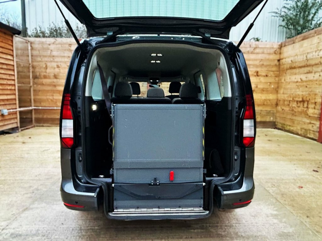 This TBC Mobility converted Volkswagen Caddy Wheelchair Accessible Vehicle (WAV) has 5 Seats (2 Front and 3 Rear). Equipment includes Wheelchair Ramp, Air Conditioning, Electric Front Windows, Electric Adjustable Wing Mirrors, Power Steering, Remote Central Locking, Tinted Rear Windows.