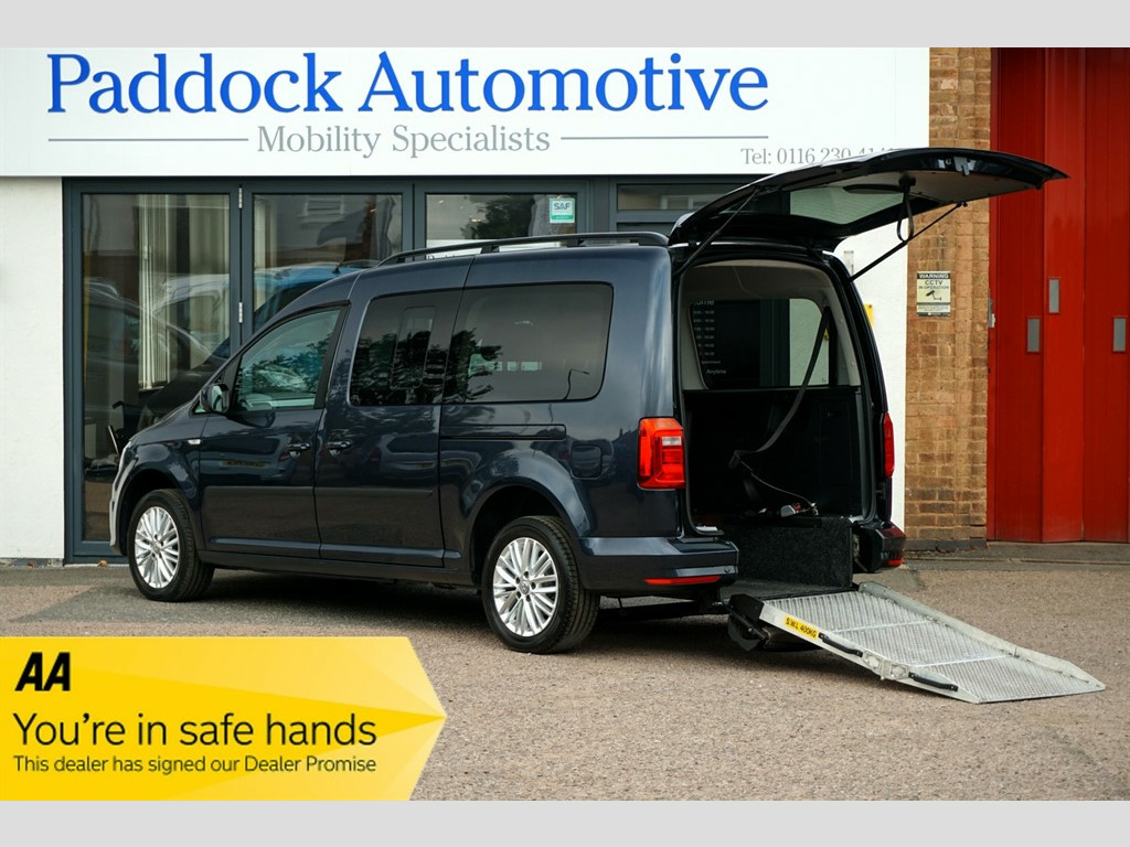 Volkswagen Caddy Maxi Life 2.0TDi Automatic, Disabled, Wheelchair Accessible Vehicle, WAV. Complete with Air Conditioning, Power Steering, Remote Central Locking and electric windows. 1 Owner and With Comprehensive Service History, This Superb Vehicle is Ready to get you Out and About! Highly Sought After Automotive Group Wheelchair Conversion with a Lowered Floor and a Lightweight Ramp to the rear, with the Added Bonus of an Electric Wheelchair Winch! 5 seats plus Wheelchair or Mobility Scooter, with 4 point Wheelchair securing with lap and diagonal seat belt for the Wheelchair user. Supplied Complete with a fresh Service, Valet, MOT and a Comprehensive Warranty. Enquire today about our Reservation Scheme! We offer Nationwide Delivery, with over 50 adapted vehicles available. Please try Fish for insurance cover. www.fishinsurance.co.uk We are also Finance Brokers. Details on request. Call for details 0116 2304141 All prices quoted assume VAT exemption as all vehicles are converted for personal wheelchair use - please contact us for any queries or clarification. Follow links to our website for more high quality pictures, measurements, and internal 360 photographs. Errors and omissions excepted. Adjustable Steering Wheel,Air Conditioning,Alloy Wheels,CD Radio,Central Locking,Cloth Upholstery,DAB Radio,Daytime Running Lights,Electric & Heated Door Mirrors,EURO 6,Front Electric Windows,Front Fog Lights,Leather Steering Wheel,Metallic Paint,Position: Rear Passenger,Power Assisted Steering (PAS),Rear Parking Sensor,Wheelchair Accessible,Wheelchair, Electric Winch.,Roof Rails,Privacy Glass,Heated Front Windscreen,ISOFIX,Available Width: 80cm,Available Height: 154cm,Available Length: 130cm