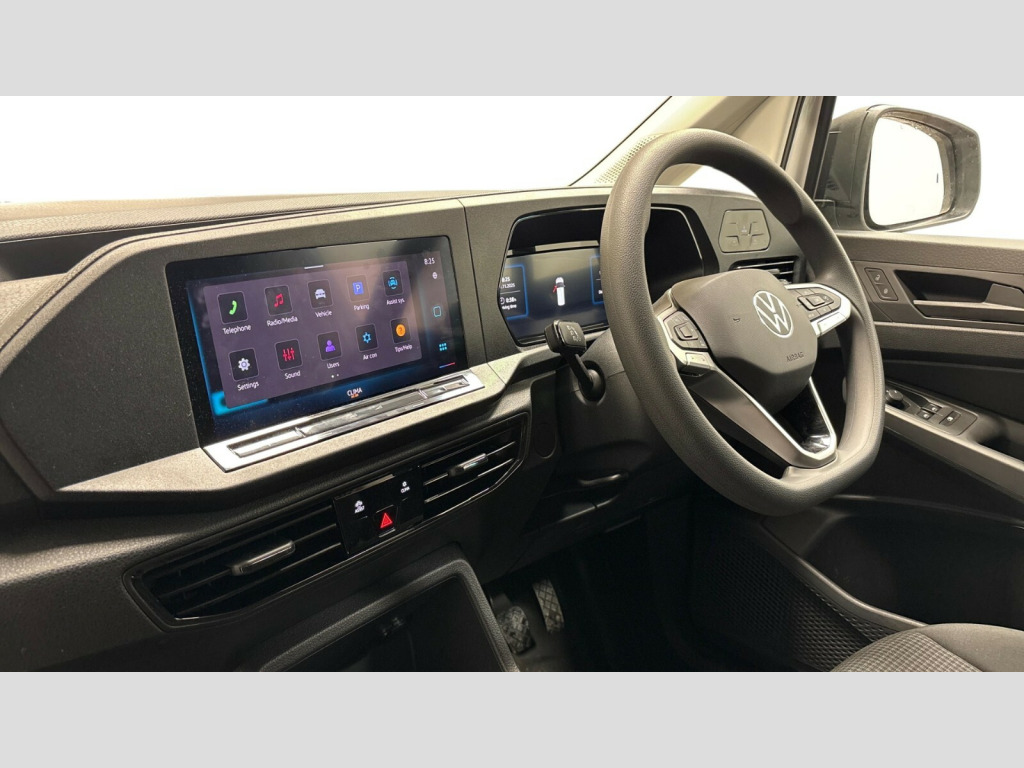 Volkswagen Caddy Maxi 1.5 TSI 116PS Commerce Van [Business/Tech Pack] Bluetooth - Mobile phone interface, Digital multi-function cockpit display, Driver alert system, eCall emergency system, Lane assist, Seatbelt warning indicator, Service indicator, Start-stop system with regenerative braking, 2 USB interfaces type C in dashboard, DAB Radio, Automatic hazard light activation under emergency braking, Black front and rear bumpers, Electric front windows, Heat insulating windscreen, Rear view mirror with anti dazzle function, Roof rail preparation, Windscreen wiper with variable intermittent delay and wash-wipe system, Electronically controlled heating system, Interior light in headliner incorporting LED technology, Lockable glove compartment door with light, Manual heating and ventilation system, Manual height adjustment for front seats, Reach and rake adjustable steering column, Six lashing points for securing loads, 3-point seat belts in front, with pretensioner and height adjustment, Driver and front passenger airbag with front passenger airbag deactivation, Tyre pressure monitoring system, Anti-theft alarm system, interior monitoring, backup horn, and towing protection, Electronic engine immobiliser, Remote central locking with deadlocks, interior locking, Anti locking braking system (ABS), Automatic post collision braking system, Autonomous Emergency Braking Front Assist with Pedestrian Monitoring, Electric parking brake with auto hold function, Electronic brake force distribution (EBD), Electronic differential lock (EDL), Electronic stabilisation programme (ESP), Engine drag torque control (MSR), Hill hold assist, Traction control system (TCS), Decorative beige birch vein inserts, Full size wheel trims