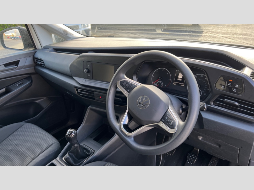 Volkswagen Caddy Maxi 2.0 TDI 102PS Commerce Van Driver alert system includes drowsiness detection, Emergency call control unit with eCall, Multi-function Display, Seatbelt warning indicator, Service indicator, Start-stop system with regenerative braking, DAB Radio, We Connect Basic Preparation, Automatic hazard light activation under emergency braking, Black front and rear bumpers, Electric front windows, Roof rail preparation, Windscreen wiper with variable intermittent delay and wash-wipe system, Dimming breakaway interior rear-view mirror, Electronically controlled heating system, Interior light in headlining, Lockable glove compartment door with light, Manual height adjustment for front seats, Reach and rake adjustable steering column, Six lashing points for securing loads, Sun visors, with ticket pocket on driver side, 3-point seat belts in front, with pretensioner and height adjustment, Driver and front passenger airbag with front passenger airbag deactivation, Electronic engine immobiliser, Remote central locking with deadlocks, interior locking, Anti locking braking system (ABS), Automatic post collision braking system, Autonomous Emergency Braking Front Assist with Pedestrian Monitoring, Electric parking brake with auto hold function, Electronic brake force distribution (EBD), Electronic differential lock (EDL), Electronic stabilisation programme (ESP), Emergency brake assist, Engine drag torque control (MSR), Hill hold assist, Traction control system (TCS), Decorative beige birch vein inserts