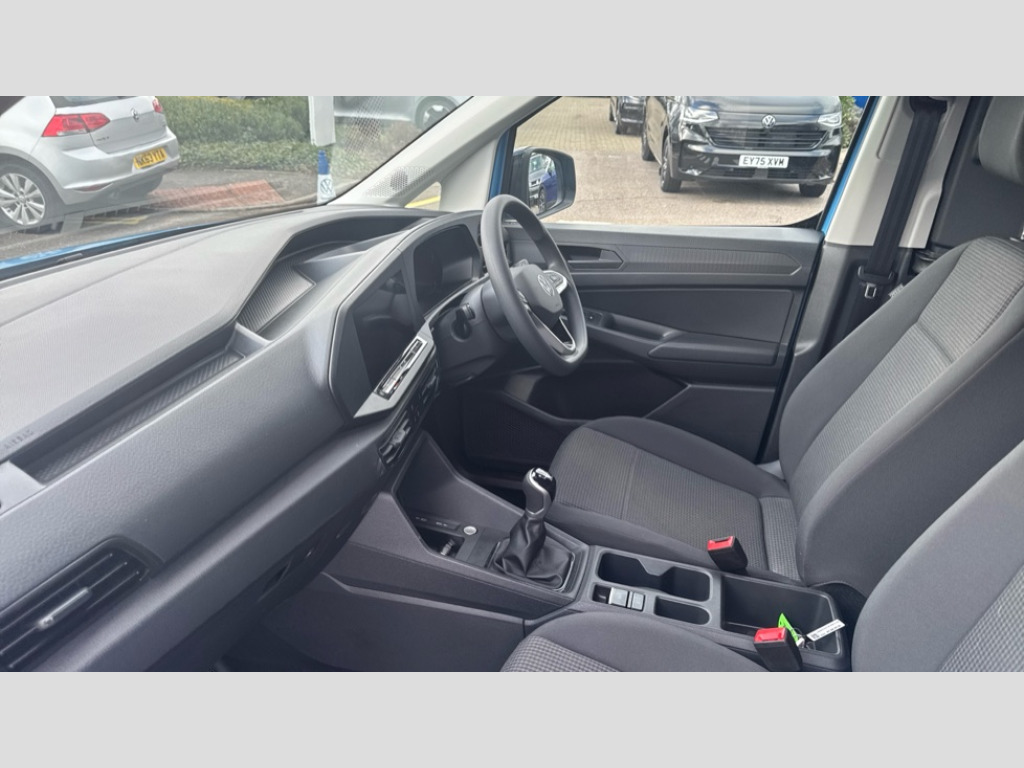 Volkswagen Caddy Maxi 2.0 TDI 102PS Commerce Van [Business/Tech Pack] Bluetooth - Mobile phone interface, Car2X technology, Driver alert system, eCall emergency system, Intelligent Speed Assist, Lane assist, Seatbelt warning indicator, Service indicator, Start-stop system with regenerative braking, 2 USB interfaces type C in dashboard, DAB Radio, We Connect Basic Preparation, Automatic hazard light activation under emergency braking, Black front and rear bumpers, Electric front windows, Heat insulating windscreen, Roof rail preparation, Windscreen wiper with variable intermittent delay and wash-wipe system, Dimming breakaway interior rear view mirror, Electronically controlled heating system, Interior light in headliner incorporting LED technology, Lockable glove compartment door with light, Manual heating and ventilation system, Manual height adjustment for front seats, Reach and rake adjustable steering column, Six lashing points for securing loads, 3-point seat belts in front, with pretensioner and height adjustment, Driver and front passenger airbag with front passenger airbag deactivation, Tyre pressure monitoring system, Anti-theft alarm system, interior monitoring, backup horn, and towing protection, Electronic engine immobiliser, Remote central locking with deadlocks, interior locking, Anti locking braking system (ABS), Automatic post collision braking system, Autonomous Emergency Braking Front Assist with Pedestrian Monitoring, Brake assist, Diesel particulate filter, Electric parking brake with auto hold function, Electronic brake force distribution (EBD), Electronic differential lock (EDL), Electronic stabilisation programme (ESP), Engine drag torque control (MSR), Hill hold assist, Traction control system (TCS), Decorative beige birch vein inserts, Full size wheel trims