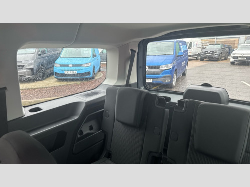 Volkswagen Caddy Maxi 2.0 TDI 122 5dr DSG Bluetooth mobile phone interface, Driver alert system, eCall emergency call system, Gesture control, Lane assist, Multi function display, On board computer, Service interval indicator, Start/stop system with regenerative braking, We connect basic preparation, Diesel particulate filter, Electronic differential lock, 2 Type C USB, DAB Digital radio, Anti dazzle rear view mirror, Automatic hazard lights activation under emergency braking, Black door mirrors, Body colour bumpers, Body coloured door handles, Electric front windows, Fixed side window in load/passenger compartment, Heated rear window, Rain sensor, Rear window wiper and washer system with intermittent control, Roof rails preparation, Silver sliding door rail, Third high level brake light, Twin near side and off side sliding doors, Windscreen wiper with variable intermittent delay and wash wipe system, 12V socket in passenger compartment, 5 standard interior lights in passenger compartment, Air conditioning - Climatic airconditioning system - manual in cab, Carpet floor covering in cab, Carpet floor covering in passenger compartment, Centre console with 2 cupholders, Double grid cloth upholstery, Electrically controlled heating system, Front head restraints, Front passenger seat, Glove compartment cover with light, Height adjustable head restraints, Illumination lockable glovebox compartment, Interior light in headliner incorporating LED technology, Isofix on 2nd row outer seats, Manual front seats with height adjustment, Multifunction steering wheel, Reach and rake adjustable steering column, Rear head restraints, Retractable luggage compartment cover, Seat occupied recognition for front seats, Sliding trunk cover, Split folding/removable rear seat, Sun visors with mirror and airbag label on front passenger, 7 seat pack - Caddy, 3-point seat belts in front with pretensioner and height adjustment, 3x3 point rear seatbelts, Anti-lock braking system (ABS), Automatic post collision braking system, Autonomous emergency braking front assist with pedestrian and cyclist monitoring, Brake assist, Child locks on rear doors, Curtain airbag for outer seats in rear, Direct tyre pressure monitoring system, Driver and front passenger airbag with front passenger airbag deactivation, Electric parking brake with auto hold function, Electronic brake force distribution, Engine drag torque control, ESP, First aid kit with warning triangle and safety vest, Front centre airbag, Power operated child safety locks, Seat belt warning if unfastened, front and rear, Side and curtain airbag for driver and front passenger, Traction control system (TCS), Anti theft alarm system with interior monitoring, backup horn and towing protection, Electronic engine immobiliser, Two remote keys, Decorative inserts birch vein