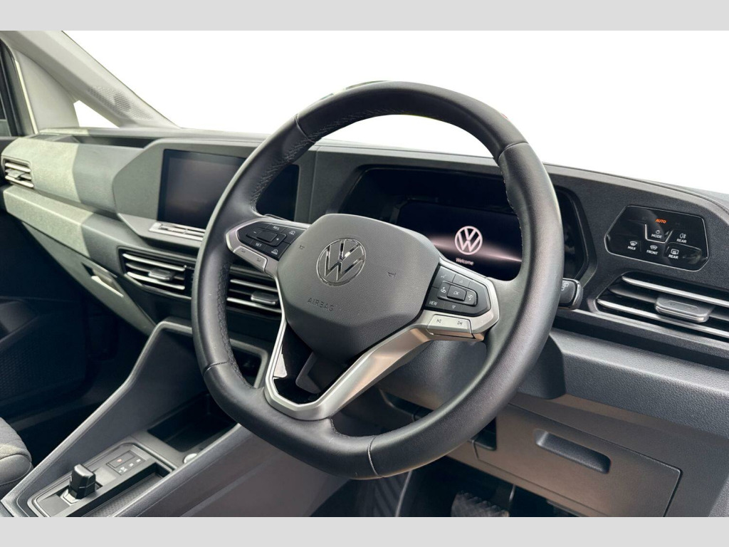 On the exterior, the Caddy features 17-inch silver alloy wheels, automatic headlights, and power-adjustable, folding, and heated mirrors for everyday convenience. Manoeuvring is effortless thanks to front and rear parking sensors and a rear-view camera, while access is made simple through the rear tailgate and twin sliding doors. The load space is versatile and secure, with six reinforced lashing points to keep cargo stable.