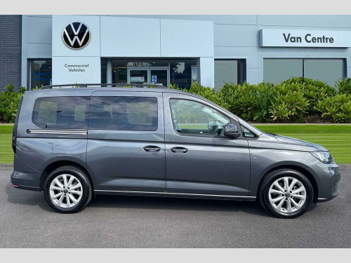 Volkswagen Caddy Maxi 2.0 TDI 122 Life 5dr DSG Indium Grey Metallic Paint, 17" "Barahona" Silver alloy wheels, ergoComfort seats for driver and passenger, Dark tinted glass in rear seat area heat-insulating glass in front area, Heated washer nozzles, Heated front seats, Heated windscreen, LED tailgate surround lighting, App-Connect, Central locking system "Keyless-Go", Exterior mirrors, power-folding, power-adjustable, separately heated, Front and rear parking sensors, Rear view camera, Digital cockpit, Central locking system "Keyless-Go" without SAFELOCK, Tyre pressure loss indicator, Lane keeping system, Electric front windows, Windscreen wiper with variable intermittent delay and wash-wipe system, Body coloured bumpers, Roof rail preparation, Automatic hazard light activation under emergency braking, LED rear combination lights, LED rear tail lights, Anti locking braking system (ABS), Automatic post collision braking system, Autonomous Emergency Braking Front Assist with Pedestrian Monitoring, Electric parking brake with Auto Hold function, Electronic brake force distribution (EBD), Electronic stabilisation programme (ESP), Emergency brake assist, Engine drag torque control (MSR), Hill hold assist, Traction control system (TCS), Black painted exterior mirror housings, body-colored door handles and Silver sliding door rail, 3-point seat belts in front, with pretensioner and height adjustment, Driver and front passenger airbag with front passenger airbag deactivation, Emergency call control unit with eCall, DAB Radio, We Connect Plus Preparation, Driver alert system includes drowsiness detection, Start-stop system with regenerative braking, Multi-function Display, Seatbelt warning indicator, Service indicator, Decorative beige birch vein inserts, ergoComfort seats for driver, Manual adjustable lumbar support for passenger seats, Manual height adjustment for front seats and seat cushion inclination and depth adjustment on drivers seat, Power-adjustable lumbar support for drivers seat, Electronically controlled heating system, Armrests for both front seats, Dimming breakaway interior rear-view mirror, Lockable glove compartment door with light, Multi function leather steering wheel, Reach and rake adjustable steering column, Storage compartments under driver and front passenger seats, Sun visors with mirror, airbag label on front passenger sun visor, Sun visors, with ticket pocket on driver side, Vanity mirrors, Interior light in headlining, Electronic differential lock (EDL), Six lashing points for securing loads, Anti-theft alarm system, interior monitoring, backup horn, and towing protection, Electronic engine immobiliser, Remote central locking with deadlocks, interior locking, Wheel bolts with anti-theft protection (unlockable)