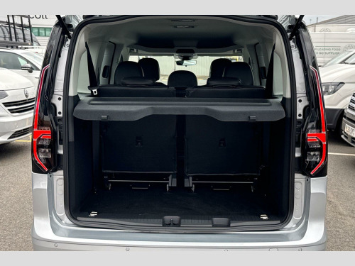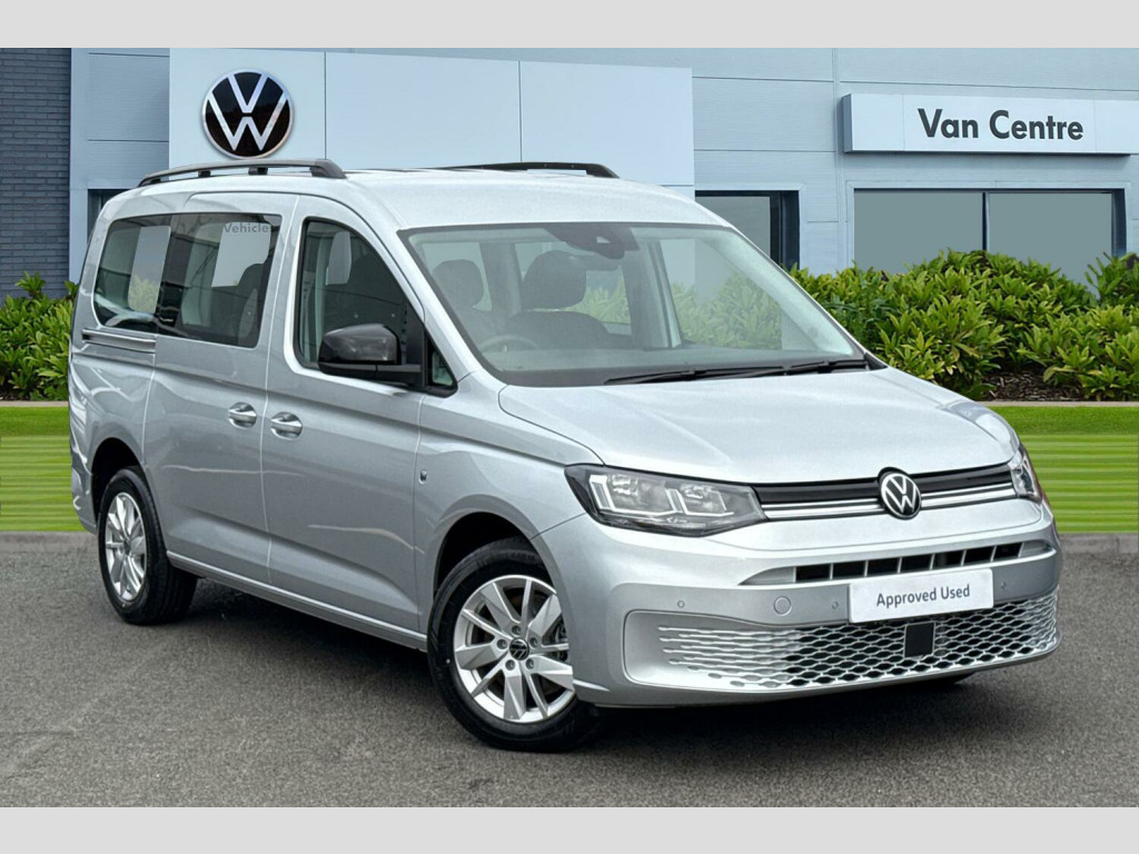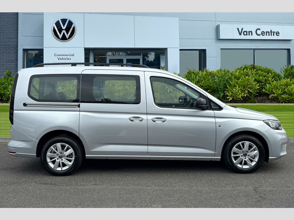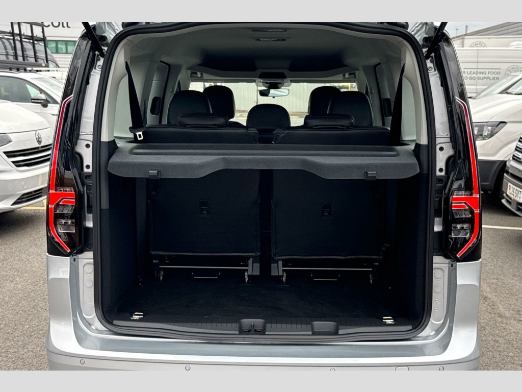 Reflex Silver-Metallic Paint, Black roof rails, Parking sensors front + rear, Rear view camera system, LED rear combination lights, Electric, heated + power folding exterior mirrors, Full leather retrim-All 7 Seats, Air conditioning - Climatic airconditioning system - manual in cab, Leather multi-function steering wheel, Wireless App Connect, Apple Car Play, Android Auto, Digital Cockpit/Virtual Dashboard, Metallic - Reflex Silver, Full leather retrim-Titanium Black, 16" Wien silver alloy wheels, Tyre mobility kit in lieu of spare wheel include 12V compresser and tyre sealant, Wheel bolts with anti-theft protection (unlockable), Electric front windows, Fixed side window in load/passenger compartment, Heat insulating windscreen, Heated rear window, Rear window wiper and washer system with intermittent control, Windscreen wiper with variable intermittent delay and wash wipe system, Body colour bumpers, Twin near side and off side sliding doors, Automatic hazard lights activation under emergency braking, Automatic headlight levelling system, LED rear combination lights, Third high level brake light, Anti-lock braking system (ABS), Automatic post collision braking system, Autonomous emergency braking front assist with pedestrian and cyclist monitoring, Brake assist, Electric parking brake with auto hold function, Electronic brake force distribution, Engine drag torque control, ESP, Traction control system (TCS), Driver alert system, Lane keeping system, Anti dazzle rear view mirror, Electrically adjustable and folding door mirrors, Heated door mirrors, 3-point seat belts in front with pretensioner and height adjustment, 3x3 point rear seatbelts, Child locks on rear doors, Curtain airbag for outer seats in rear, Direct tyre pressure monitoring system, Driver and front passenger airbag with front passenger airbag deactivation, First aid kit with warning triangle and safety vest, Front centre airbag, Power operated child safety locks, Seat belt reminder, Side and curtain airbag for driver and front passenger, Carpet floor covering in cab, Carpet floor covering in passenger compartment, Electrically controlled heating system, 12V socket in passenger compartment, Centre console high with armrests adjustable, Centre console with 2 cupholders, Door and side trim panel in fabric, Leather gearshift knob/handle, Lockable glove compartment with light, Multifunction steering wheel, Reach and rake adjustable steering column, Removable waste bin with cover for cab, Retractable luggage compartment cover, Sliding trunk cover, Storage drawers under front seats, Trialog cloth upholstery, 5 standard interior lights in passenger compartment, LED interior light in headlining, Electronic differential lock, Sun visors with mirror and airbag label on front passenger, eCall emergency call system, 2 Type C USB, DAB Digital radio, Start/stop system with regenerative braking, Gesture control, Multi function display, On board computer, Service interval indicator, We connect plus preparation, Diesel particulate filter, Decorative inserts in beige birch vein, Backrest release for front passenger seat, Folding table on front seat backrests, Front head restraints, Front passenger seat foldable, Height adjustable head restraints, Isofix on 2nd row outer seats, Manual adjustable lumbar support in front seats, Manual front seats with height adjustment, Rear head restraints, Seat occupied recognition for front seats, Split folding/removable rear seat, 7 seat pack - Caddy, Anti theft alarm system with interior monitoring, backup horn and towing protection, Electronic engine immobiliser, Wheel bolts unlockable anti-theft protection