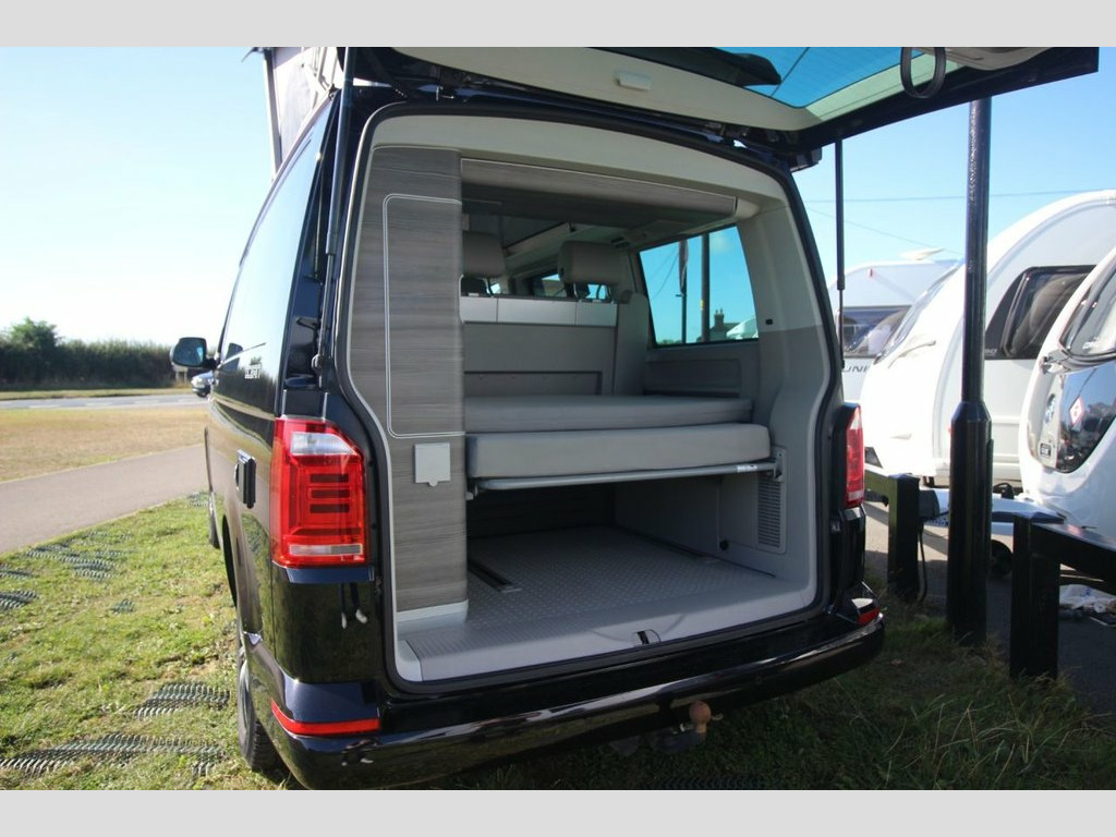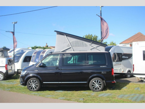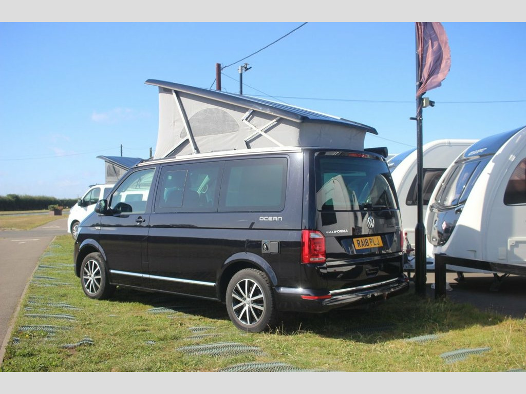 IMMACULATE CONDITION, Full service history, RA18 PLJ (2018) Only 66,736 miles, VW California Ocean, Top of the range Camper Van factory built by VW, 4 berth 4 seatbelts, 2.0 TDI (204 BHP) 4 Motion (4x4) DSG automatic gearbox, Euro 6 emissions, Electric roof, Electric sliding door, Black exterior paintwork with black privacy glass and matching black and silver alloy wheels, Air conditioning, Rear heater controls, Wind out awning, included Tow bar included Plug in shower Stunning unmarked light grey leather and suede seats Heated front seats Rear seats can slide forward to make the boot space bigger Heated front windscreen Cruise control Reversing camera and parking sensors, Built in sat nav, Bluetooth hands free, 12 months MOT Before collection, we will carry out an engine service and a habitation service, 3 months warranty which could be extended to 12 months, Finance available up to a 13 year term, Part exchange welcome. 12v and 230v UK Socket, 17in Alloy Wheels - Devonport, 2 Remote Folding Keys, 230-V Supply with Charging Feature for V, 3-point Seatbelts on all Seats, ABS - Anti-Lock Braking System, Additional Exterior Dust Seals, Airbags - Driver and Front Passenger Sid, Alternator - 180A, Anti-Theft Alarm System with Interior Mo, Anti-glare Adjustable Rear-view Mirror, Armrest - Driver and Single Passenger Se, Awning Rail - Black with Tent Adapter, BAS - Brake Assist System, Battery - Uprated 420A - 75Ah, Bluetooth Hands Free Set, Body Coloured - Door Mirrors and Door Ha, Body Coloured Bumpers Front and Rear, Central Electronic Control System, Child Lock for Sliding Doors in Passenge, Chrome-Plated Strip